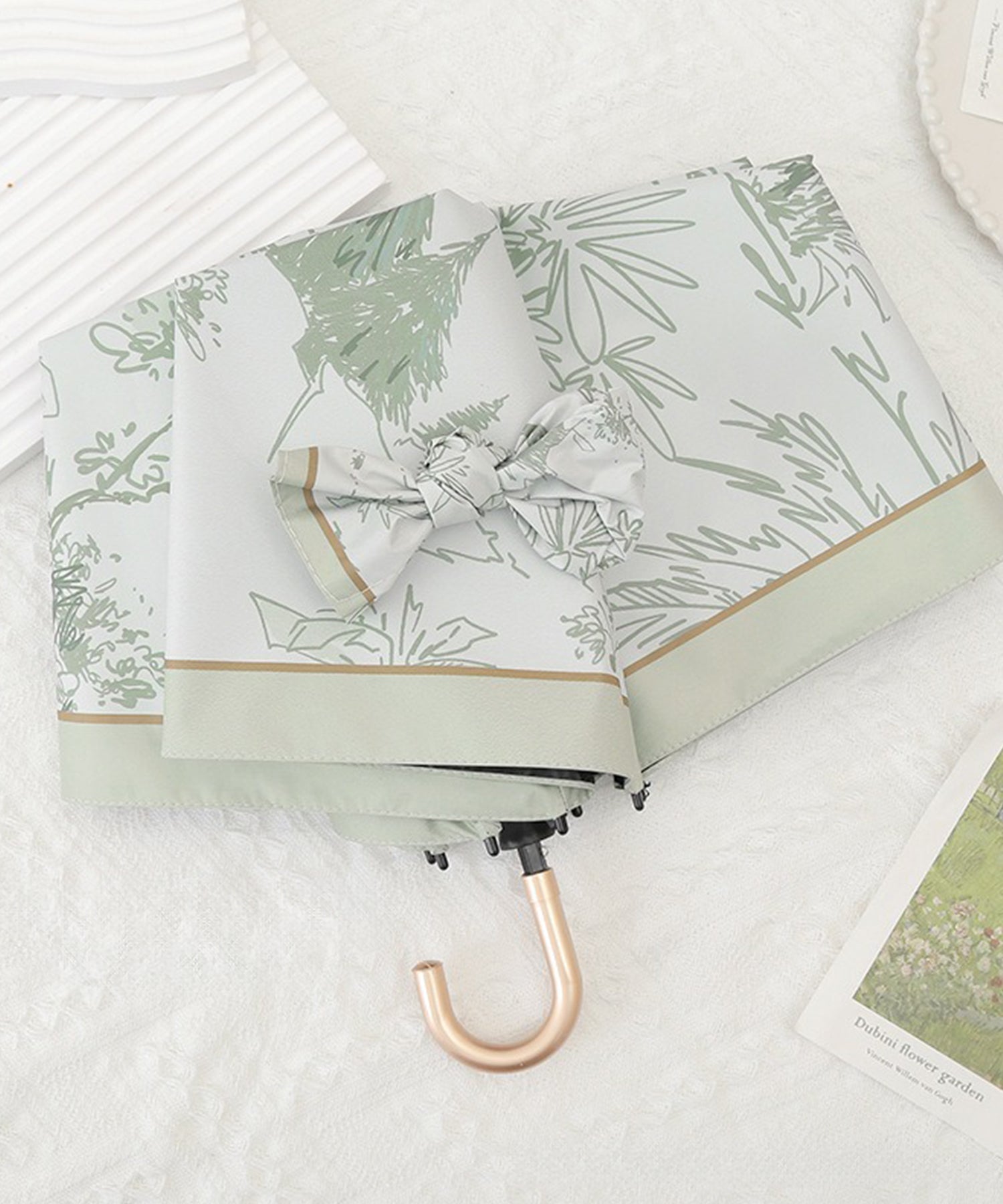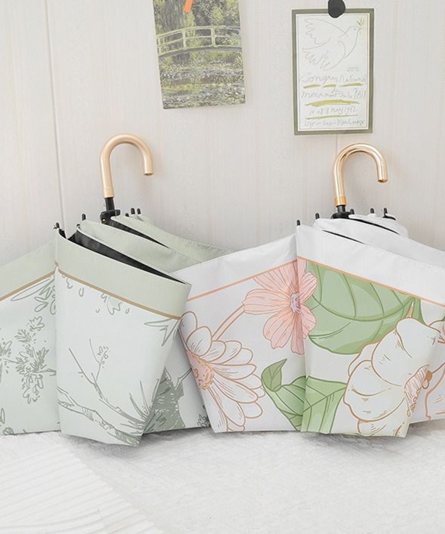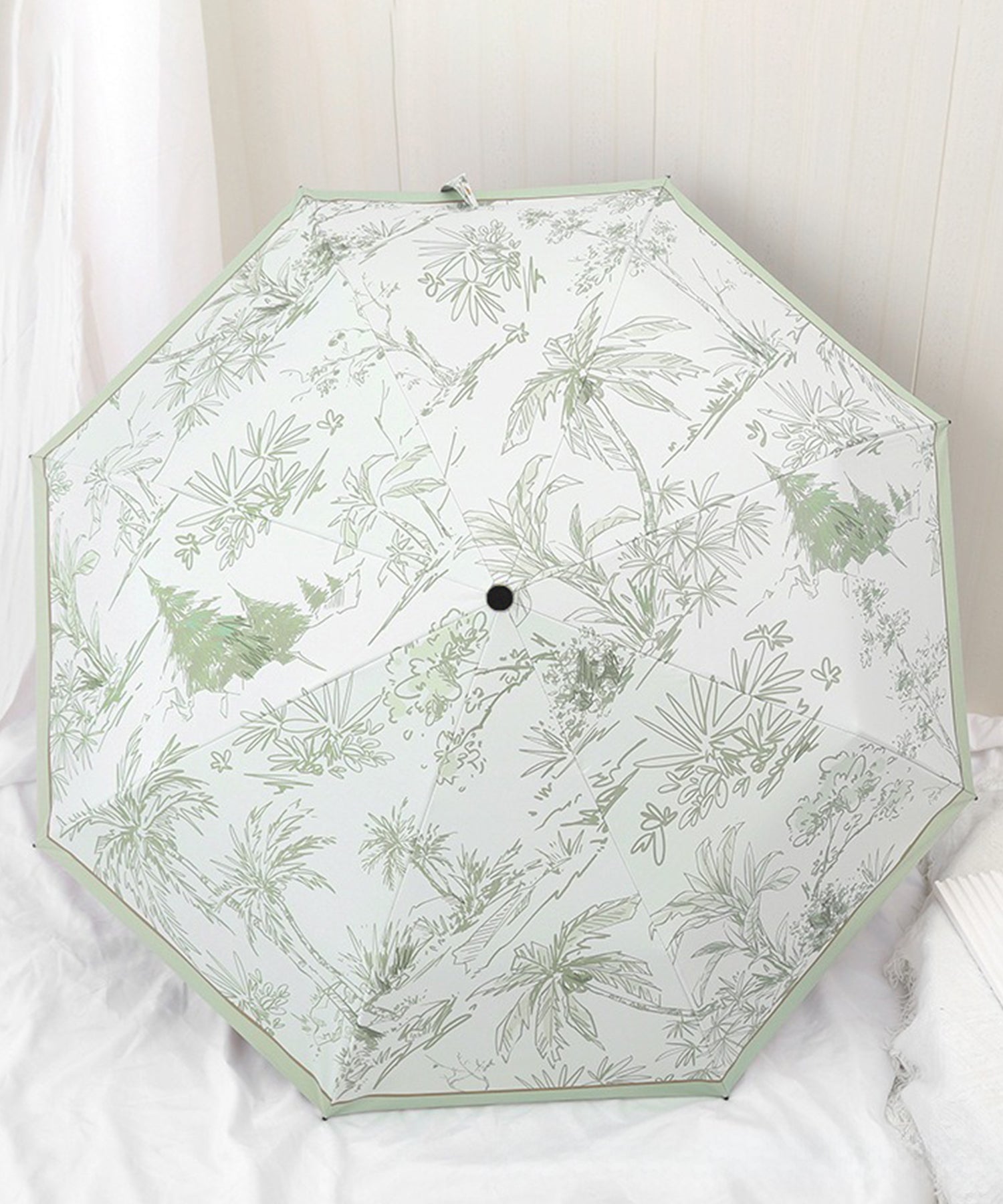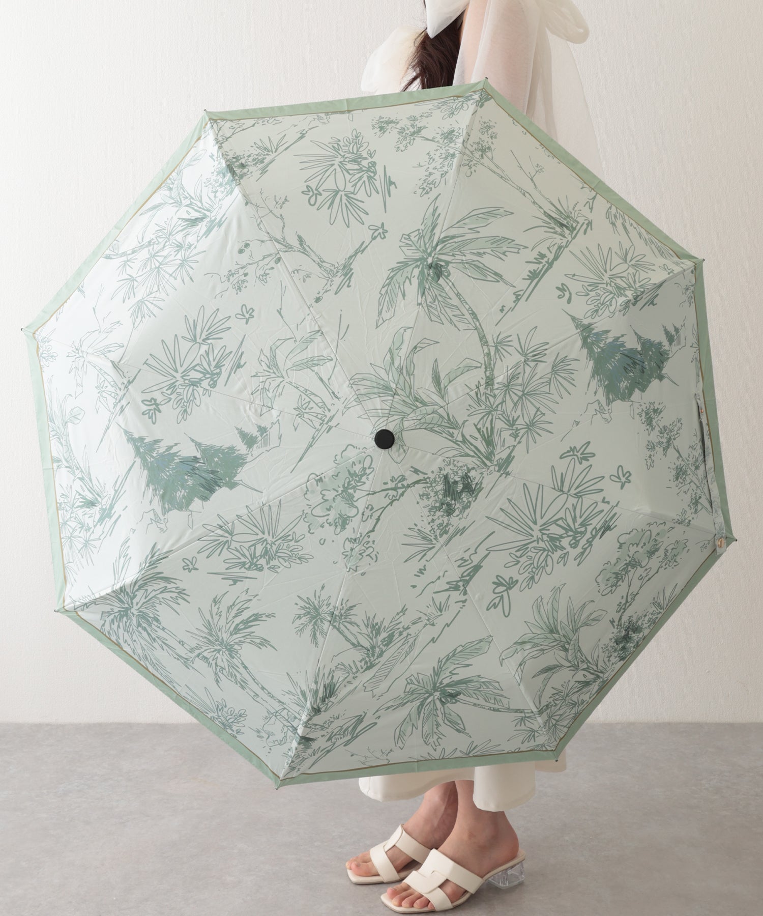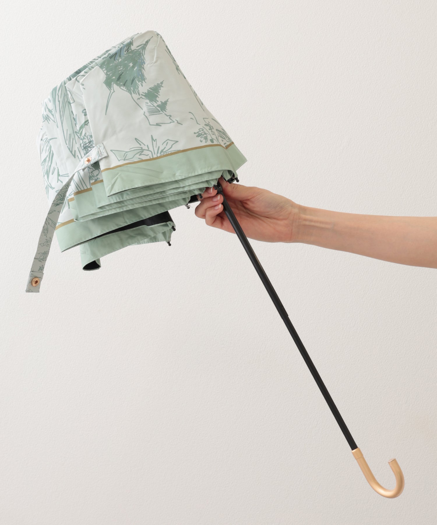 晴雨兼用 ボタニカル柄 メタリック ハンドル 折りたたみ傘