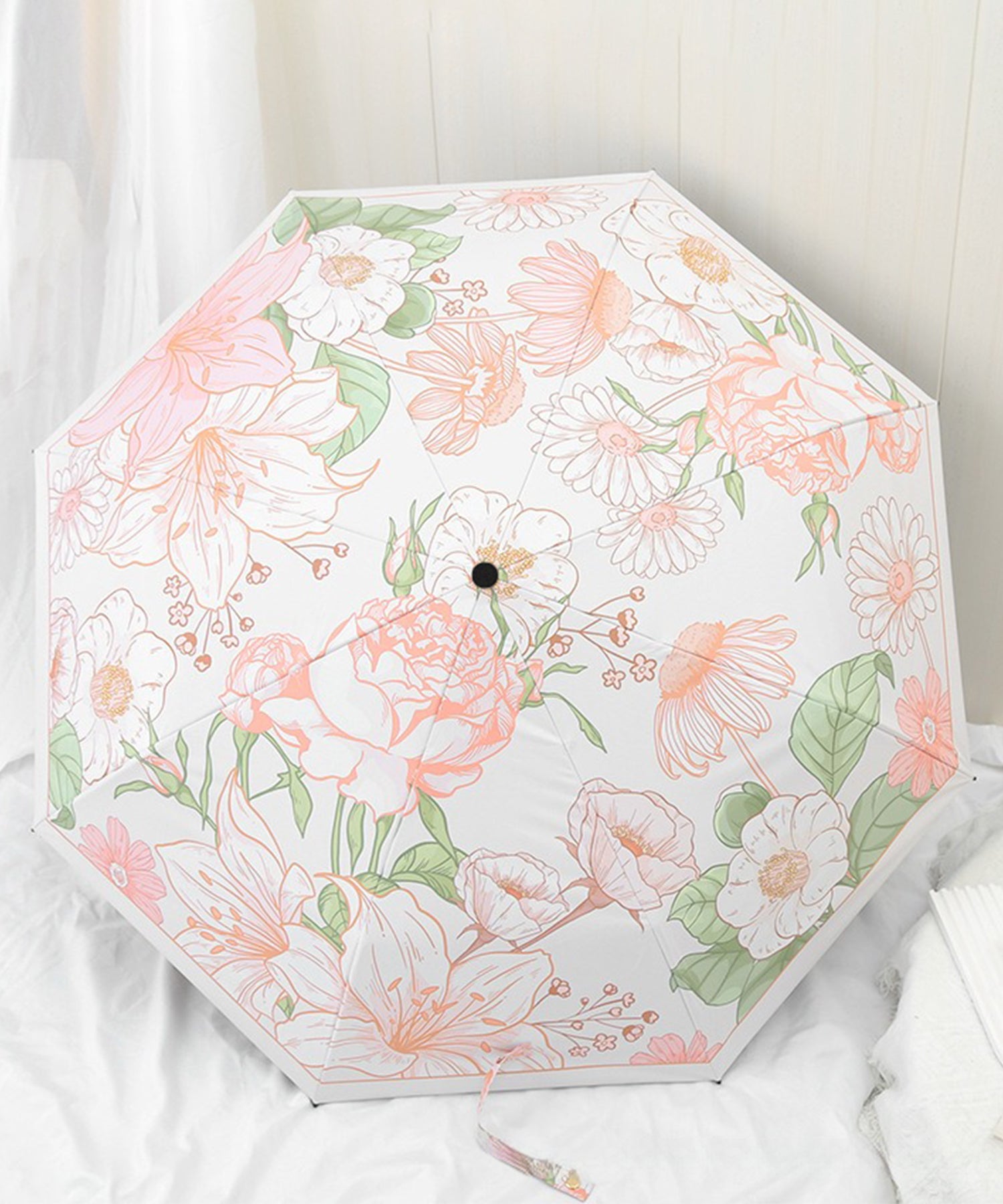 晴雨兼用 配色 フラワー 遮光 折りたたみ傘