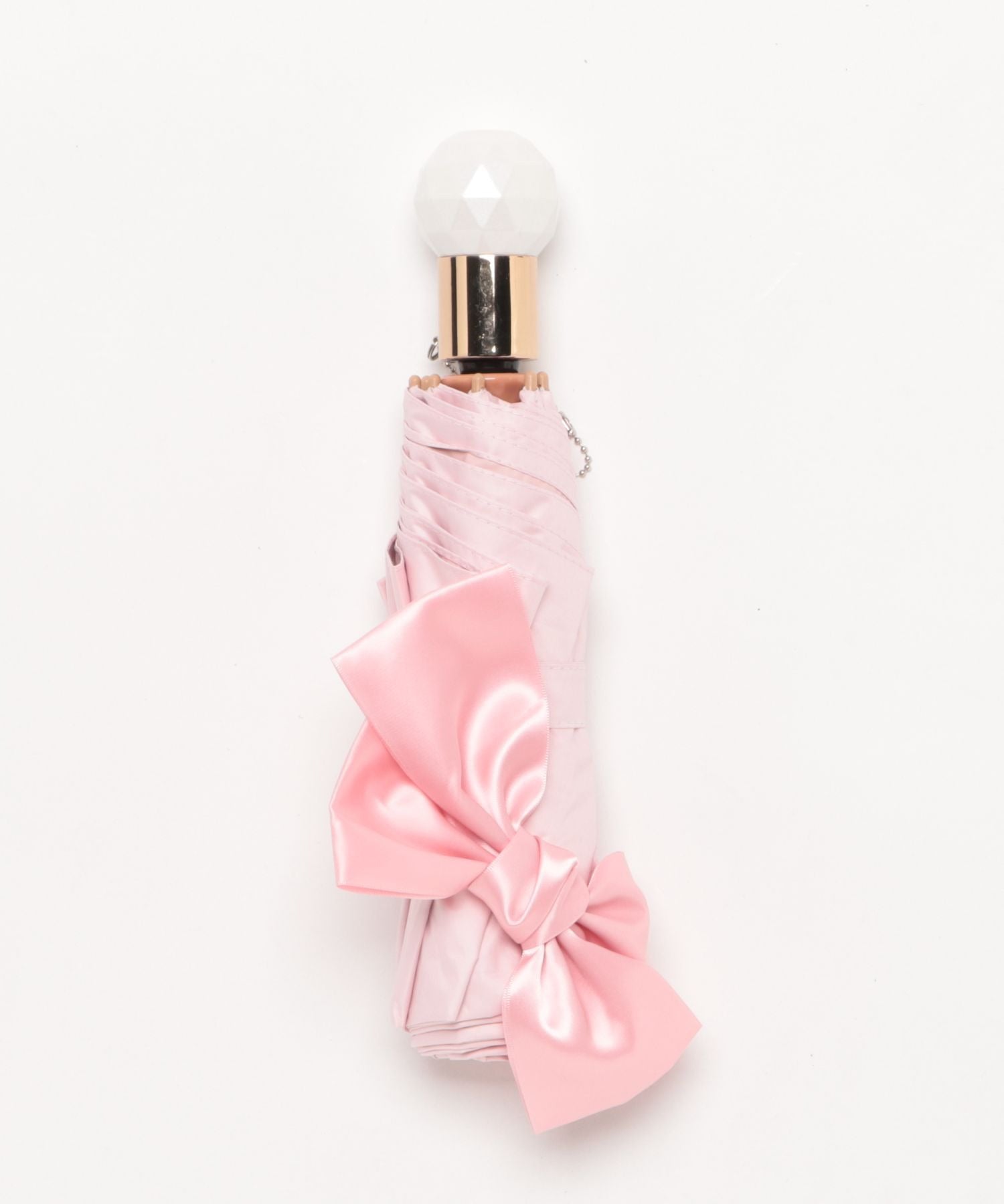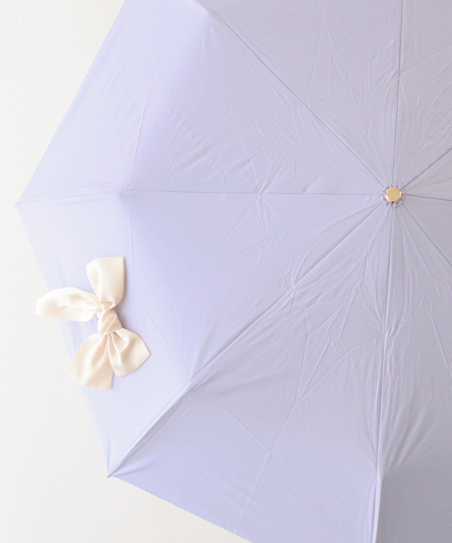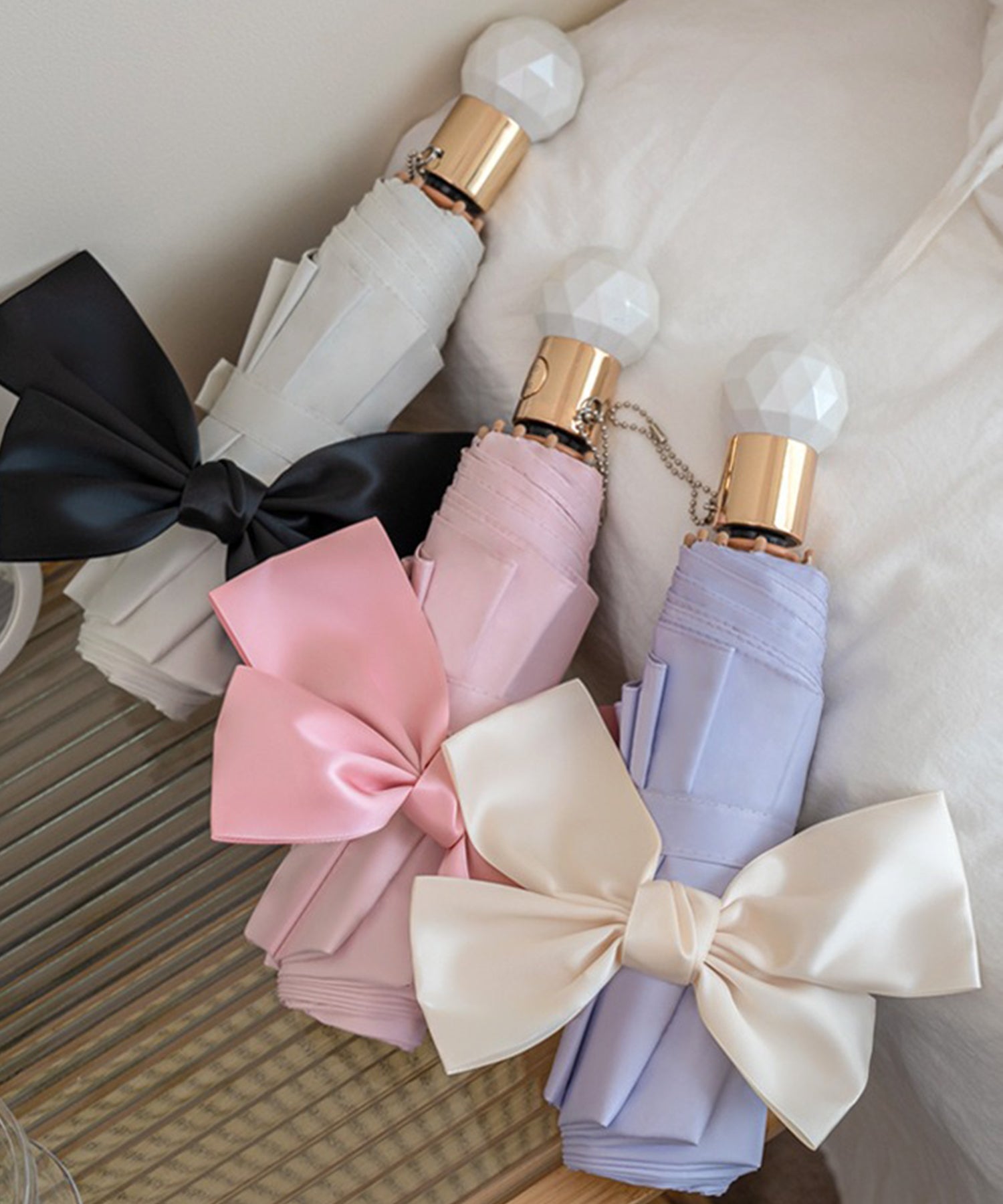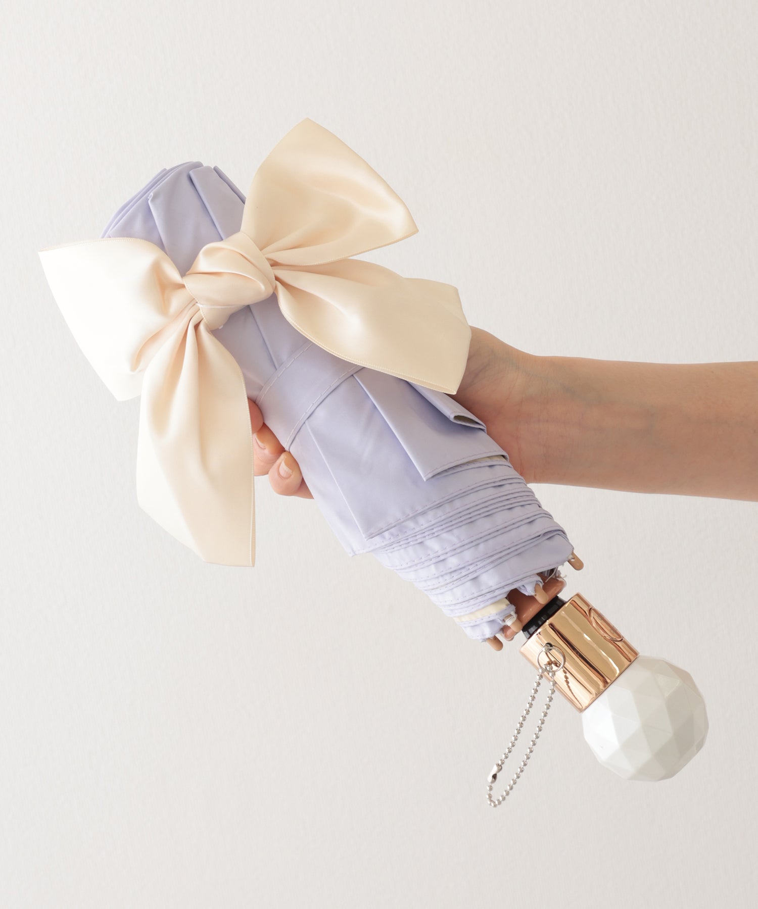 目を引く大きなリボンがアクセントになった、折りたたみ傘。