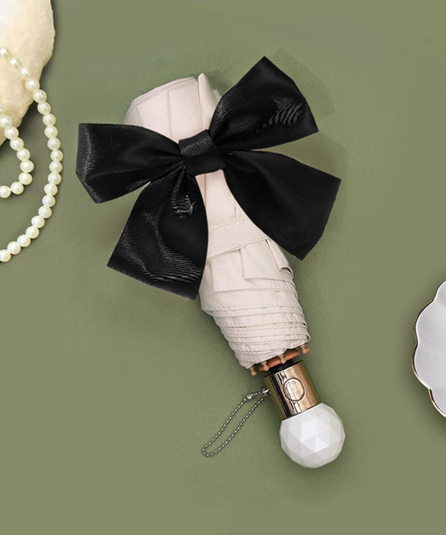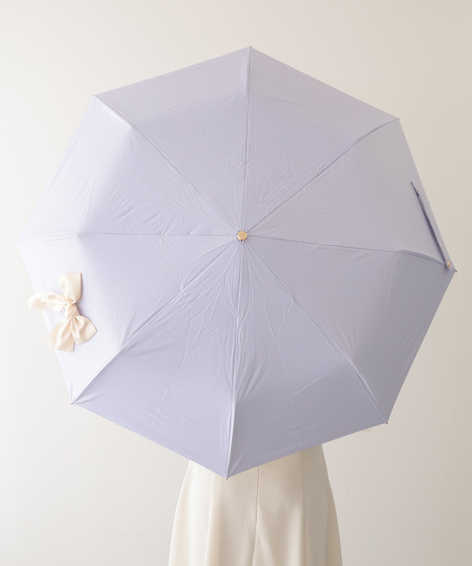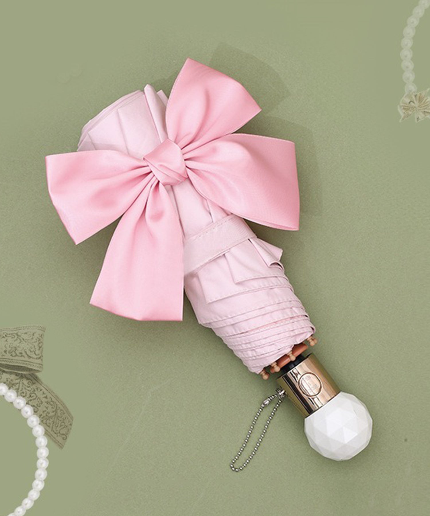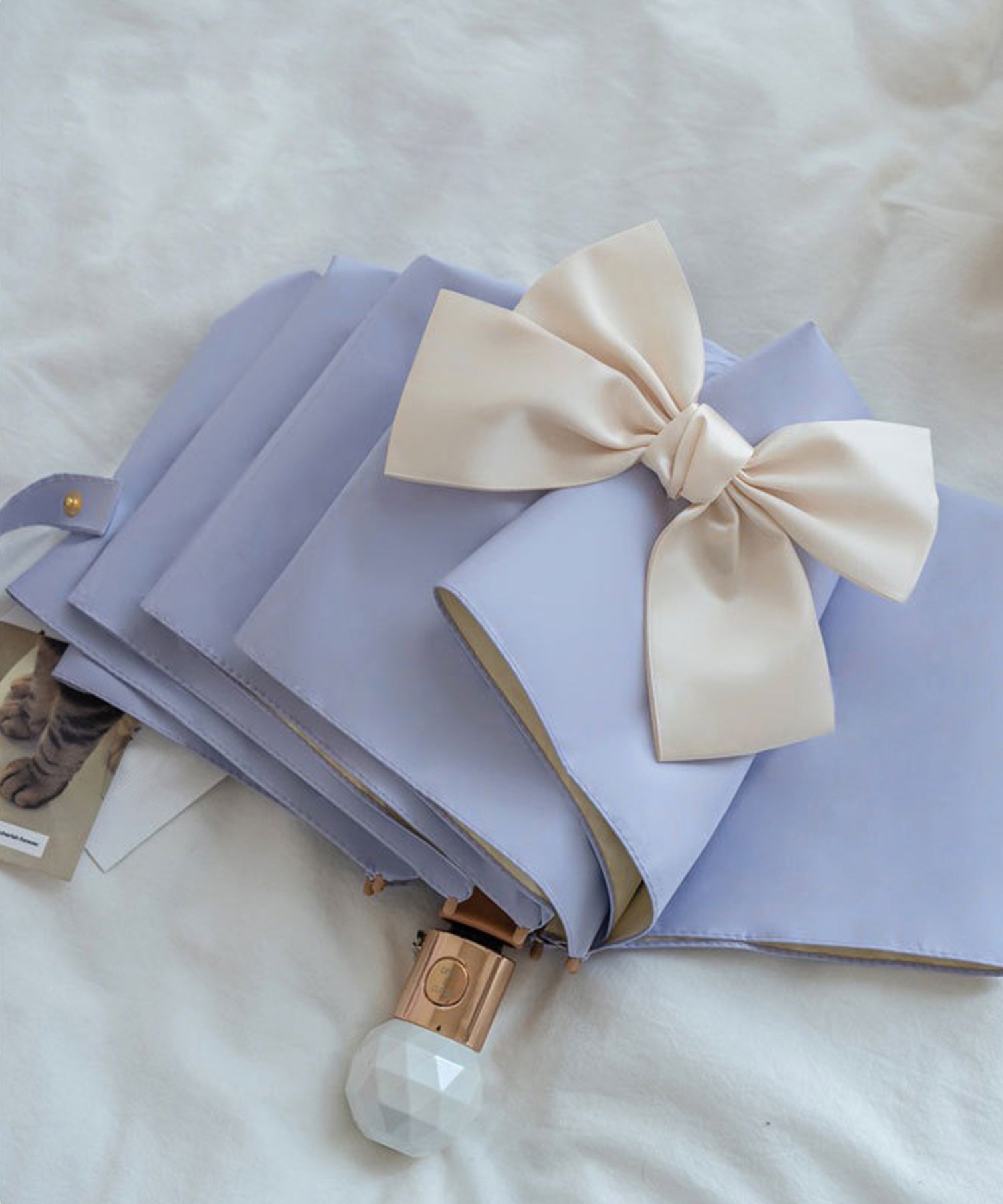 目を引く大きなリボンがアクセントになった、折りたたみ傘。