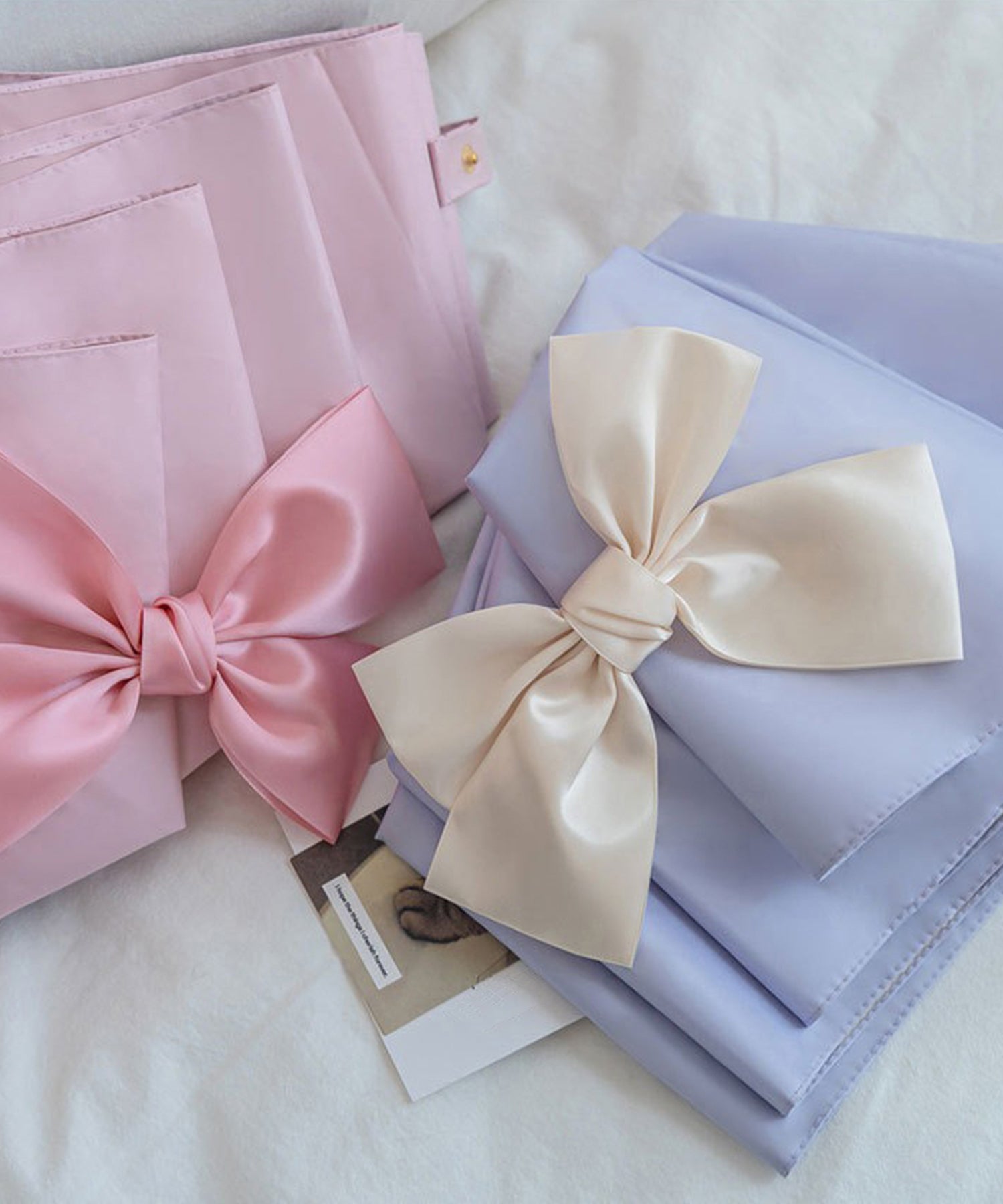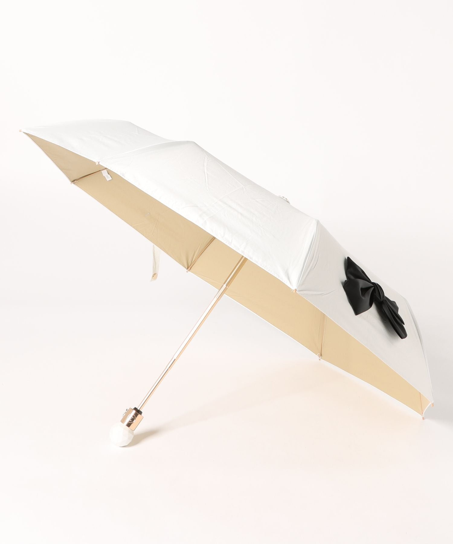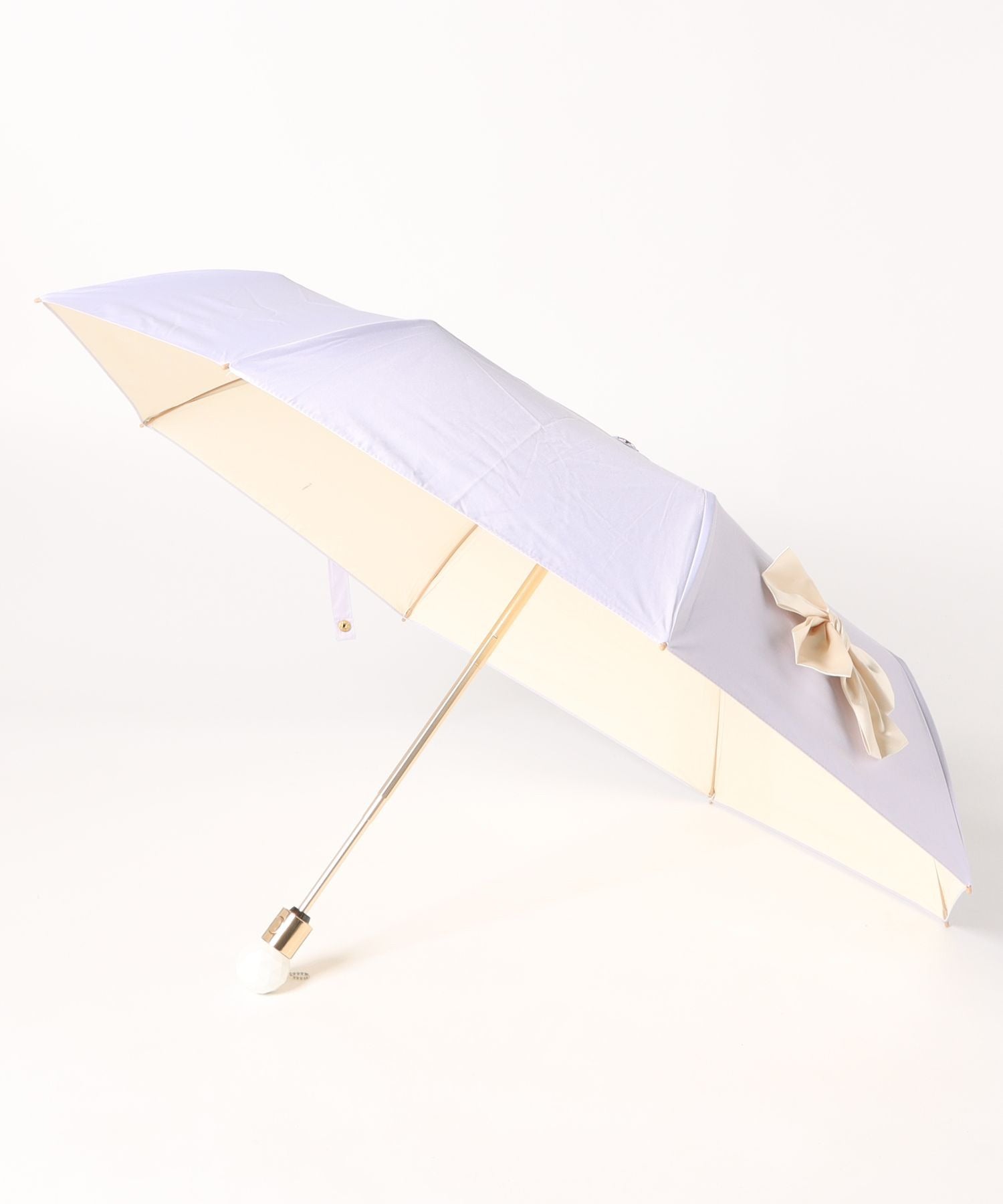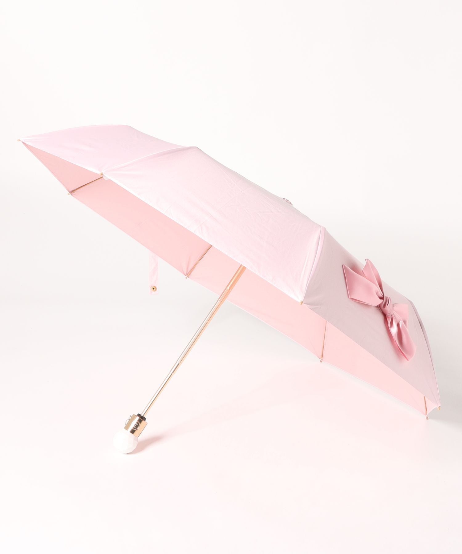 目を引く大きなリボンがアクセントになった、折りたたみ傘。