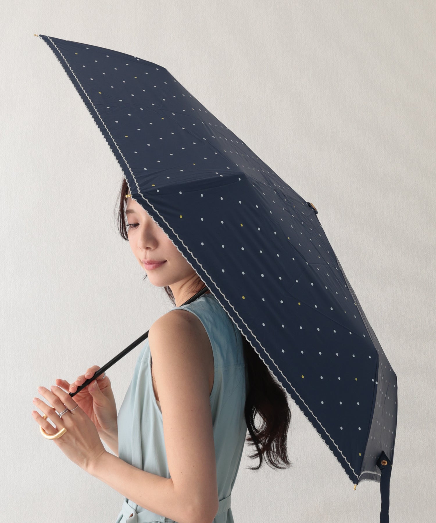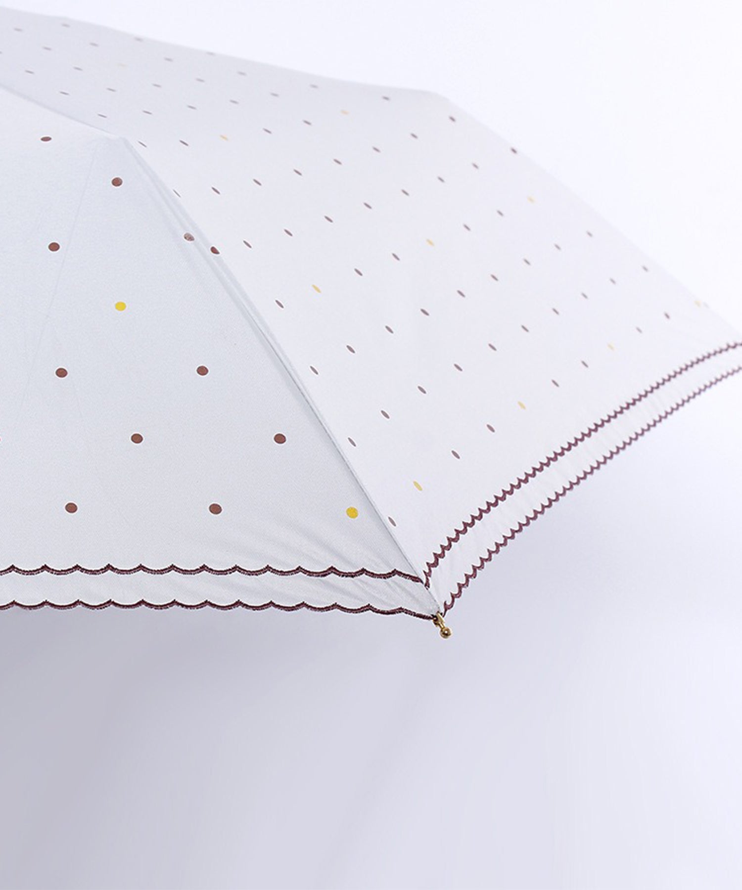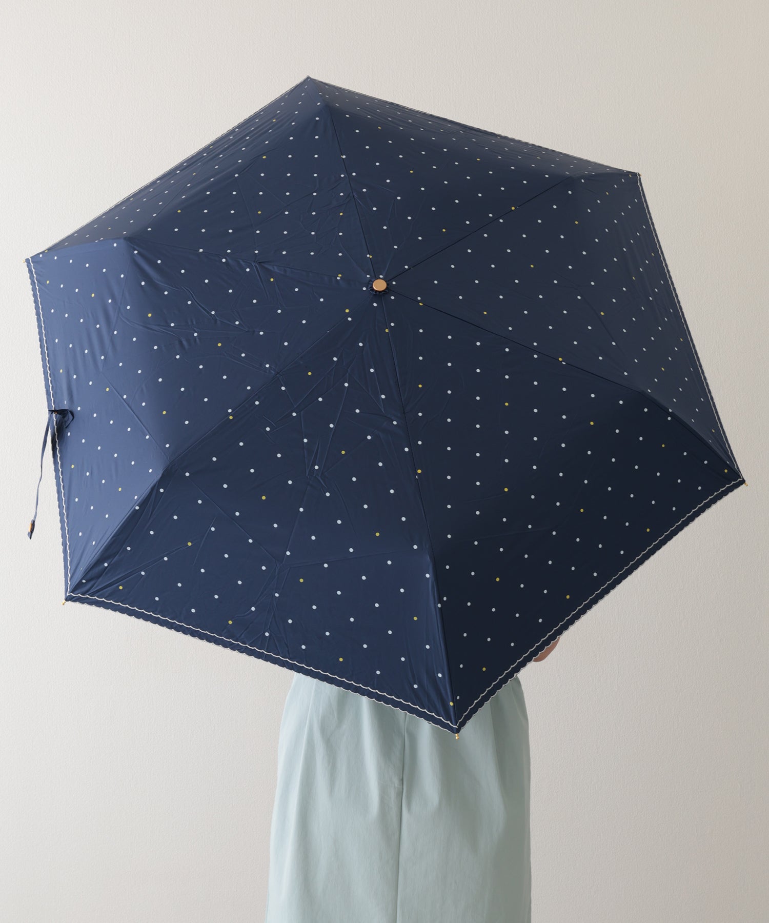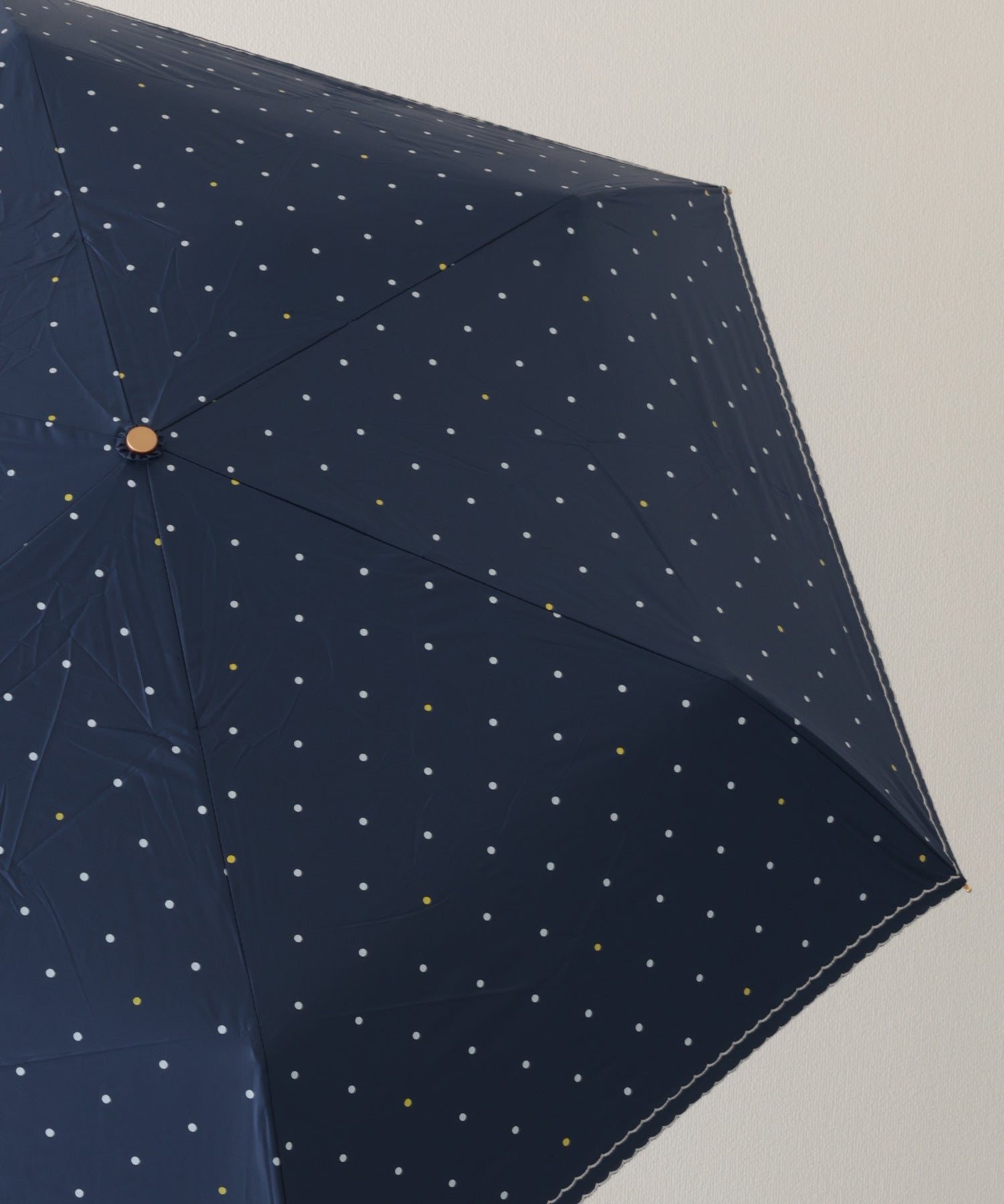 定番のドット柄が、さりげなく装いに可愛らしさを添えてくれる日傘。