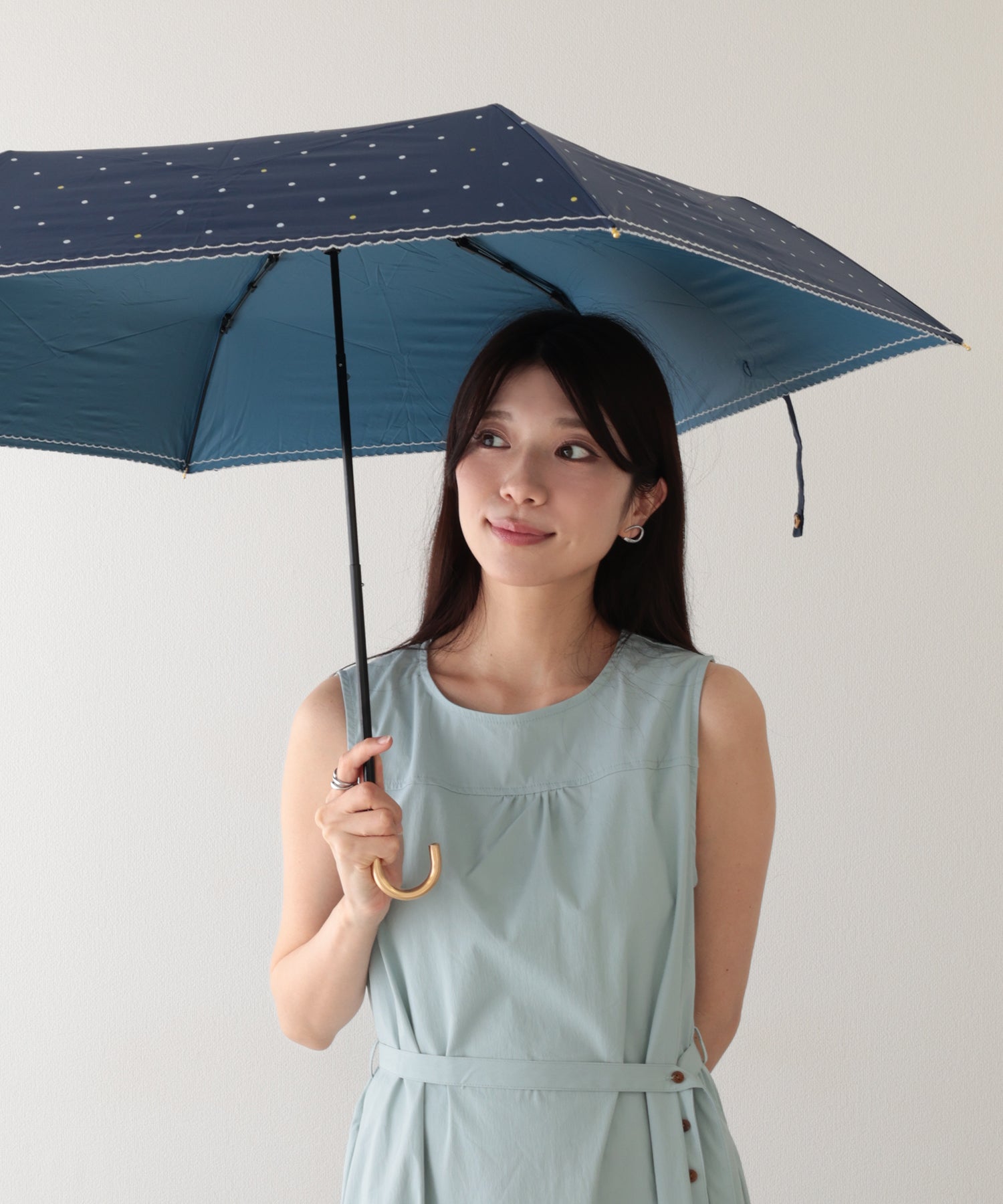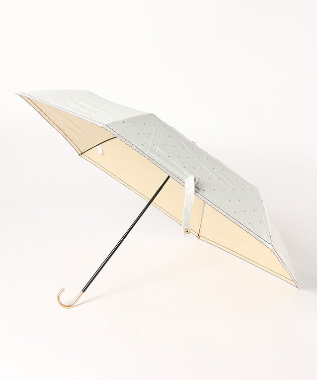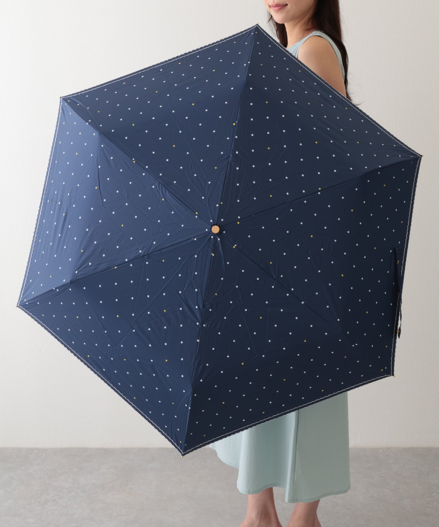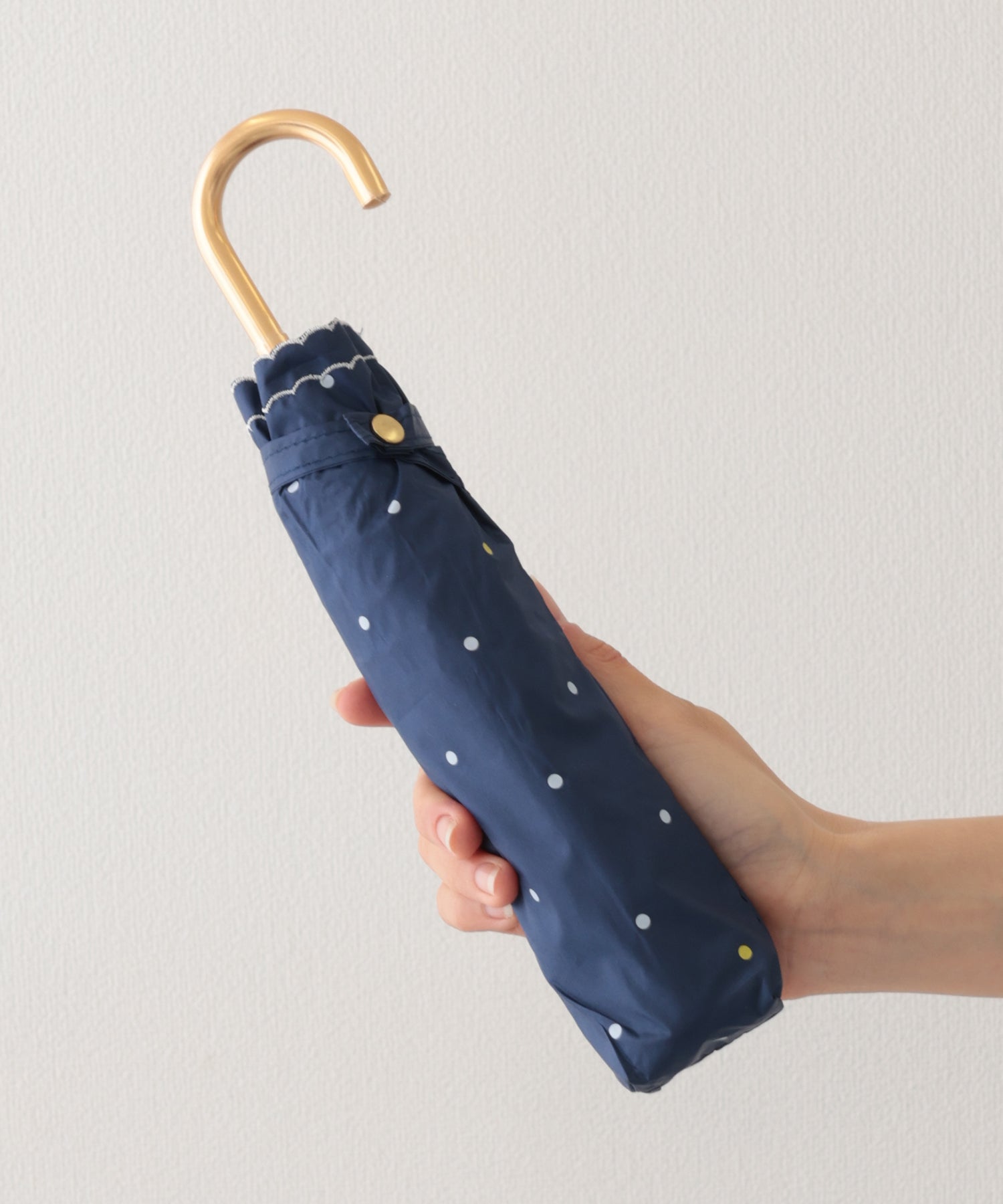 定番のドット柄が、さりげなく装いに可愛らしさを添えてくれる日傘。