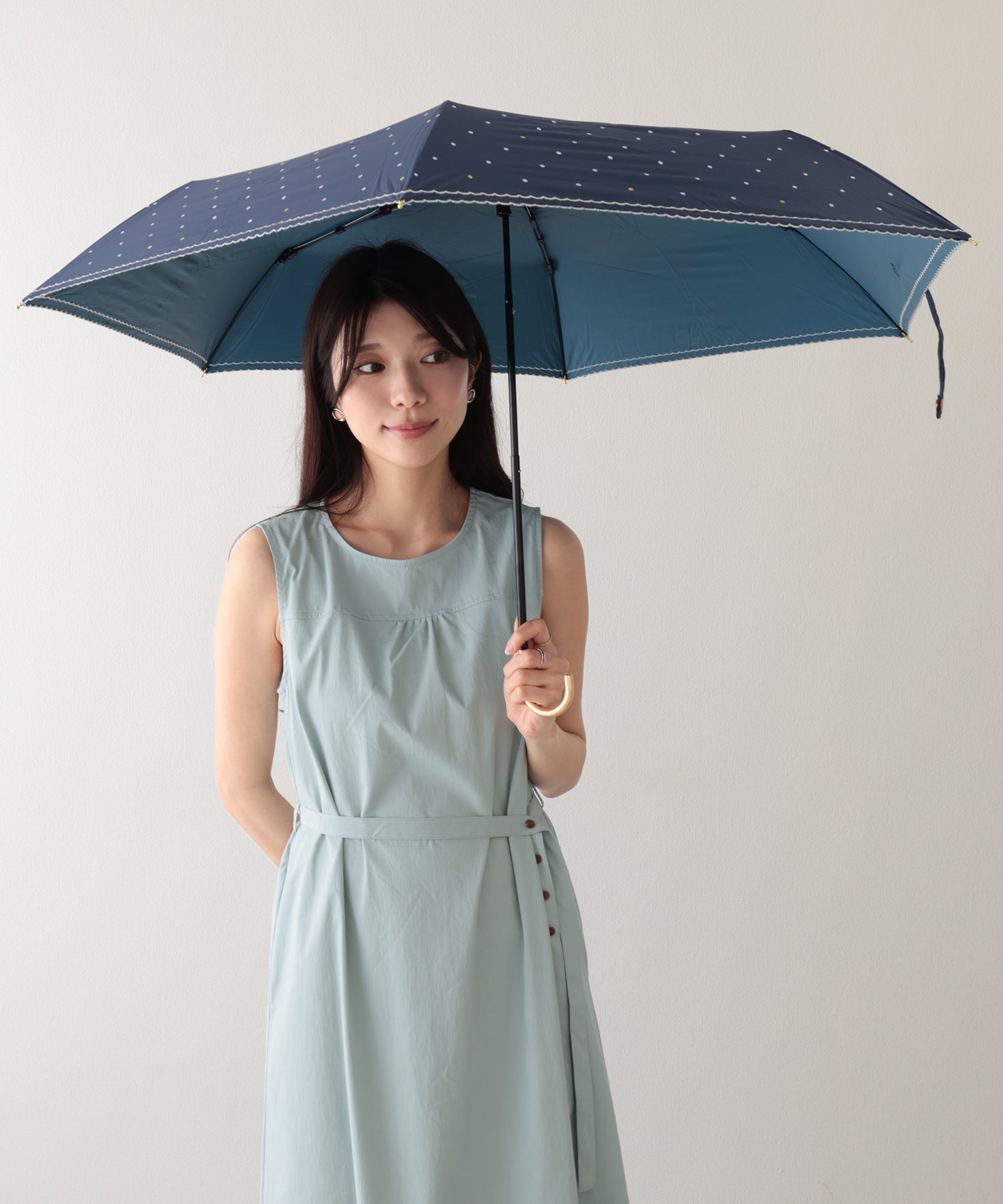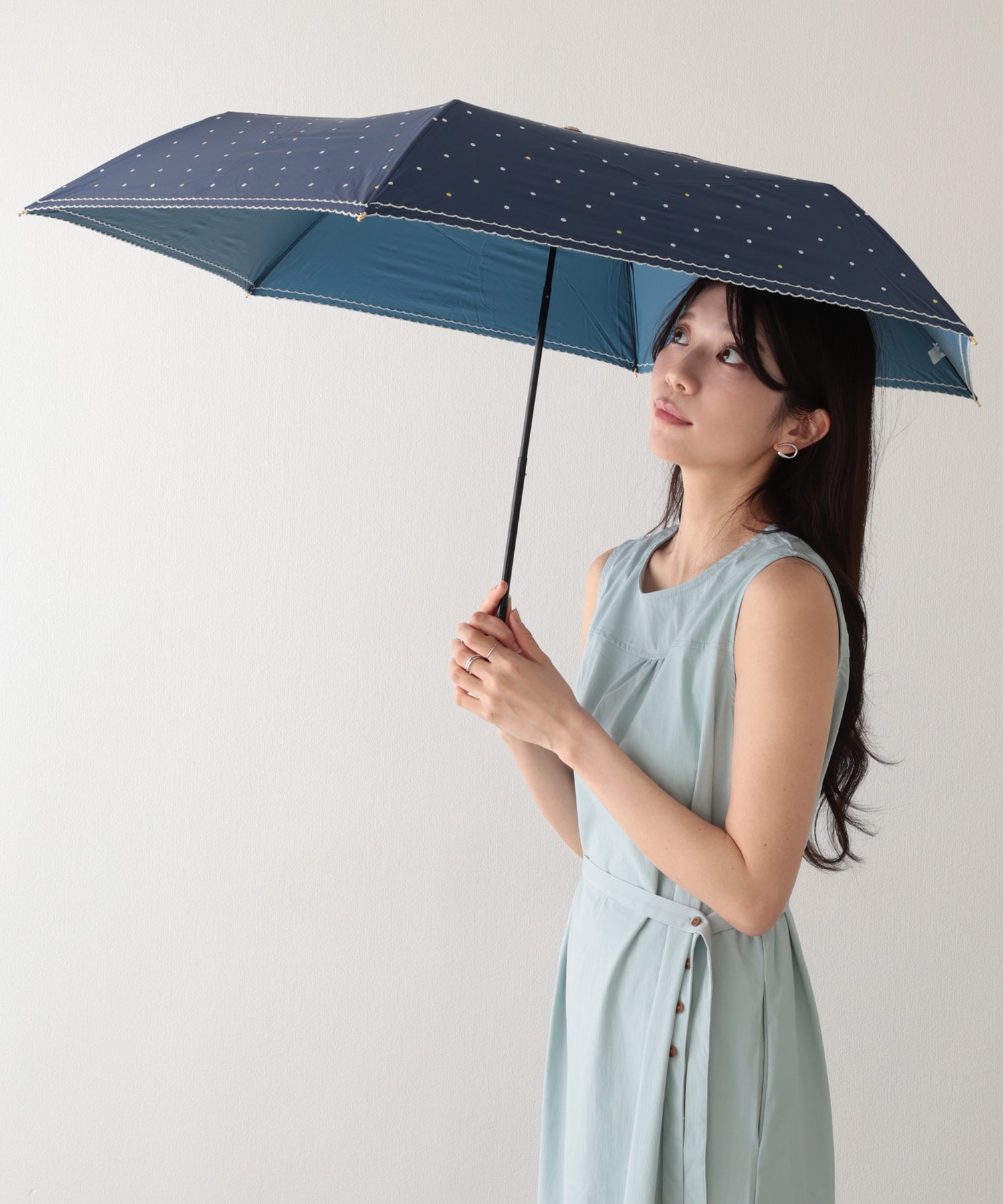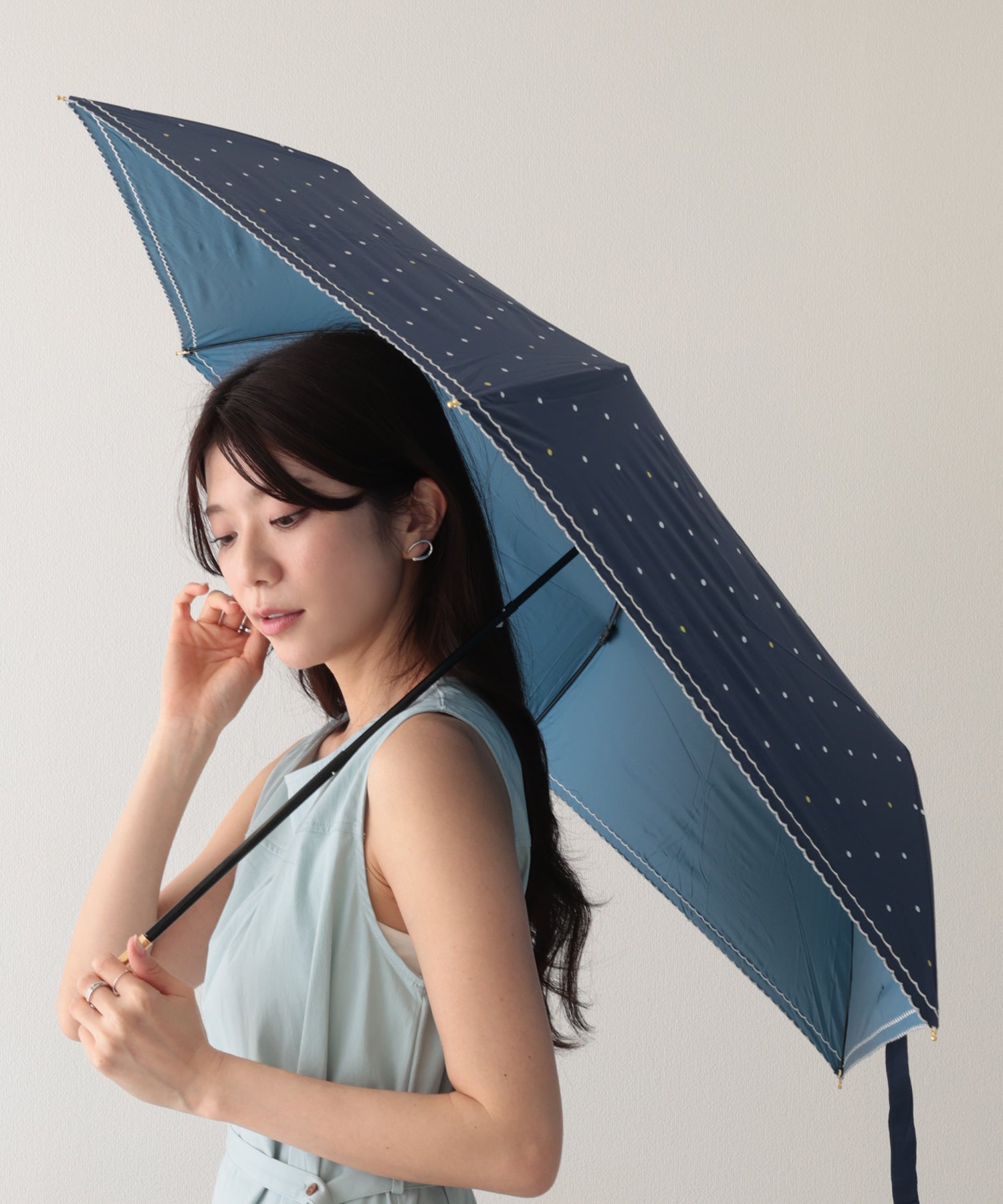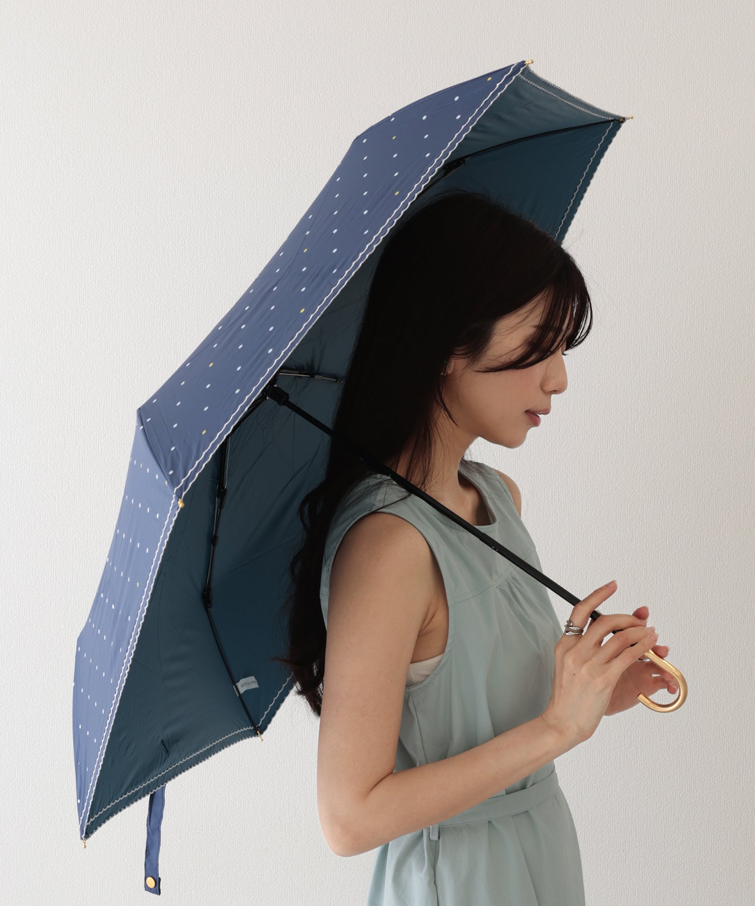 定番のドット柄が、さりげなく装いに可愛らしさを添えてくれる日傘。