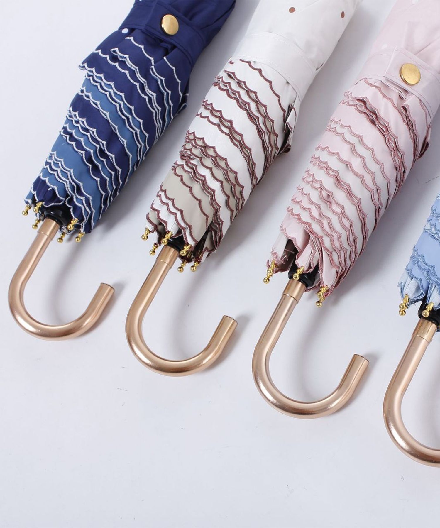 晴雨兼用 小花柄 刺繍 レース レイヤード 折りたたみ傘
