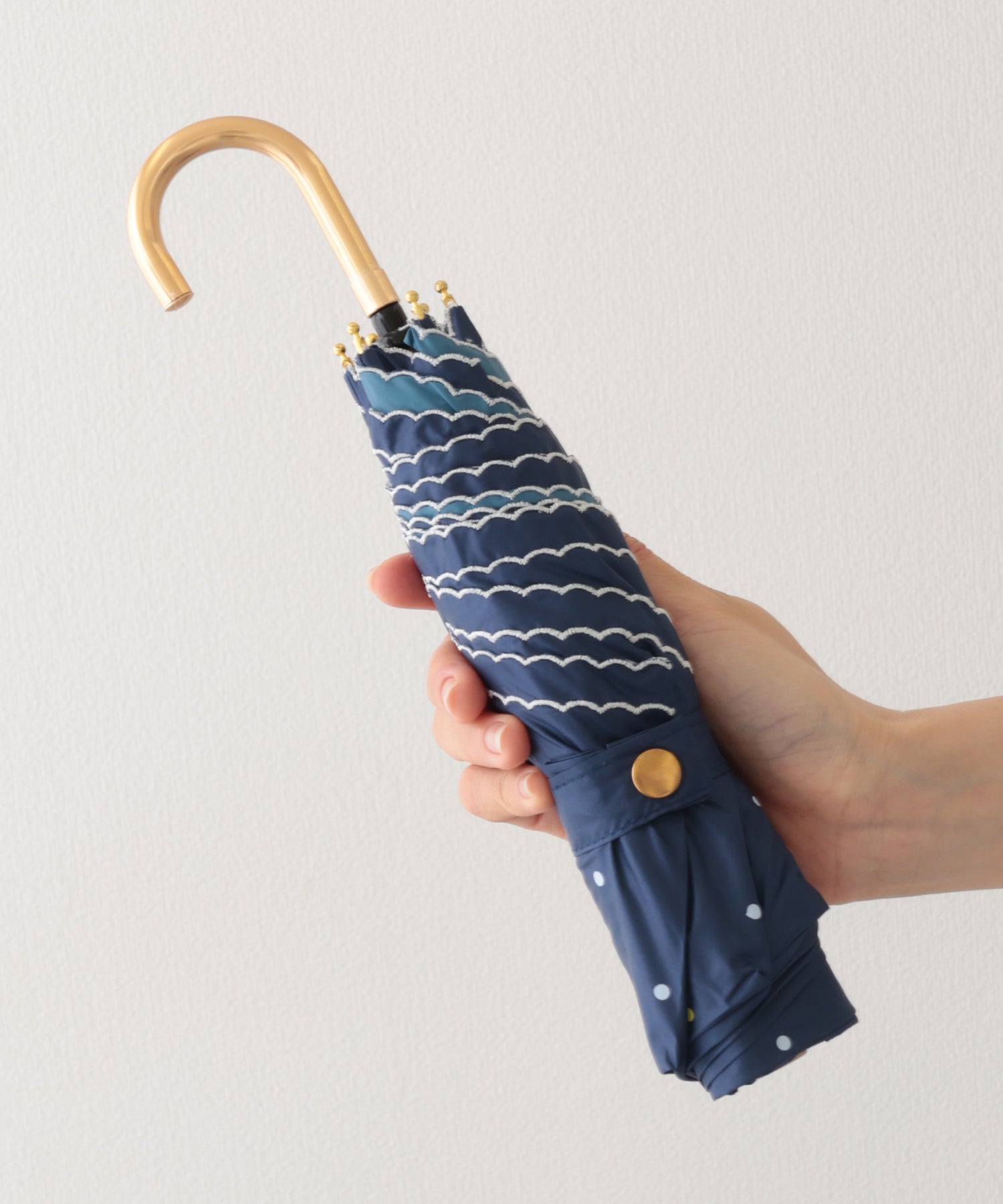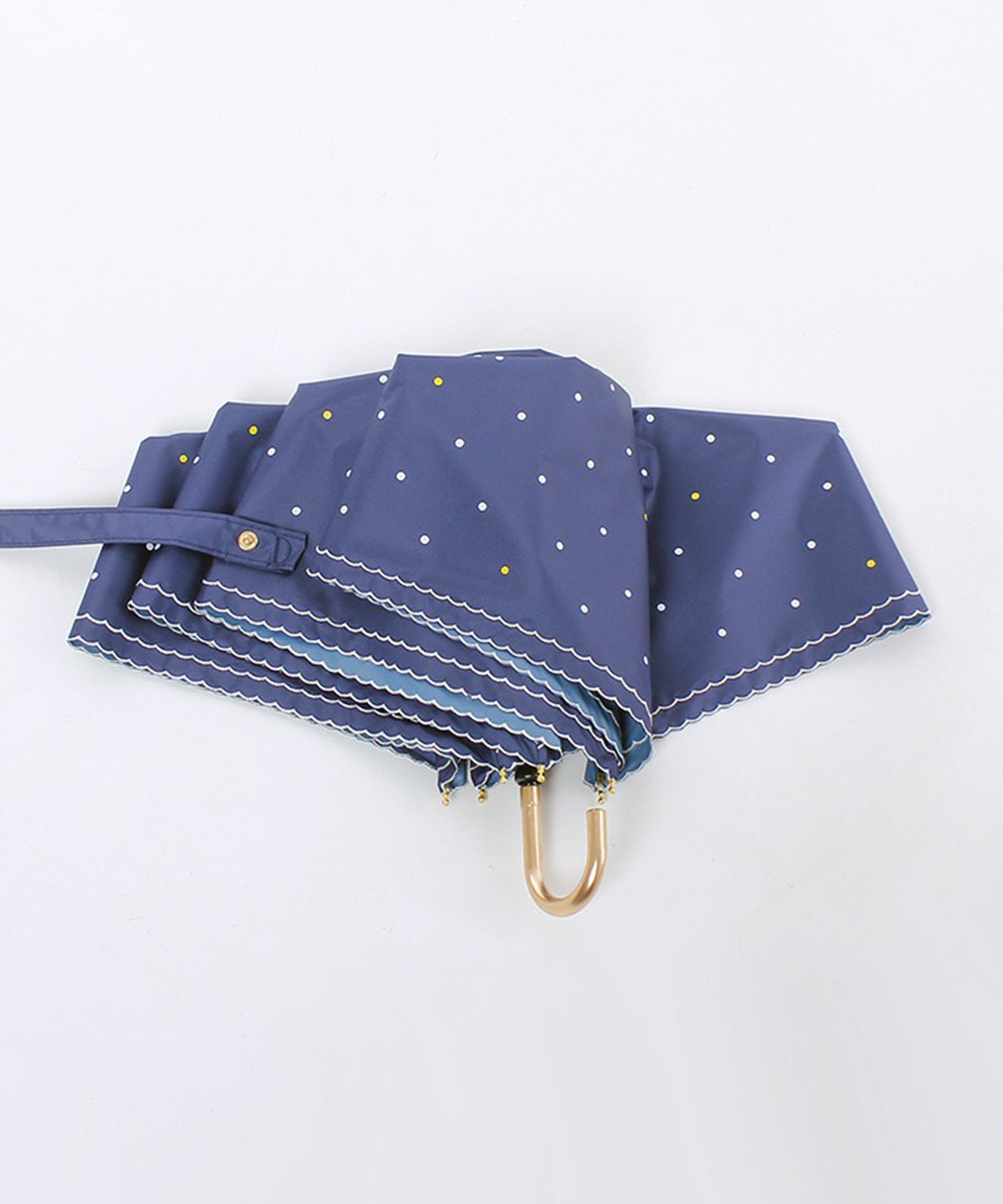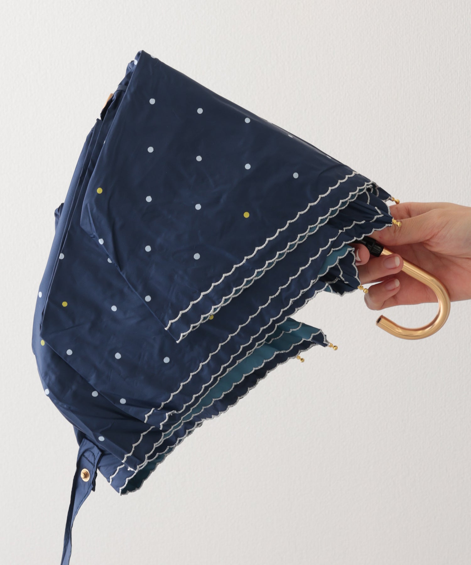 ダブル スカラップ ドット柄 三つ折り 折りたたみ傘