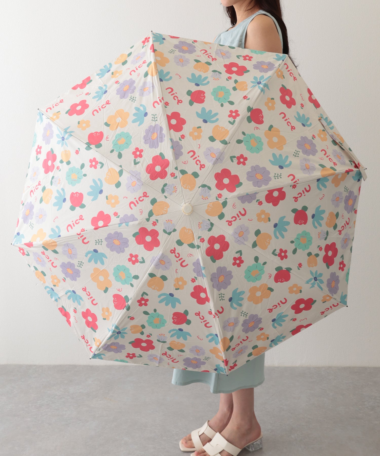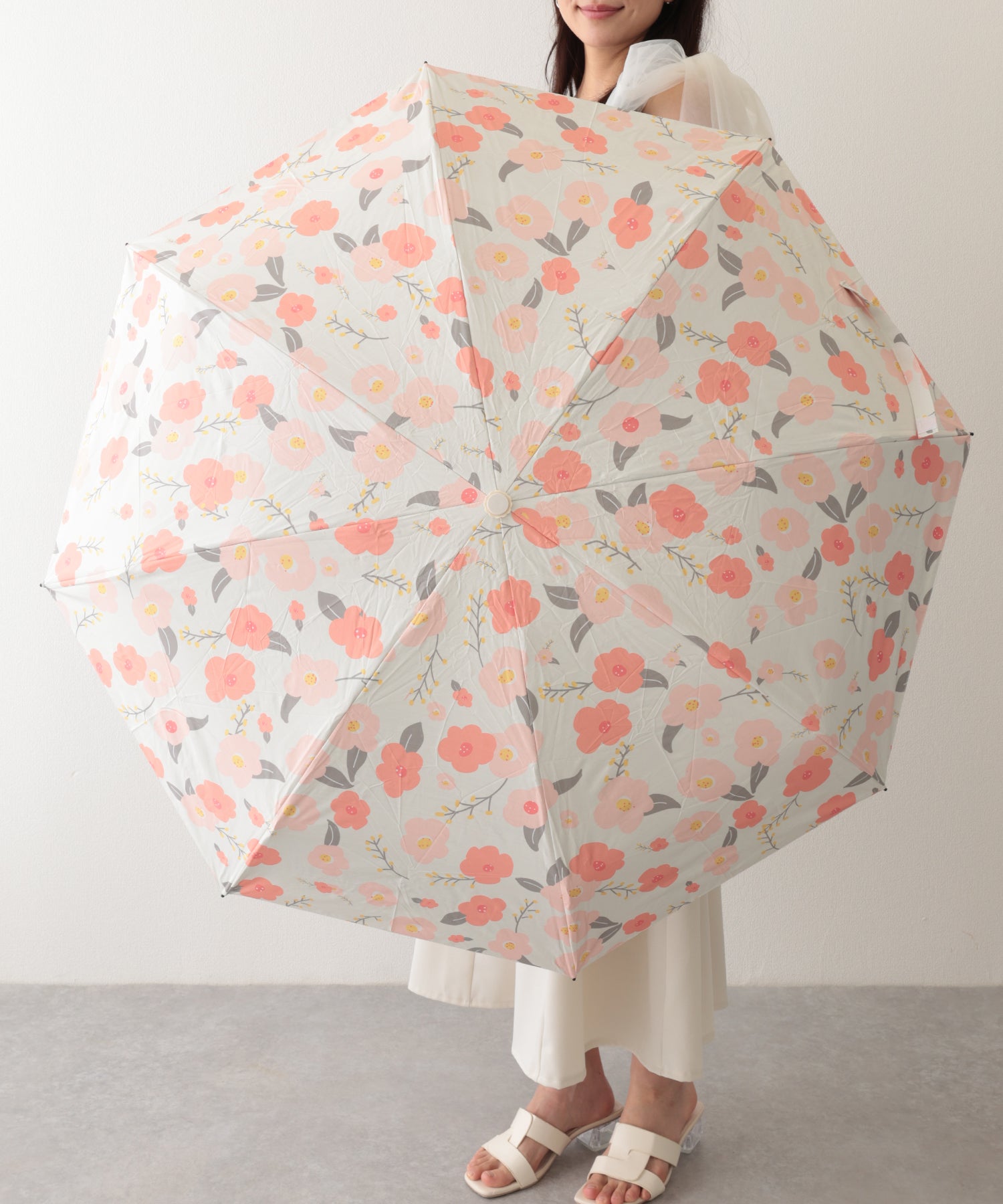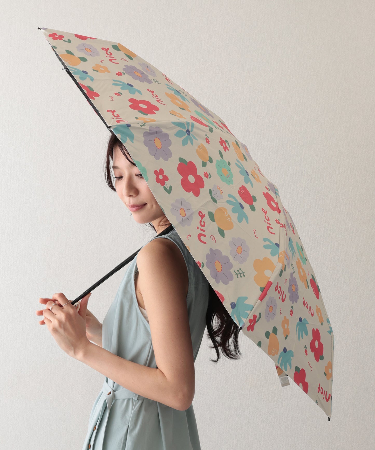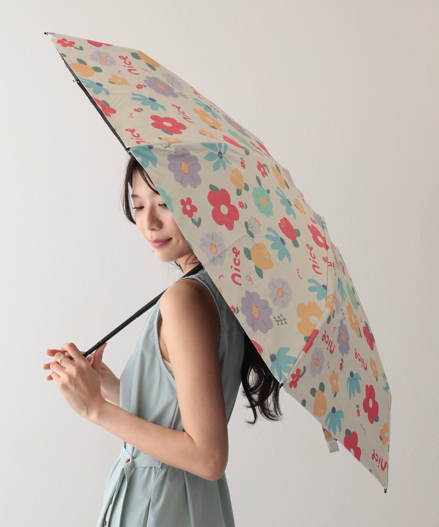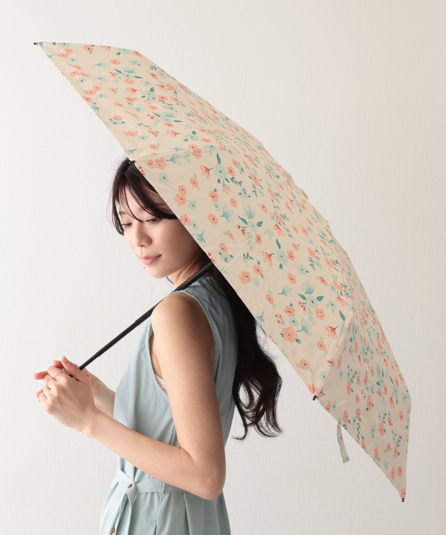 晴雨兼用 配色 フラワー 遮光 折りたたみ傘