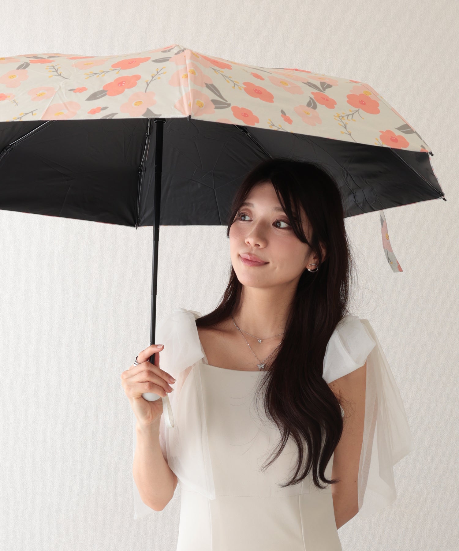 晴雨兼用 小花柄 刺繍 レース レイヤード 折りたたみ傘