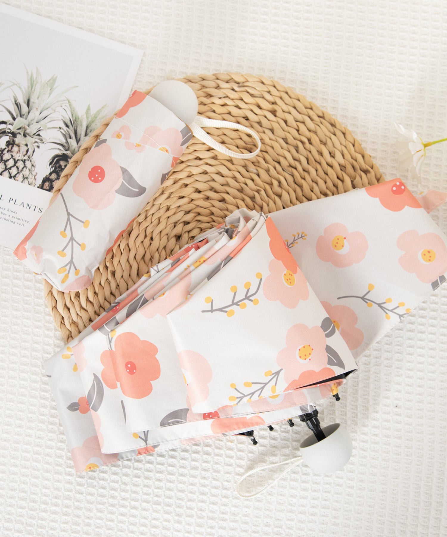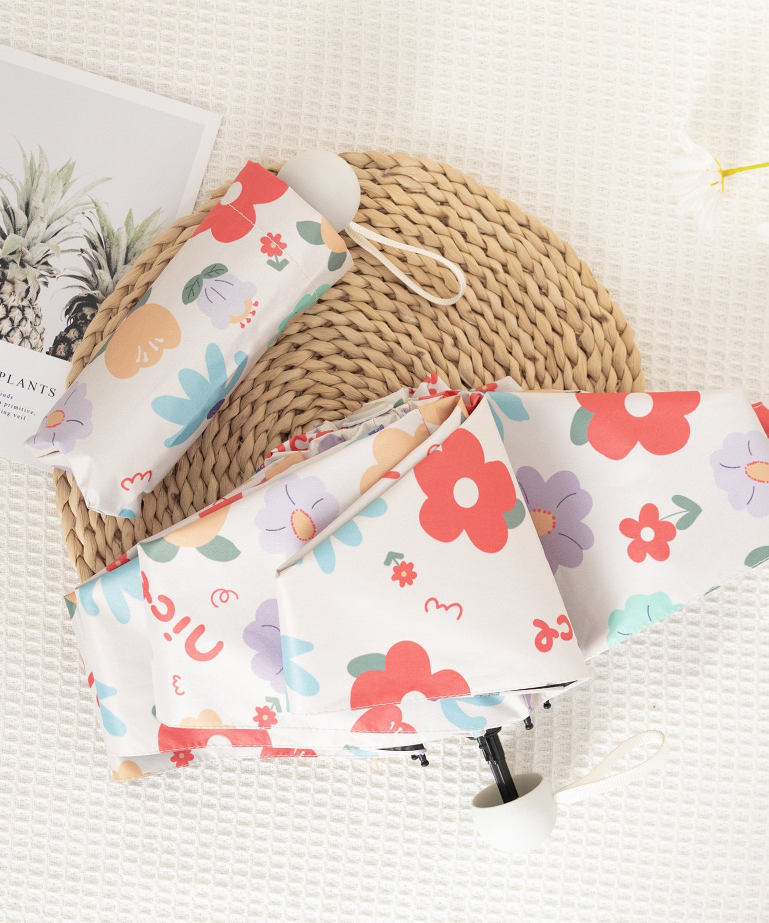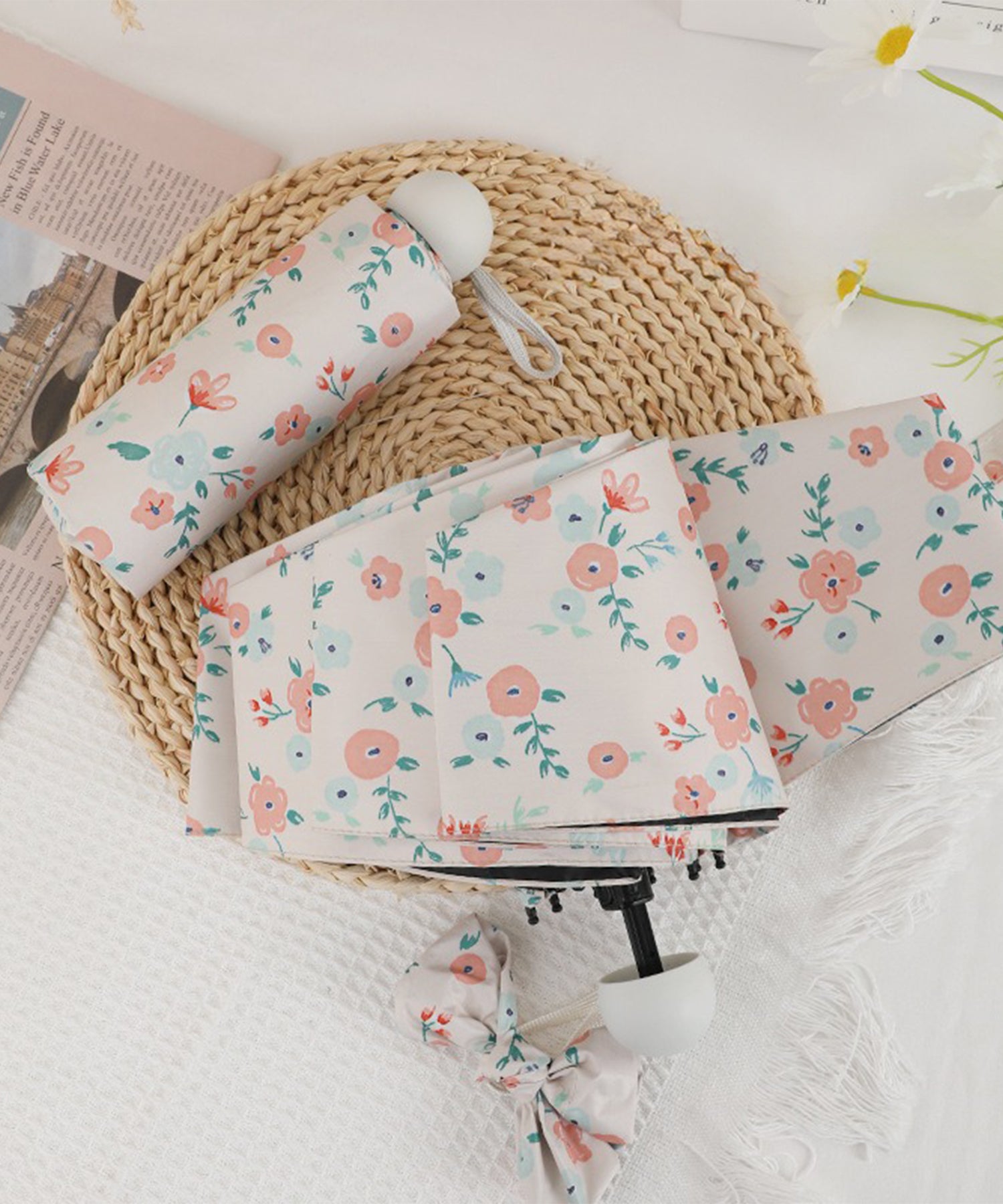 レトロな花柄生地がキュートな、折りたたみ傘。