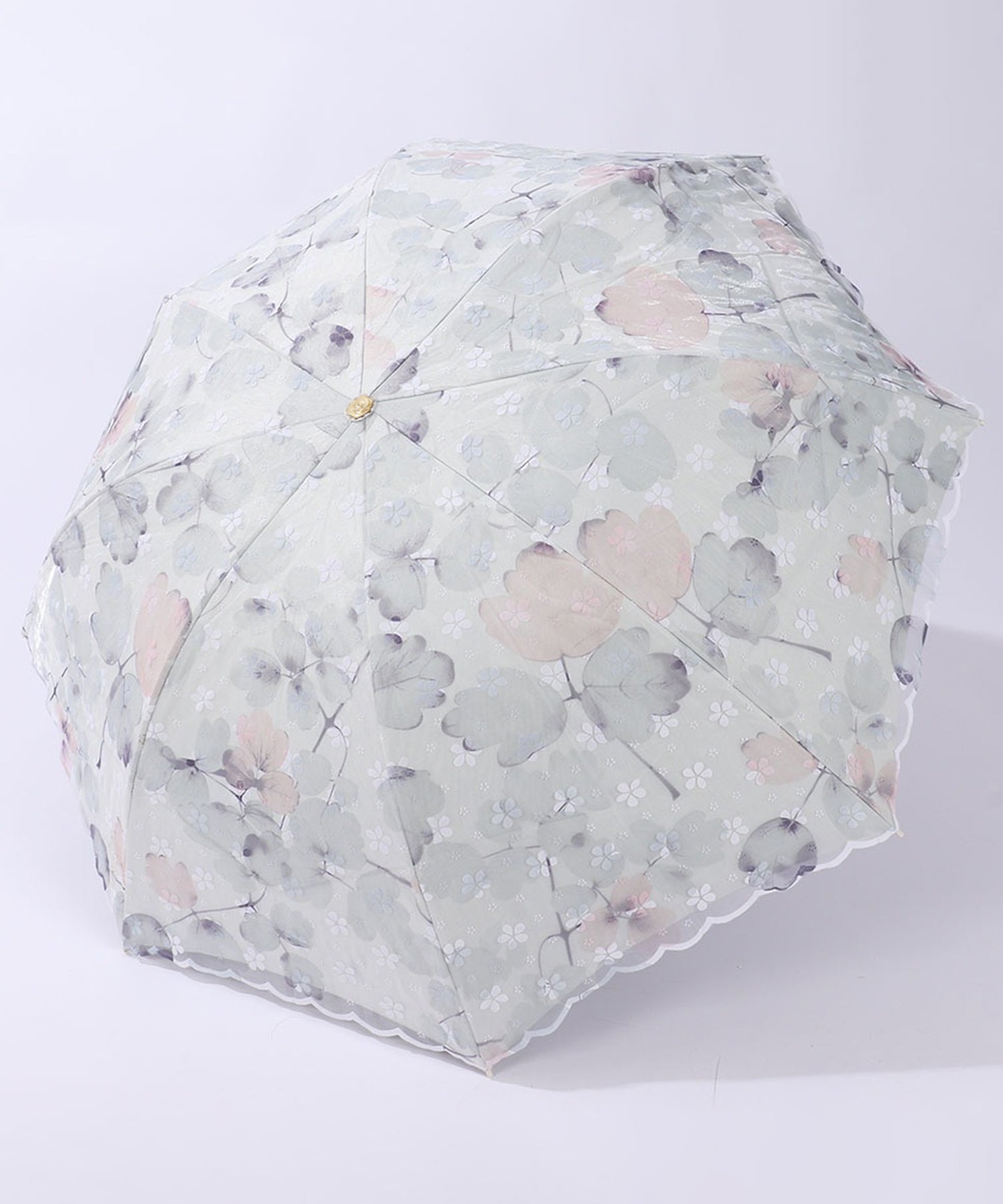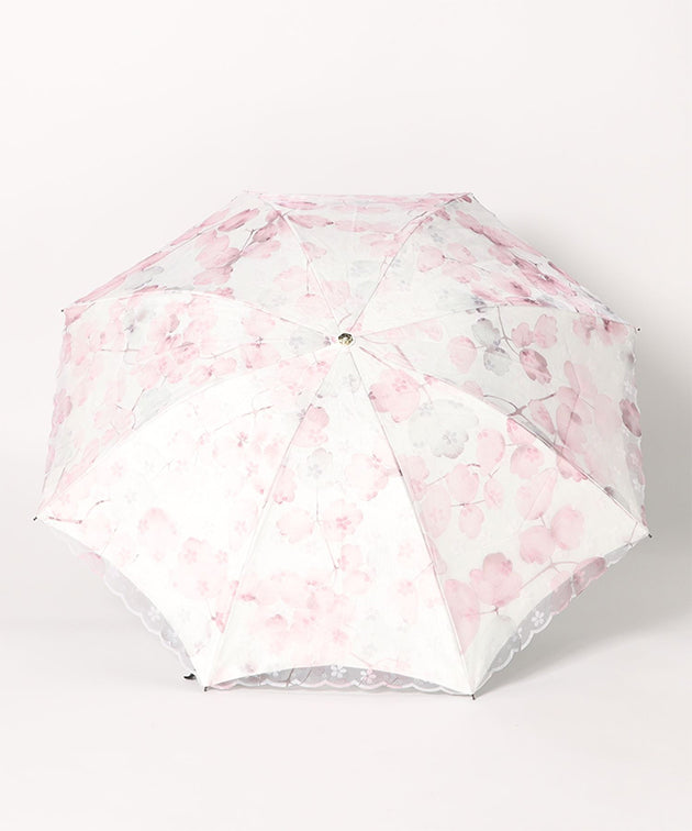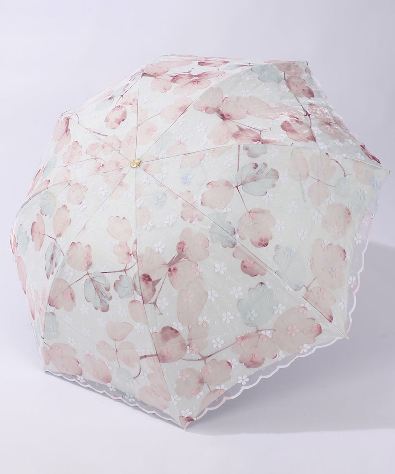 晴雨兼用 小花柄 刺繍 レース レイヤード 折りたたみ傘