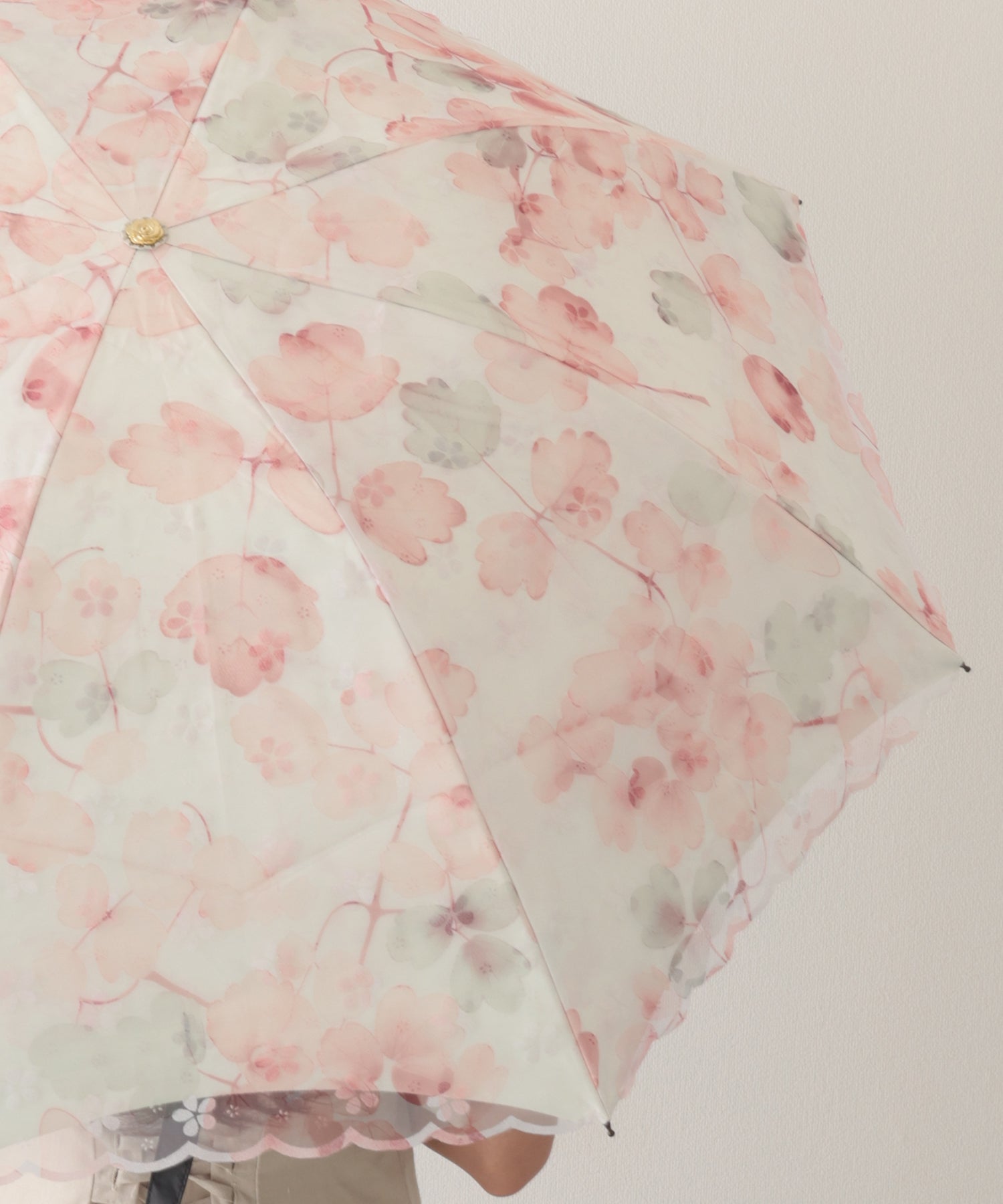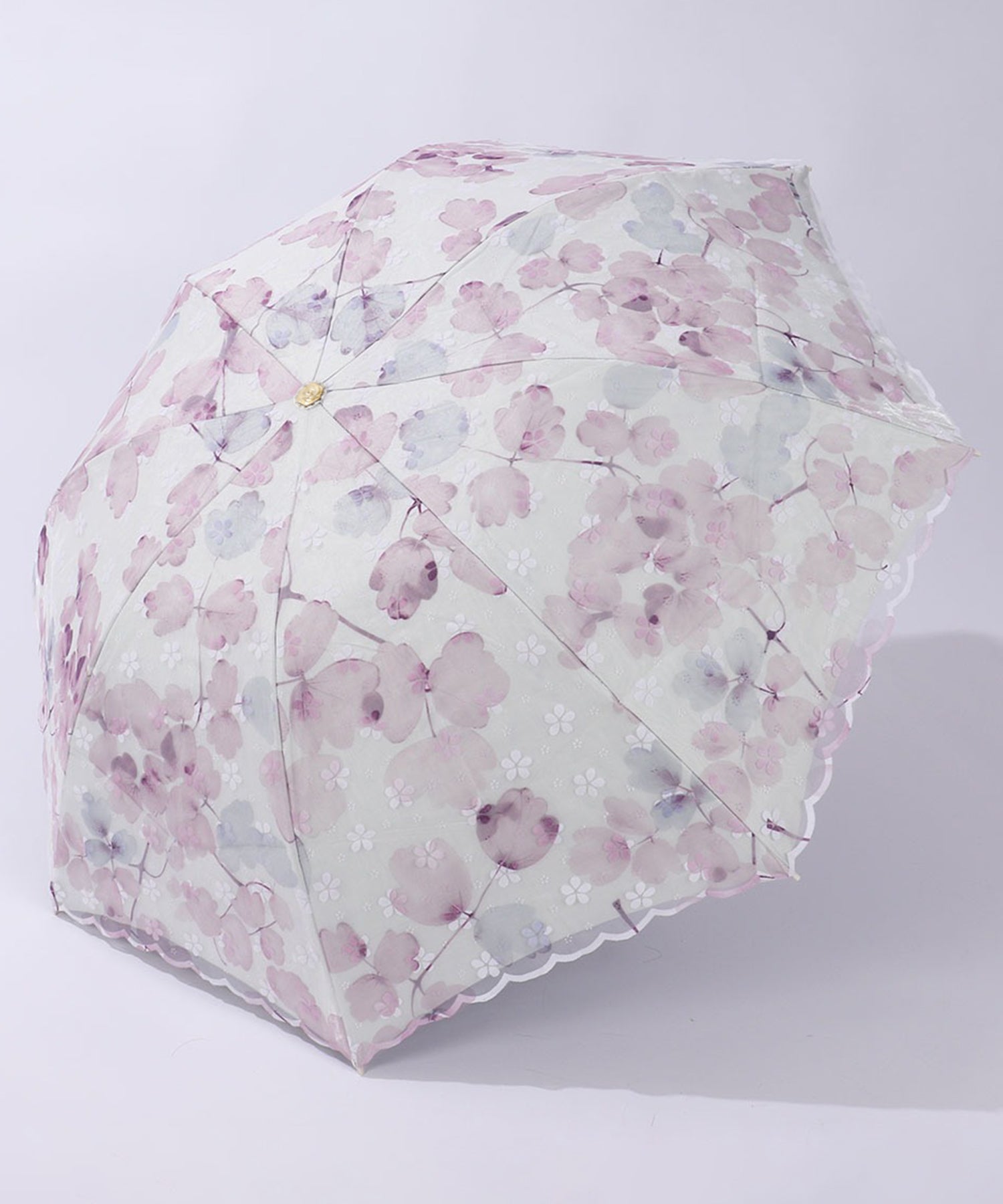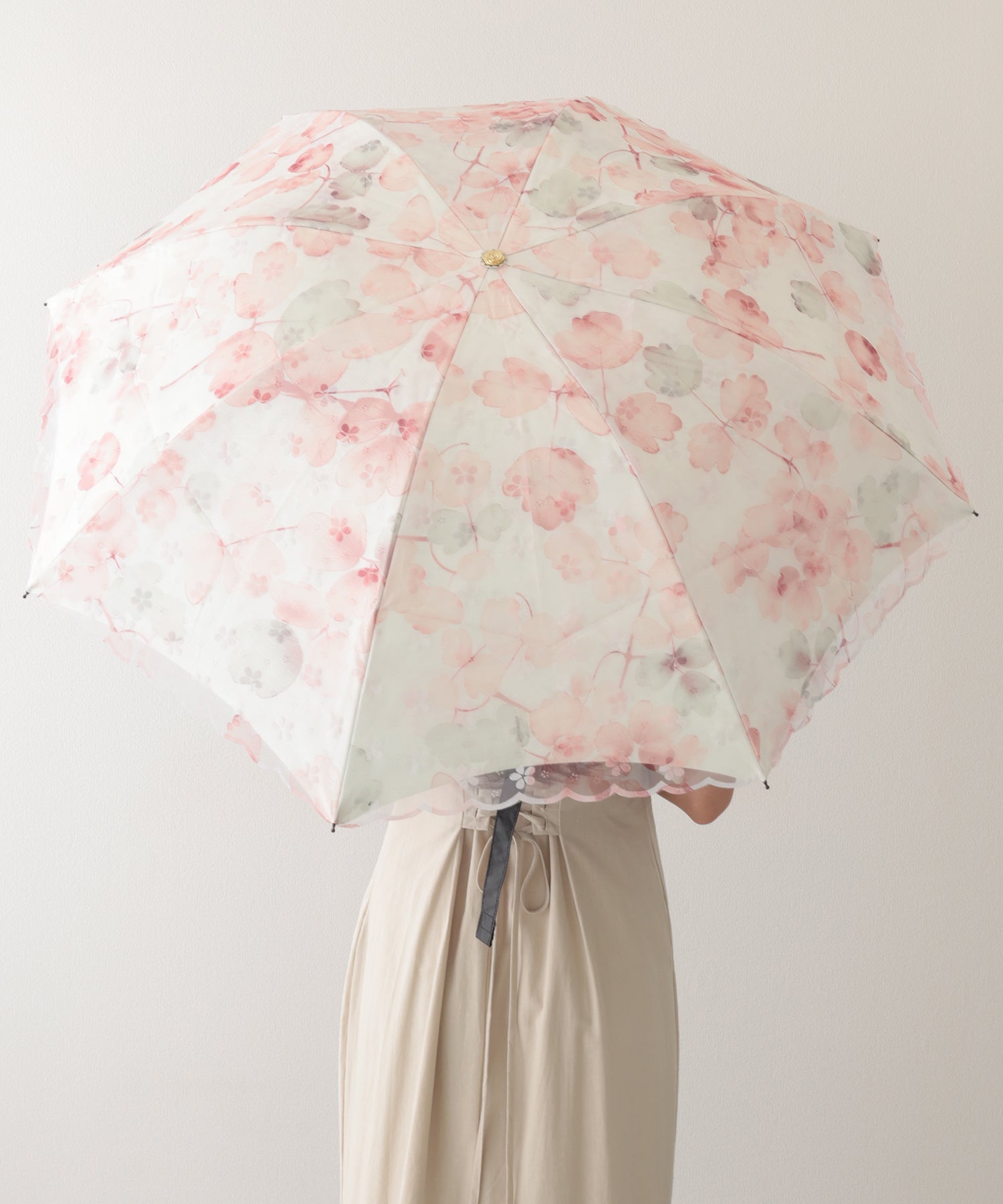 晴雨兼用 小花柄 刺繍 レース レイヤード 折りたたみ傘