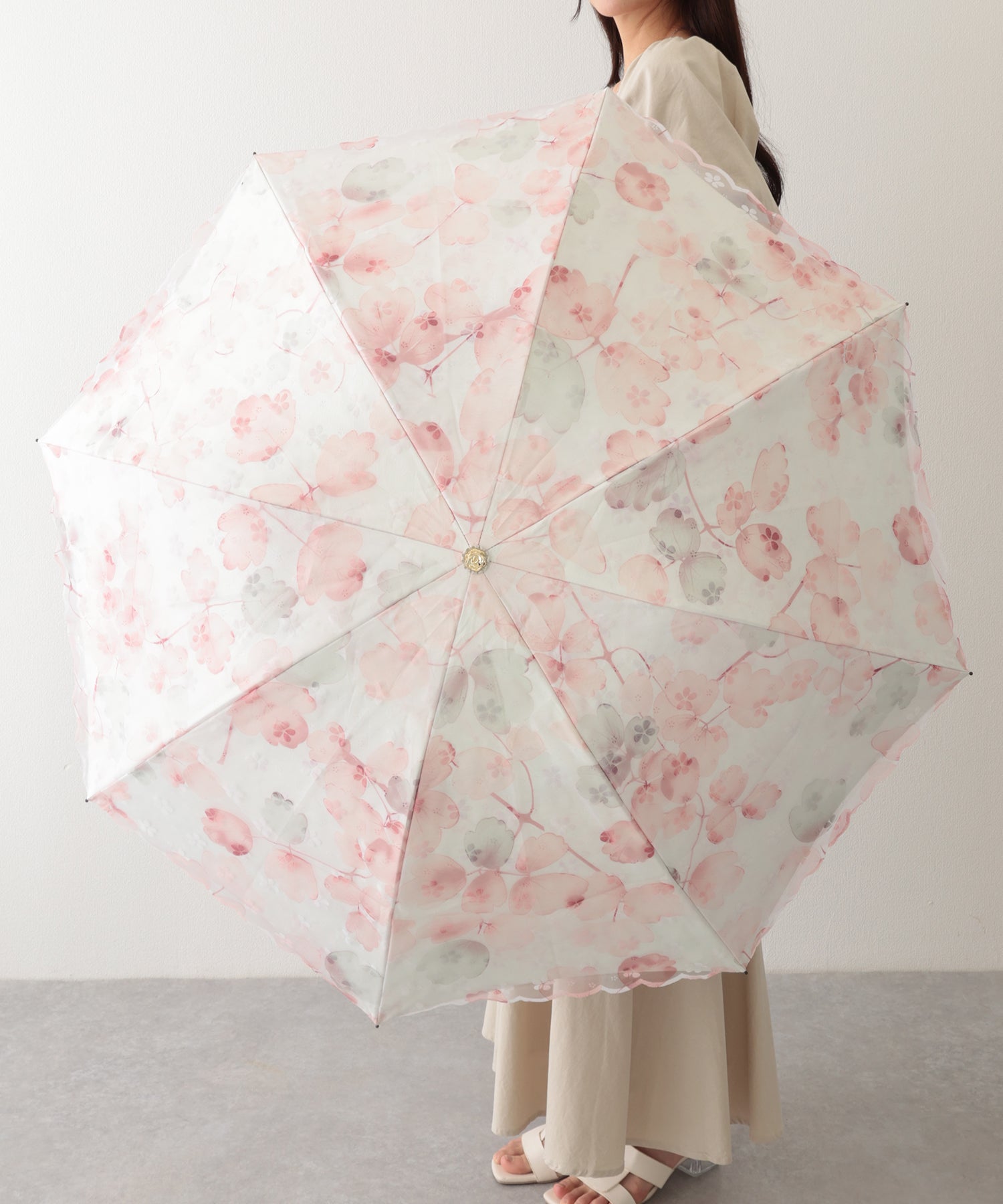 華やかなボタニカル柄レースを重ねた、折りたたみ傘。