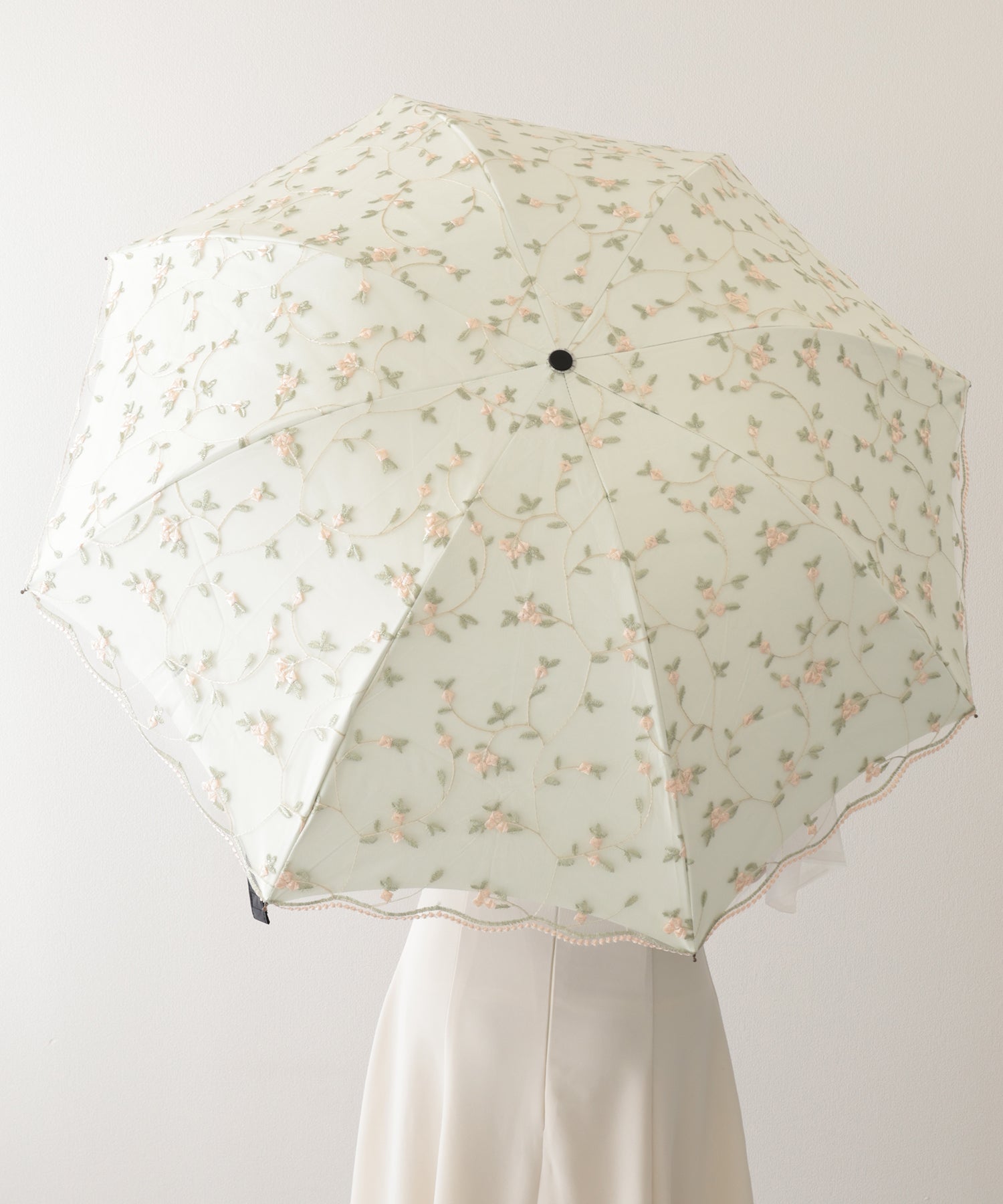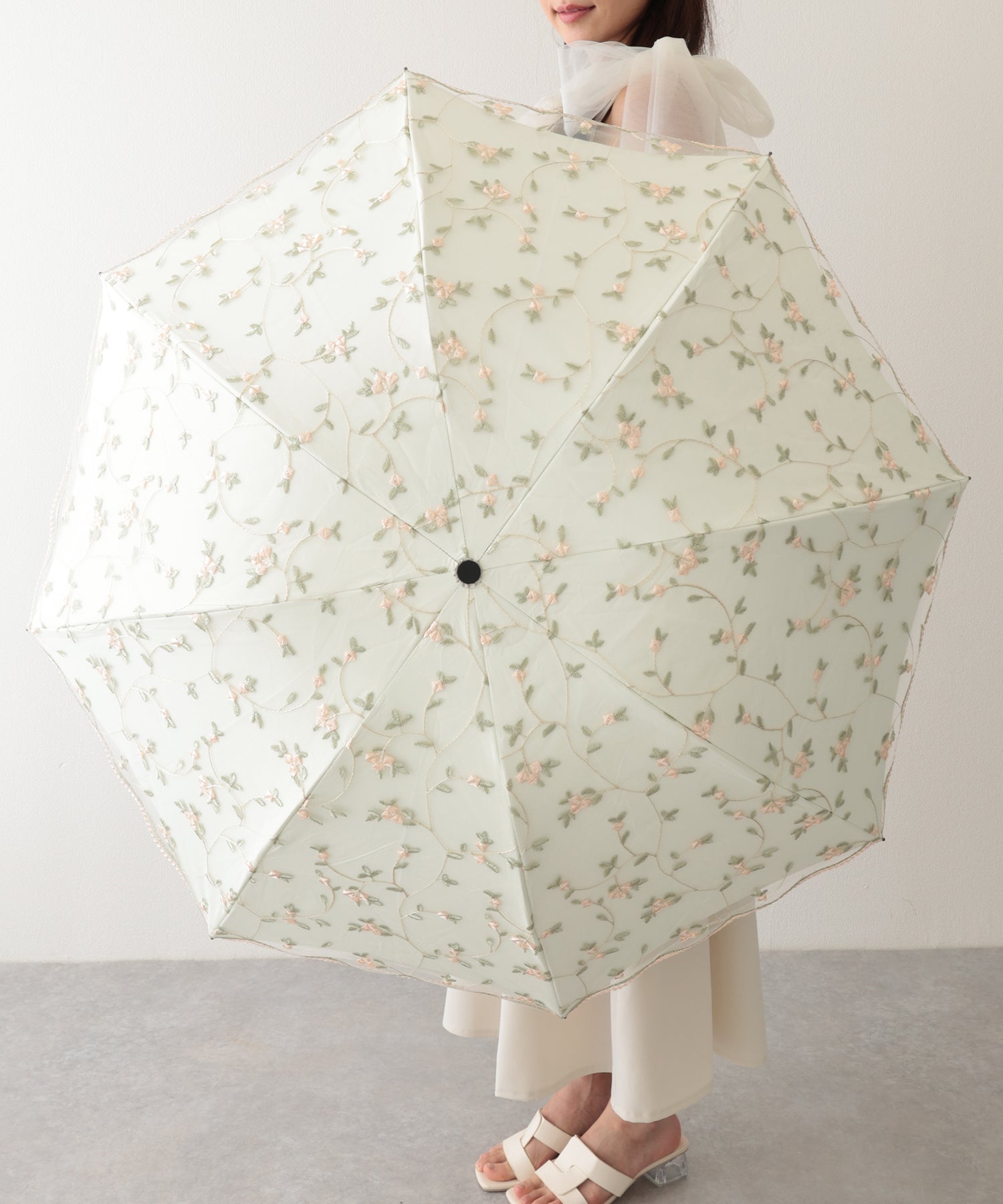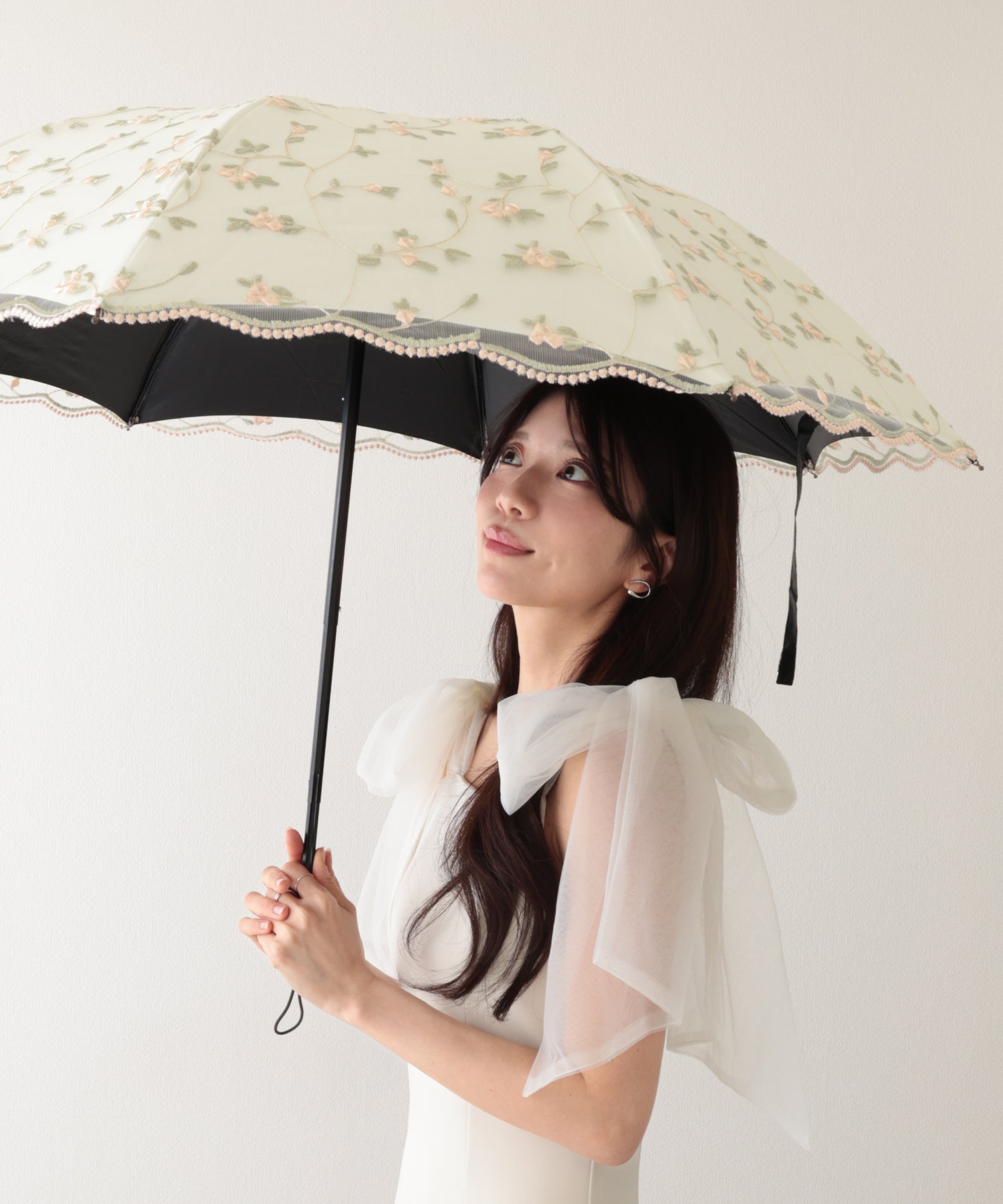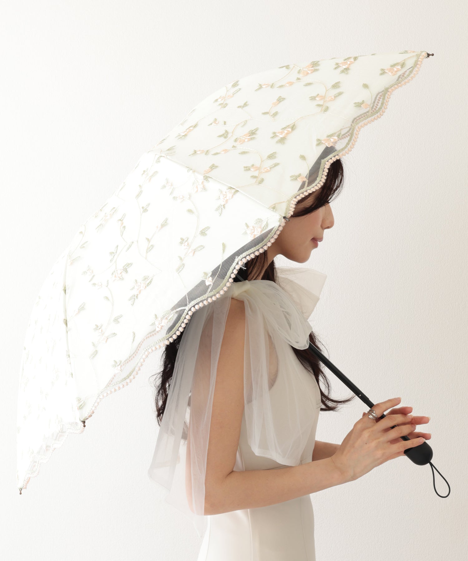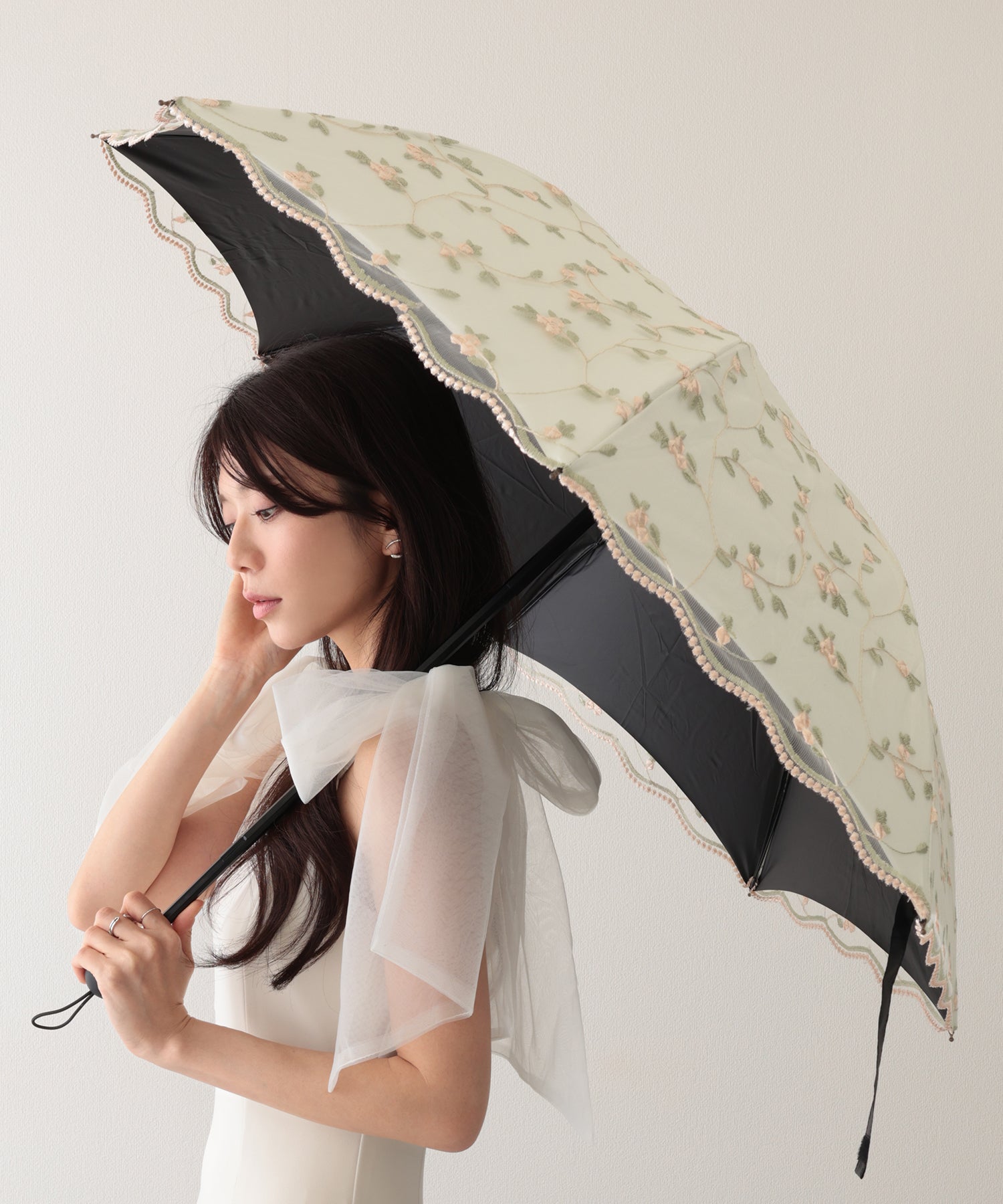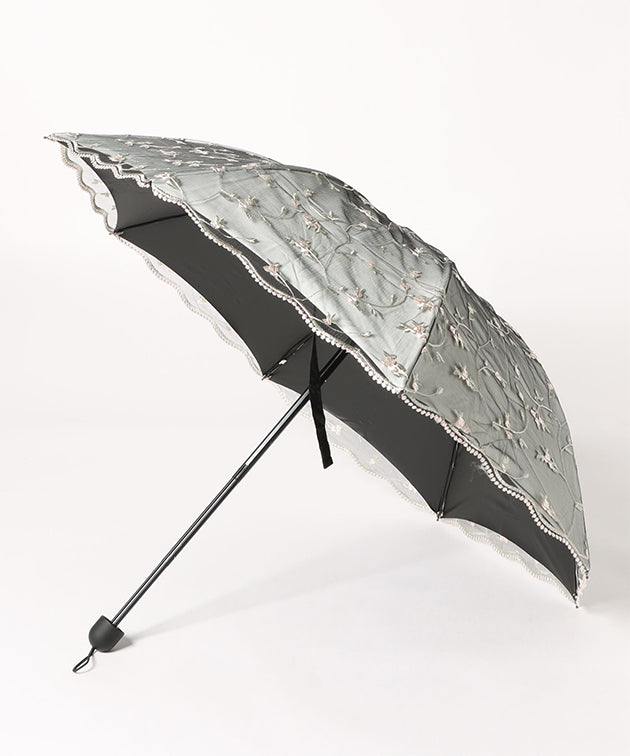 ボタニカル 刺繍 レース レイヤード 折りたたみ傘