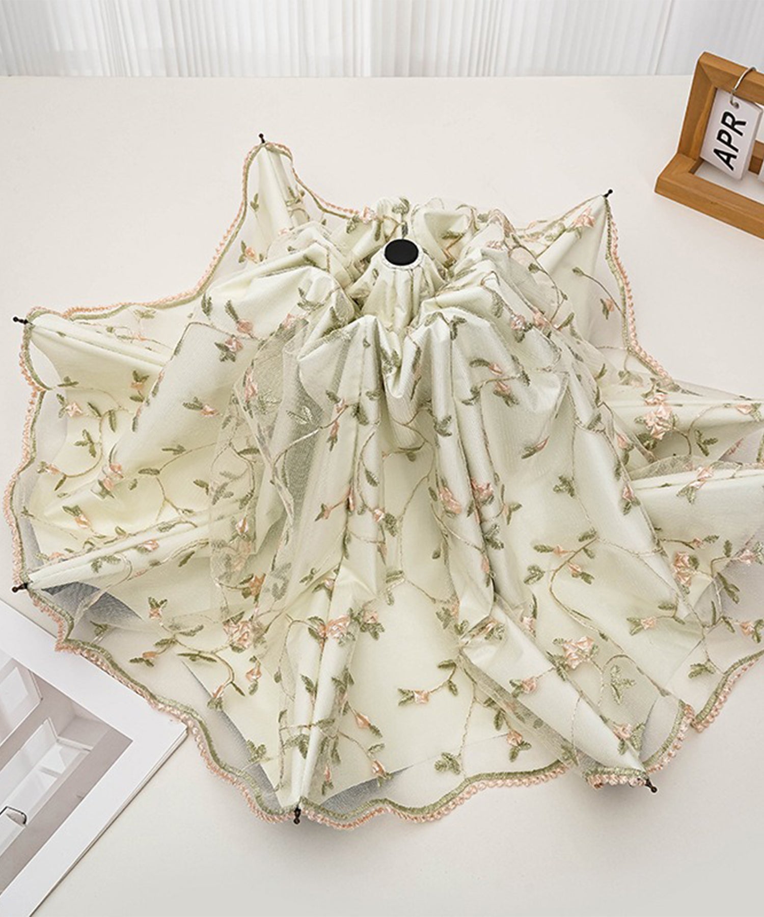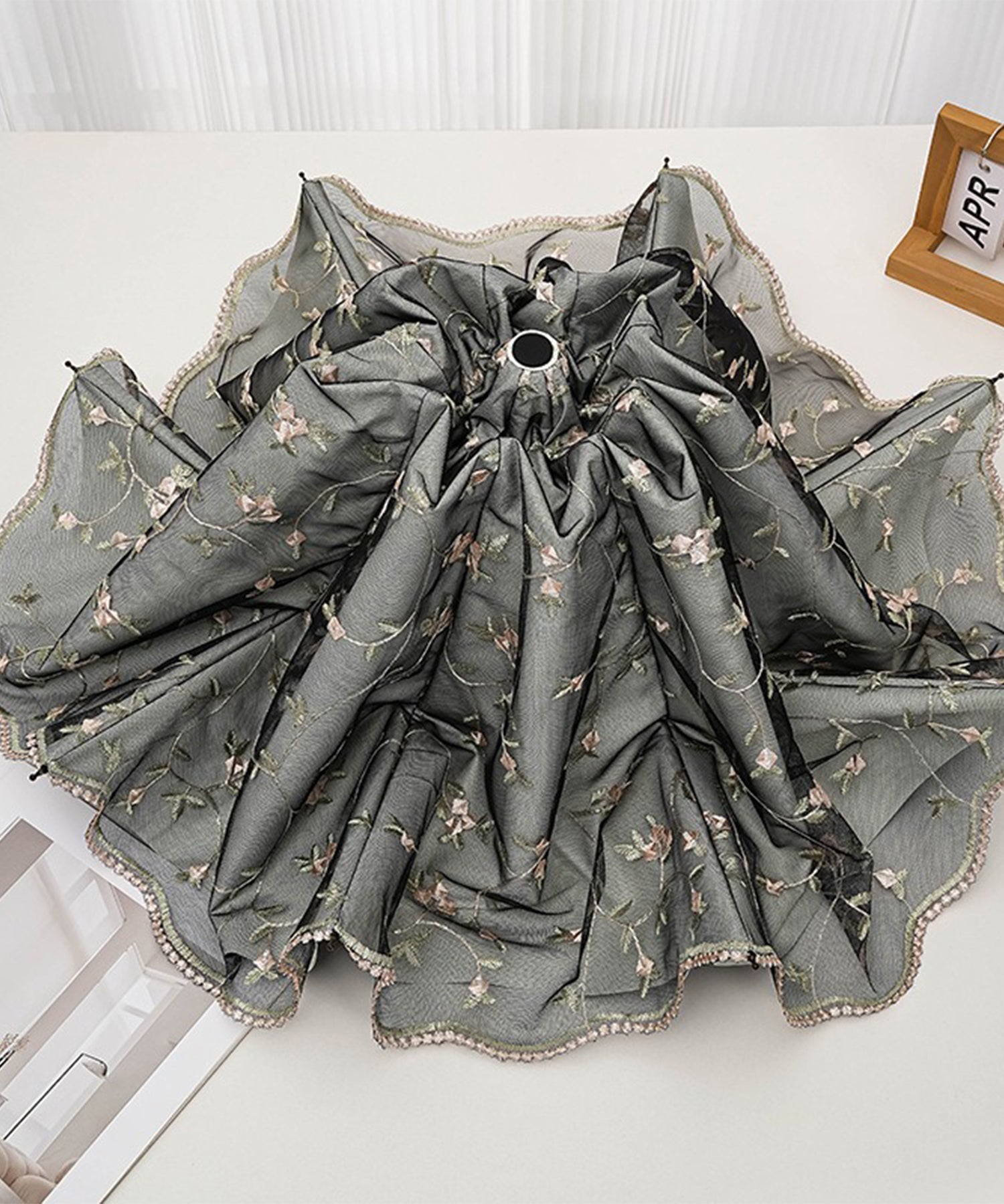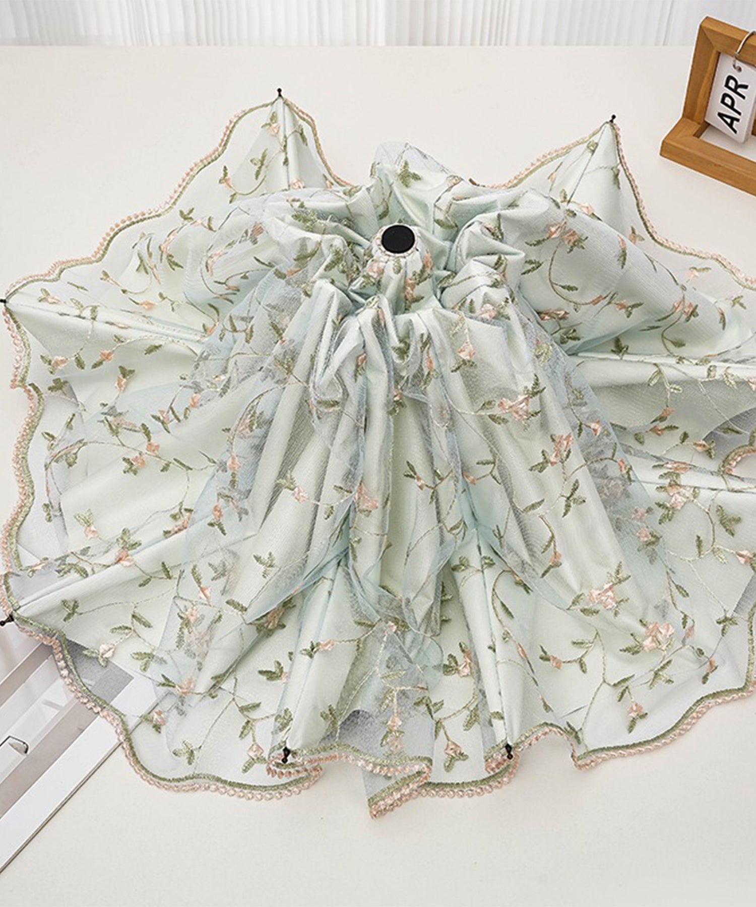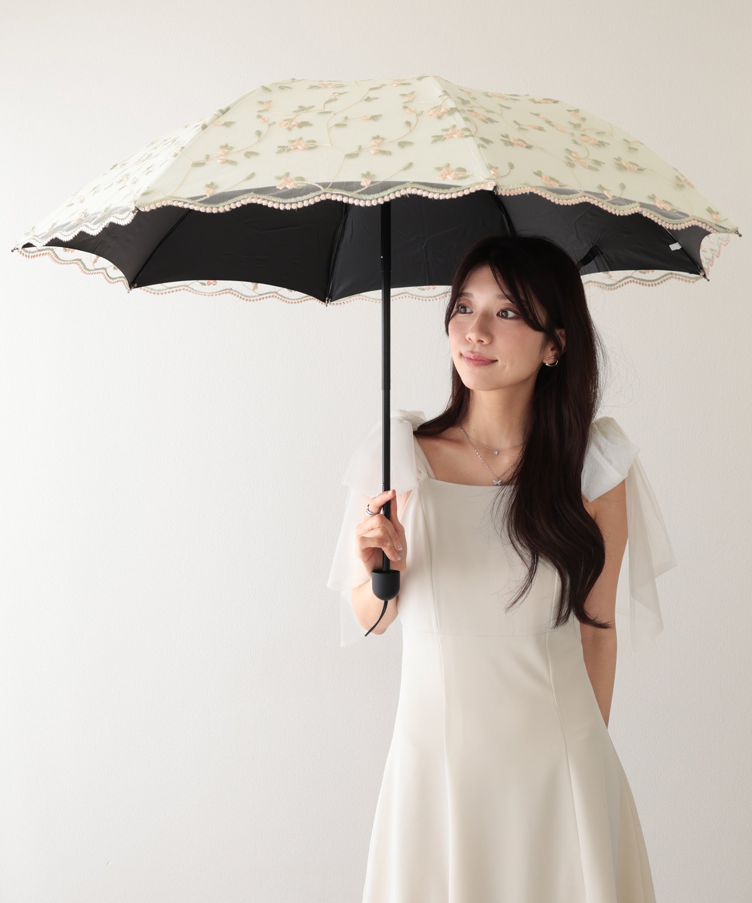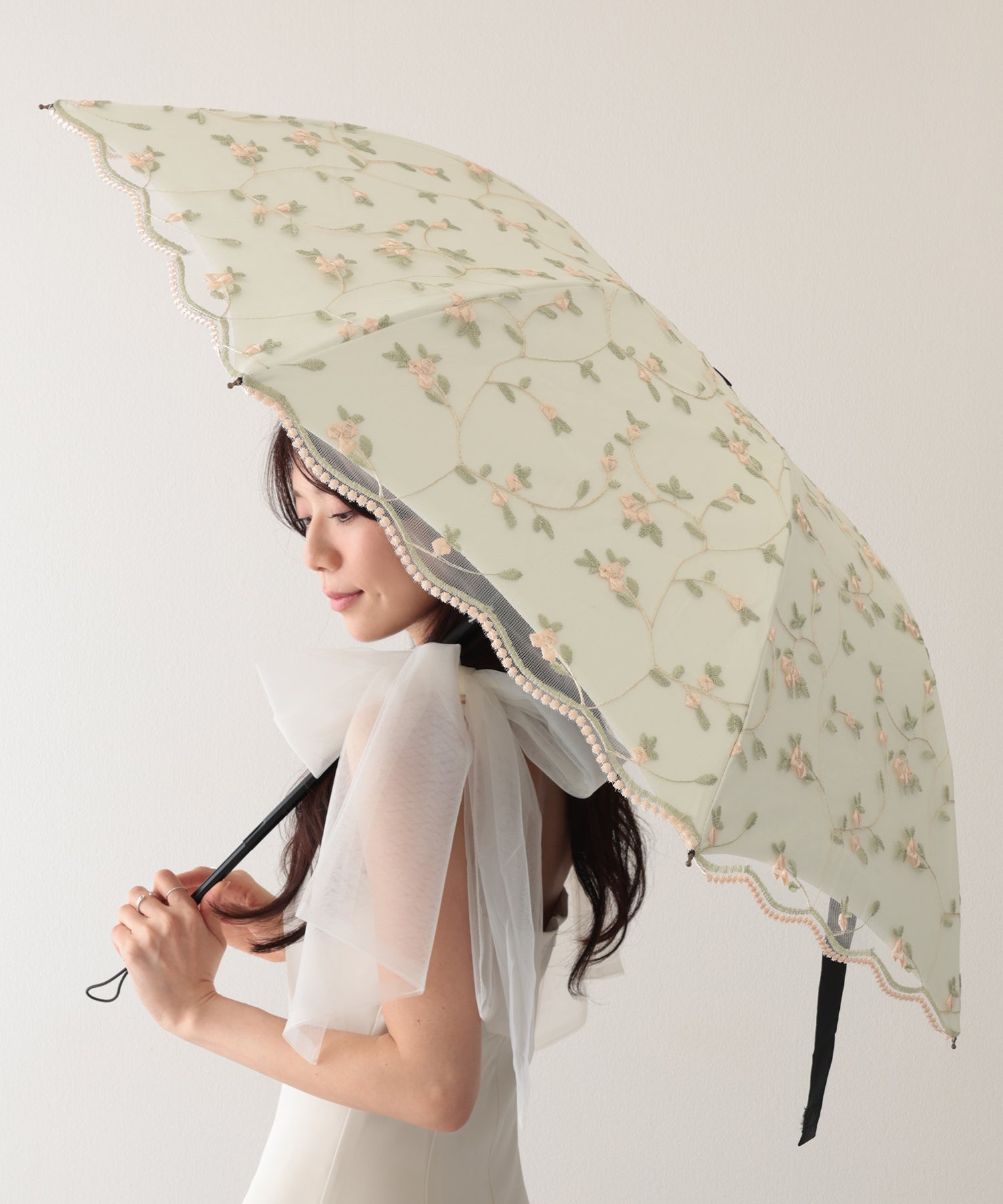 ボタニカル 刺繍 レース レイヤード 折りたたみ傘
