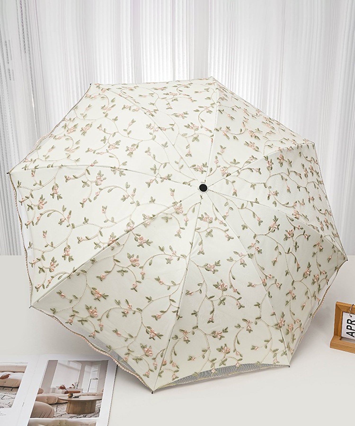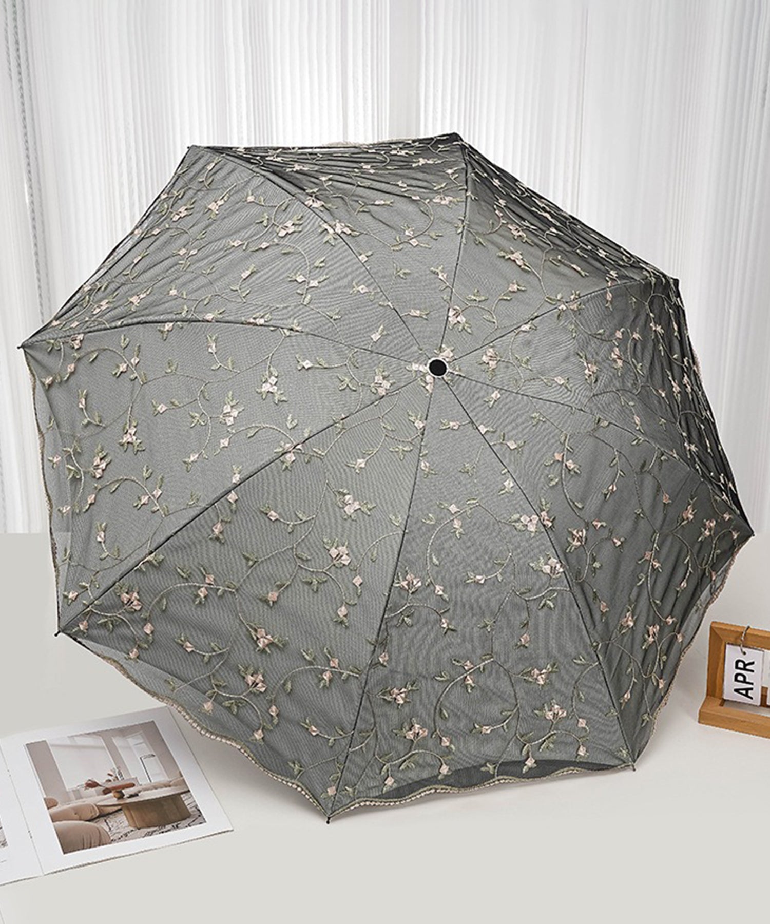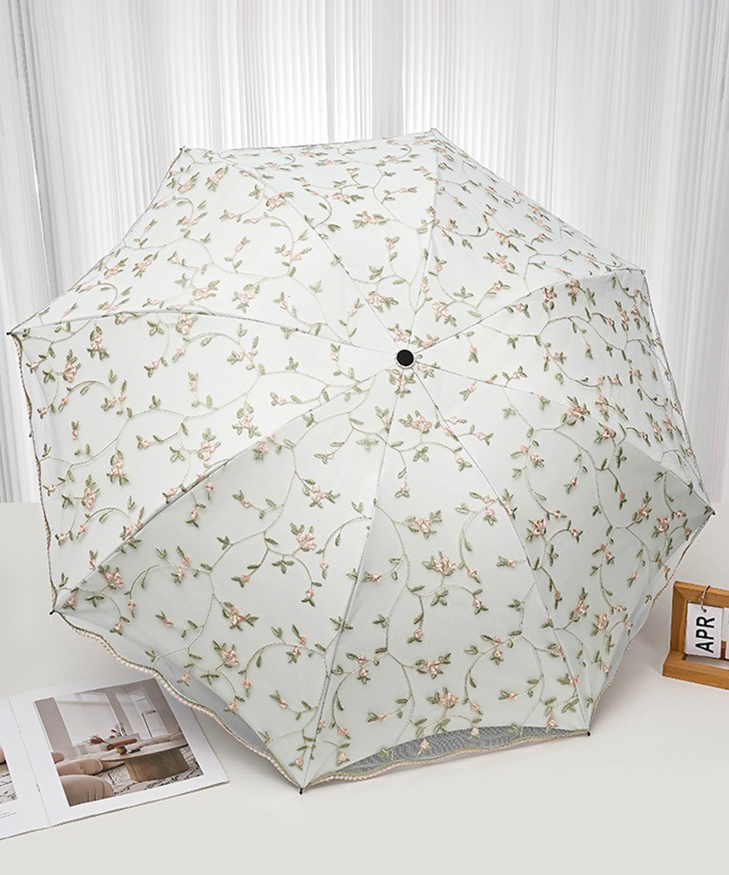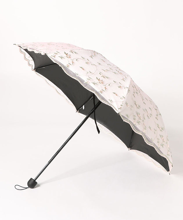 晴雨兼用 小花柄 刺繍 レース レイヤード 折りたたみ傘