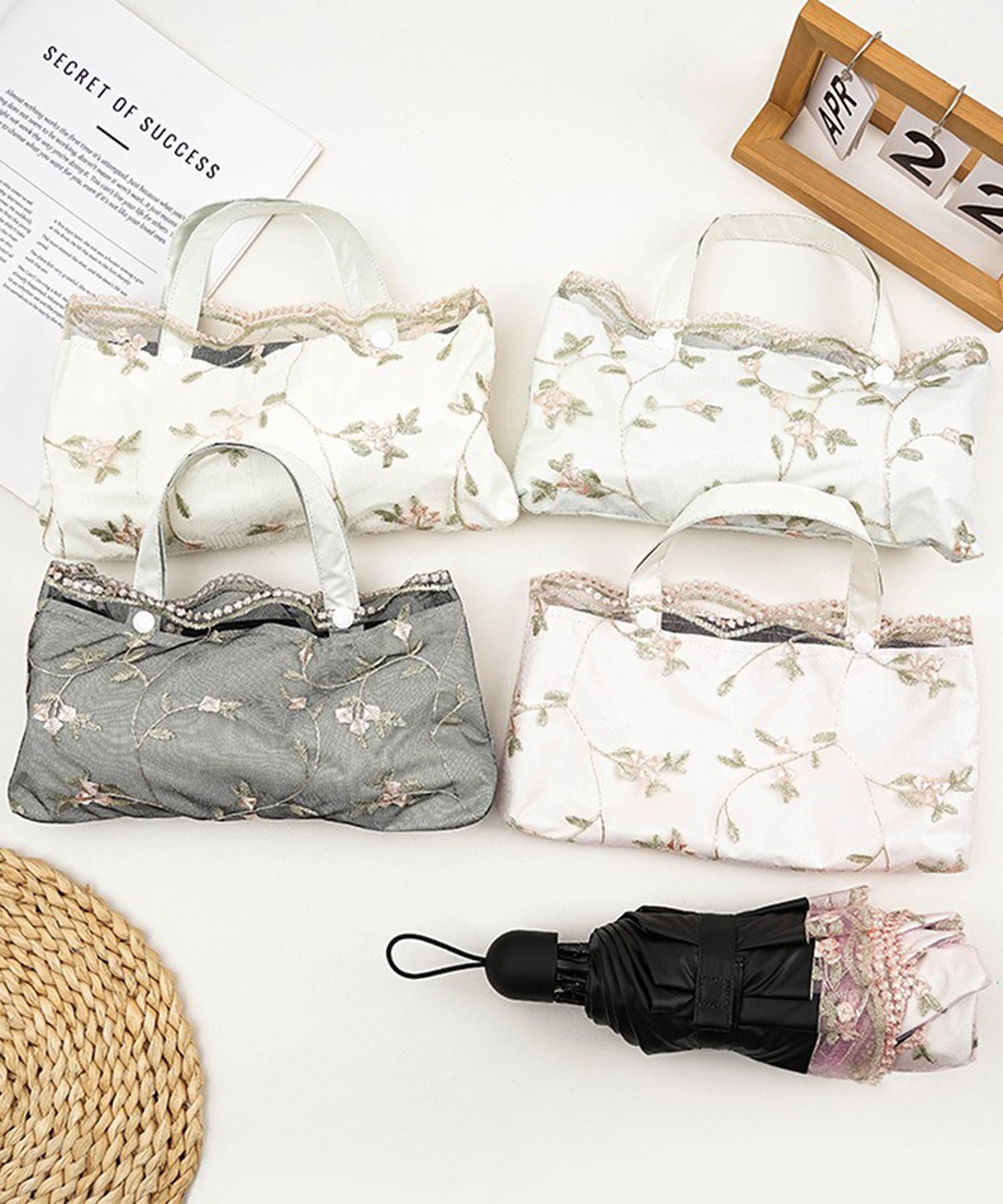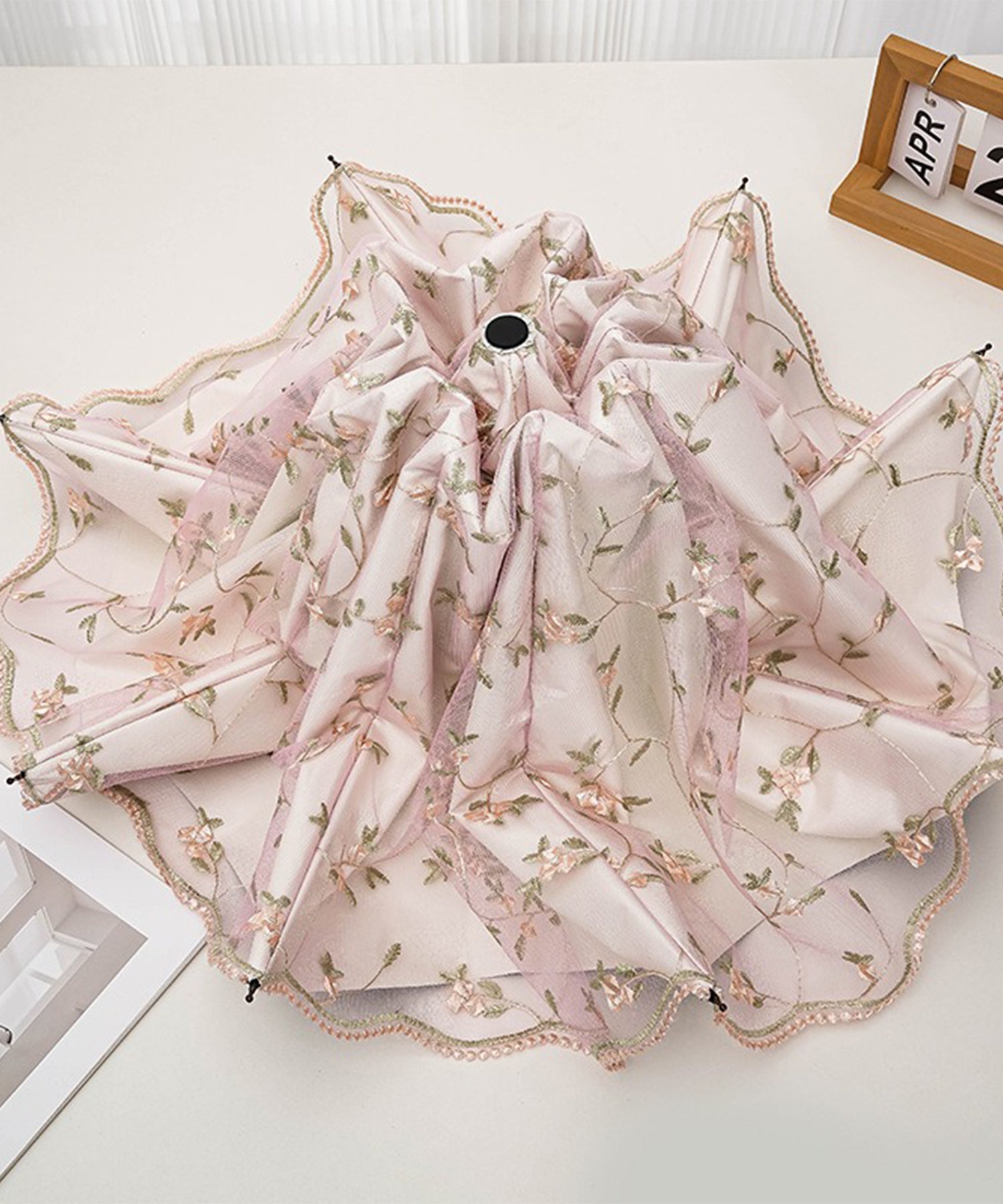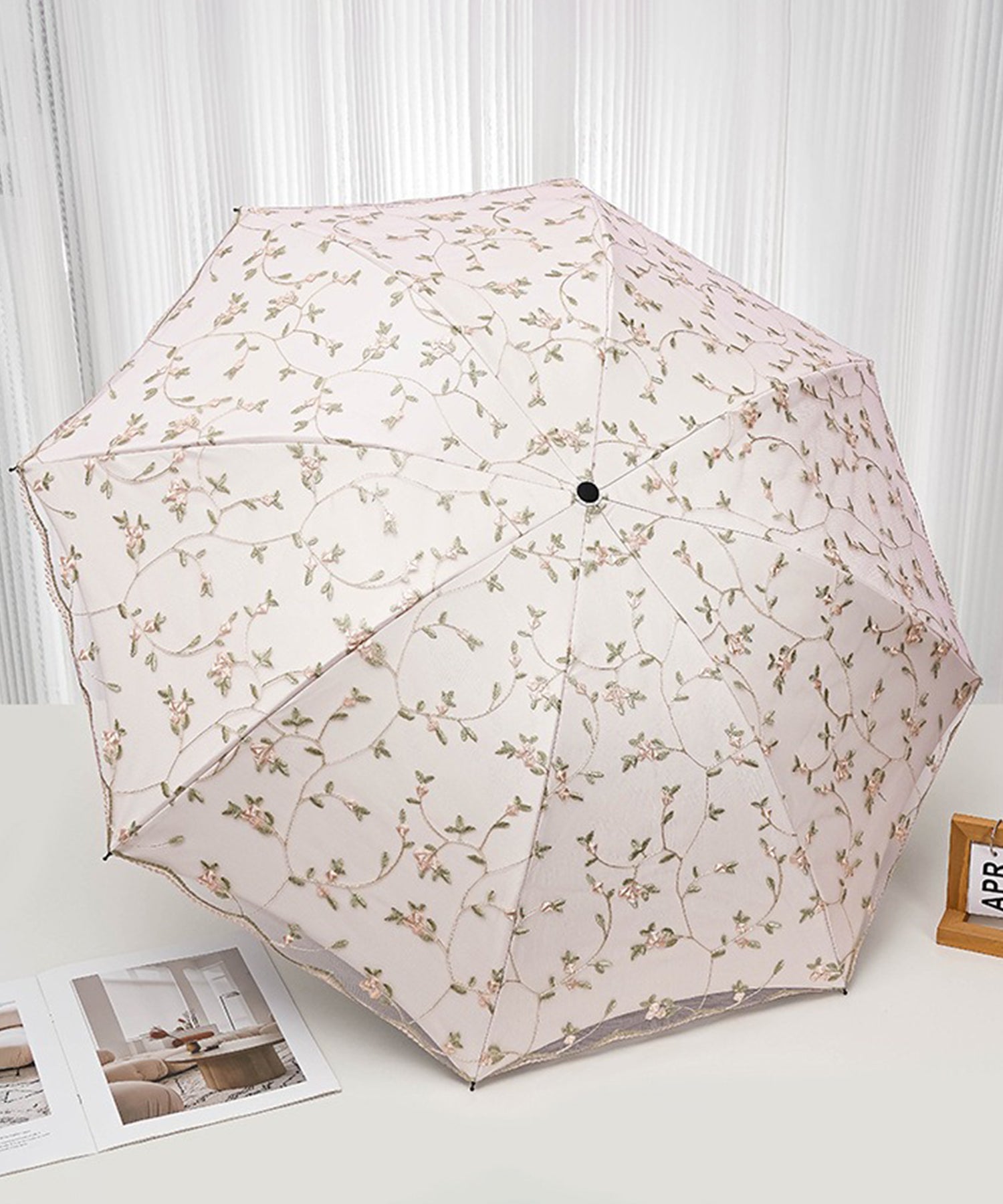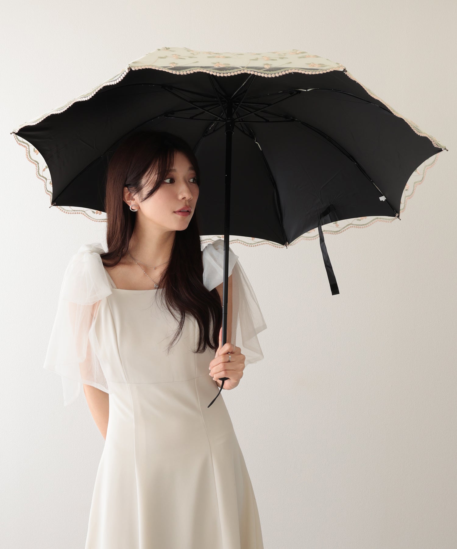 晴雨兼用 小花柄 刺繍 レース レイヤード 折りたたみ傘