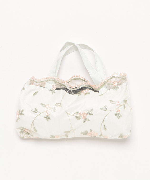 繊細なボタニカル柄刺繍をあしらったデザインで、手に持つだけで気分が上がりそうなアイテムです。