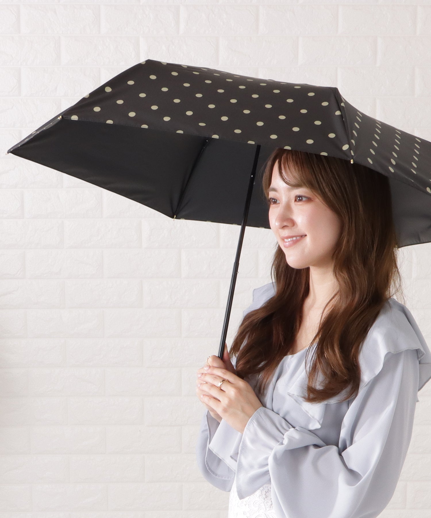 ドット柄がキュートな折りたたみ傘。