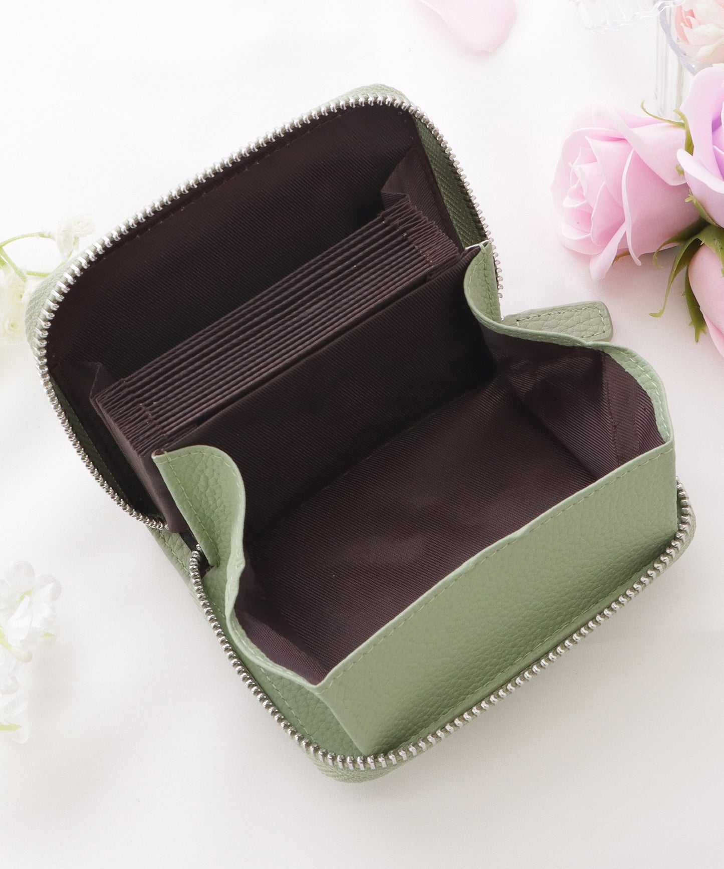 レザー調の素材でおつくりした、上品な佇まいの財布