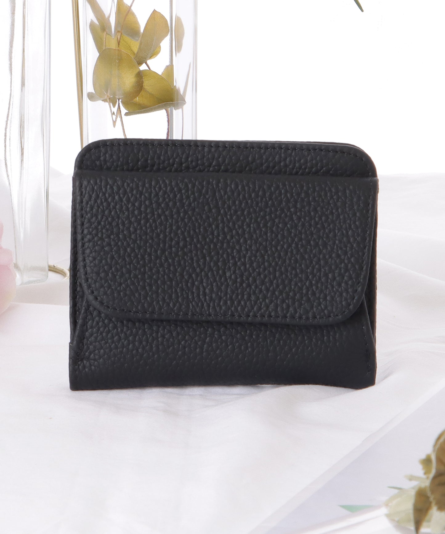 レザー生地の上品な質感が際立つ、二つ折り財布。
