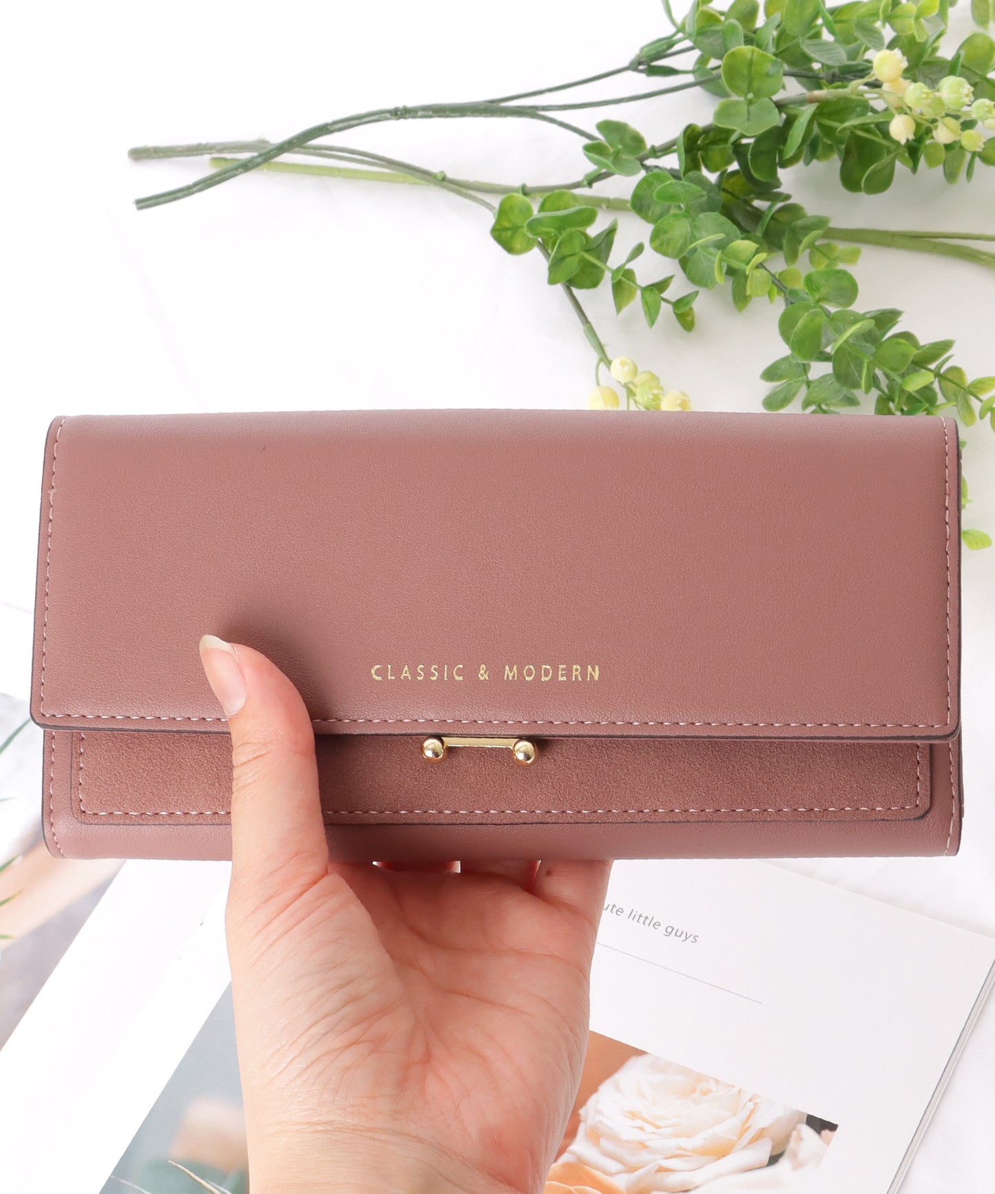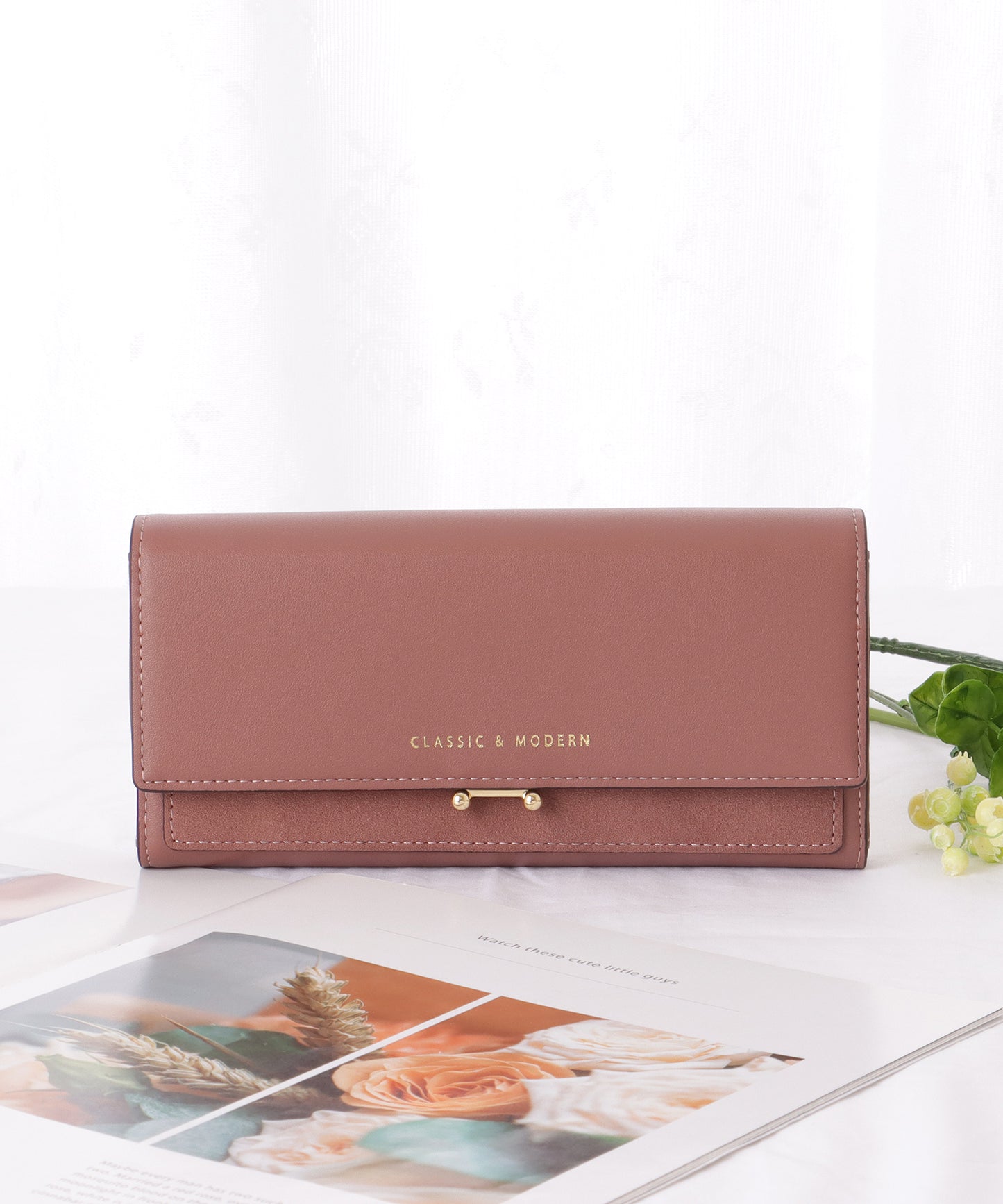 マットな質感のレザー調素材で、クラシカルな印象に仕上げた長財布。