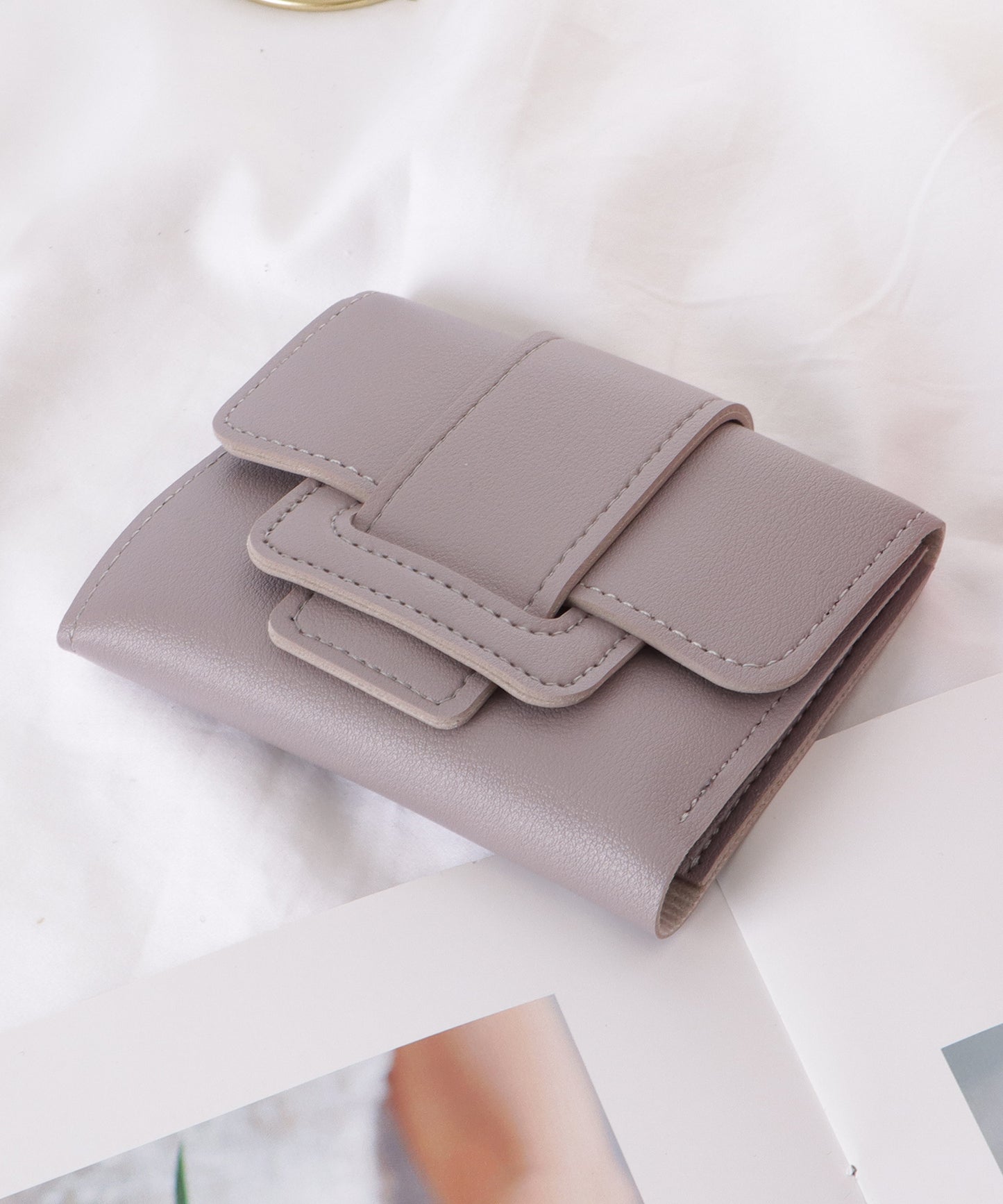 フロント ベルト レザー調 三つ折り ウォレット
