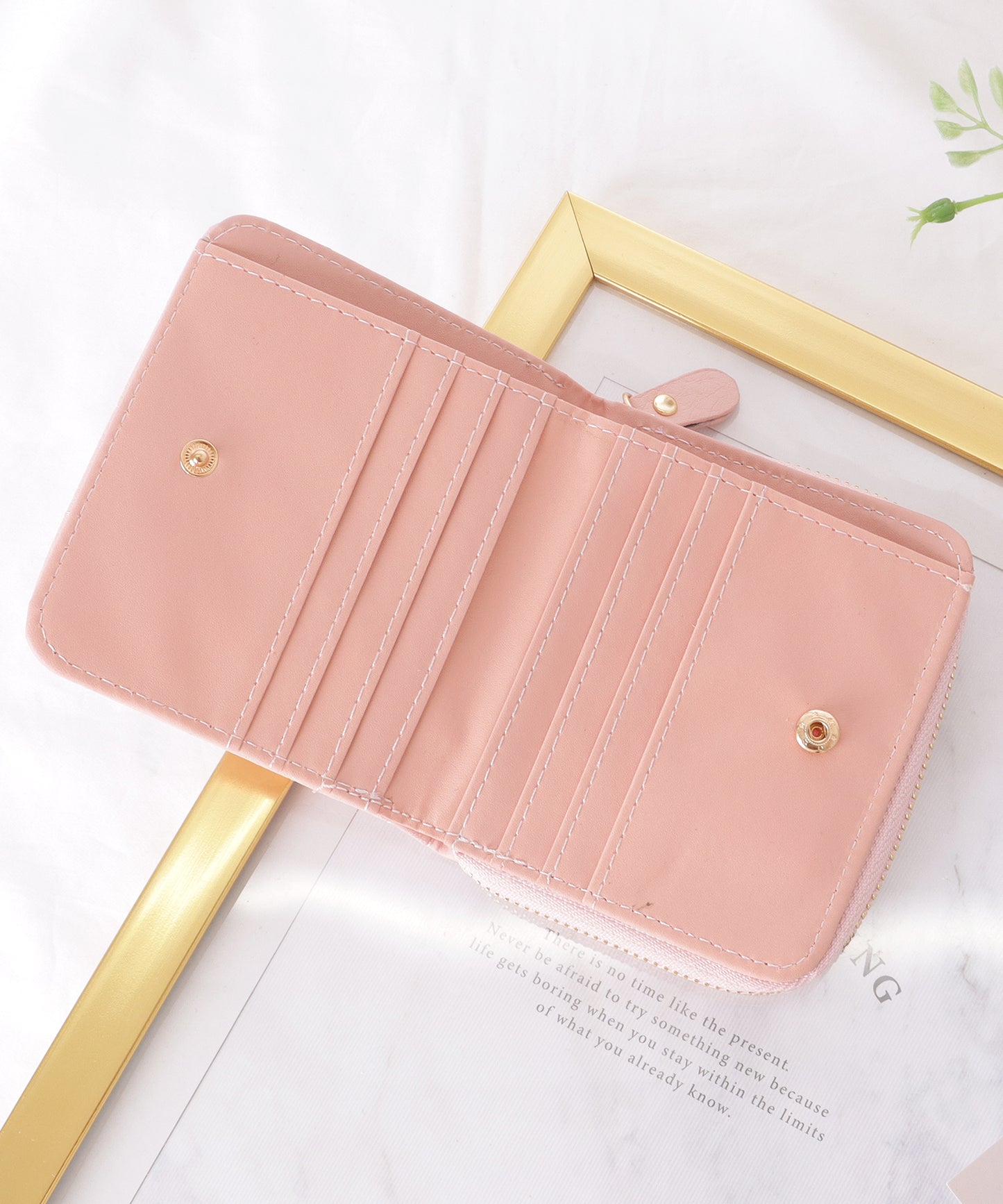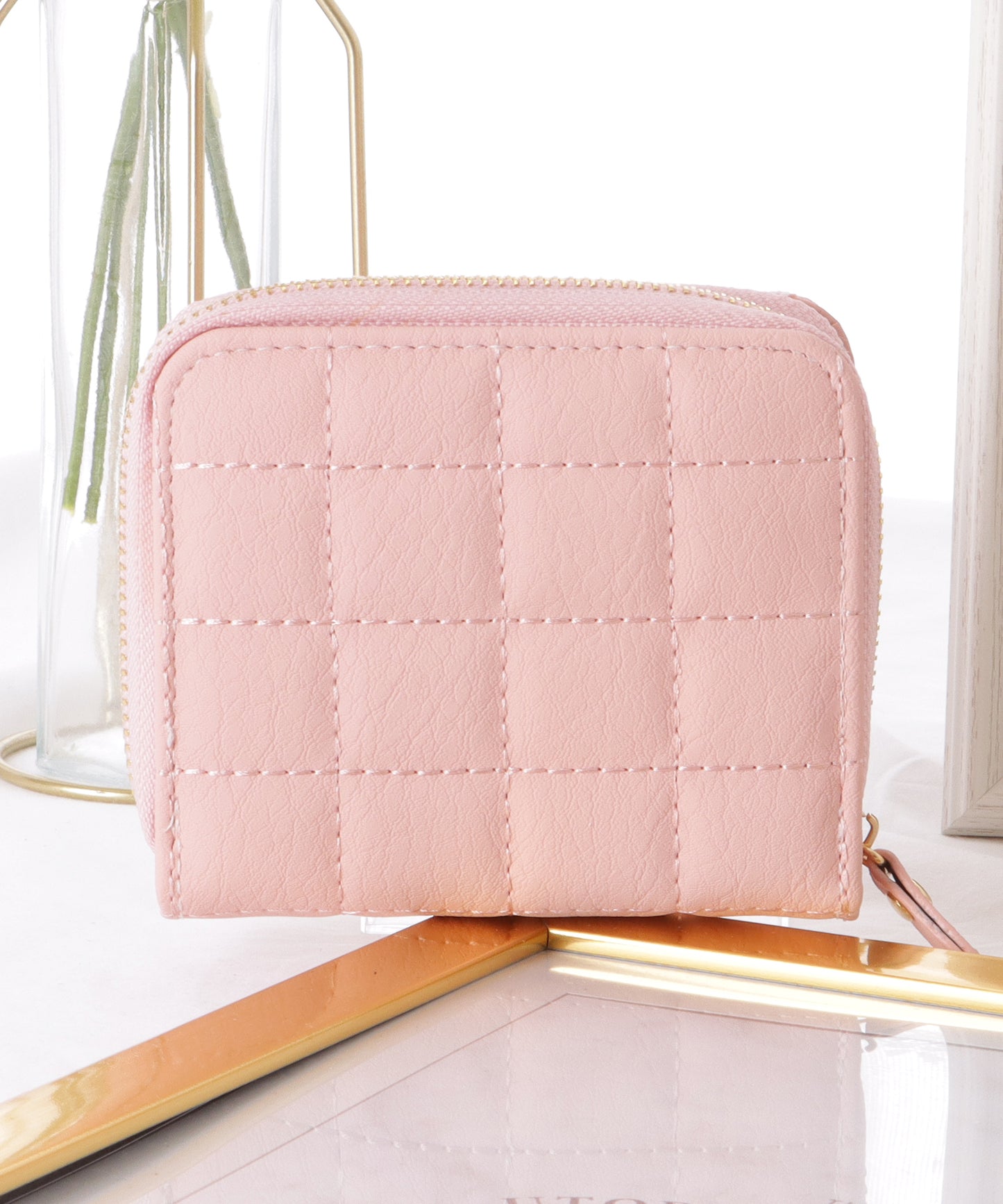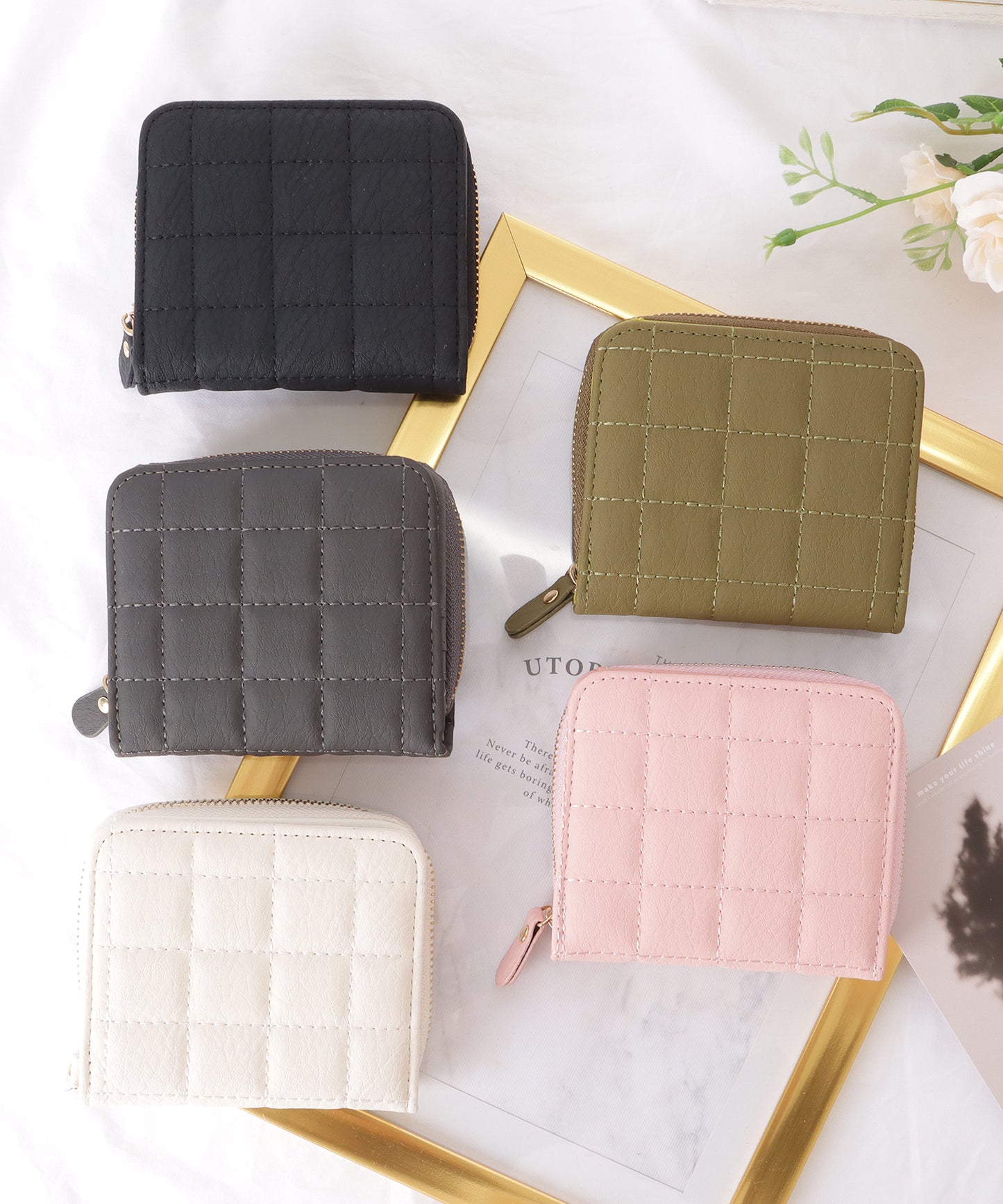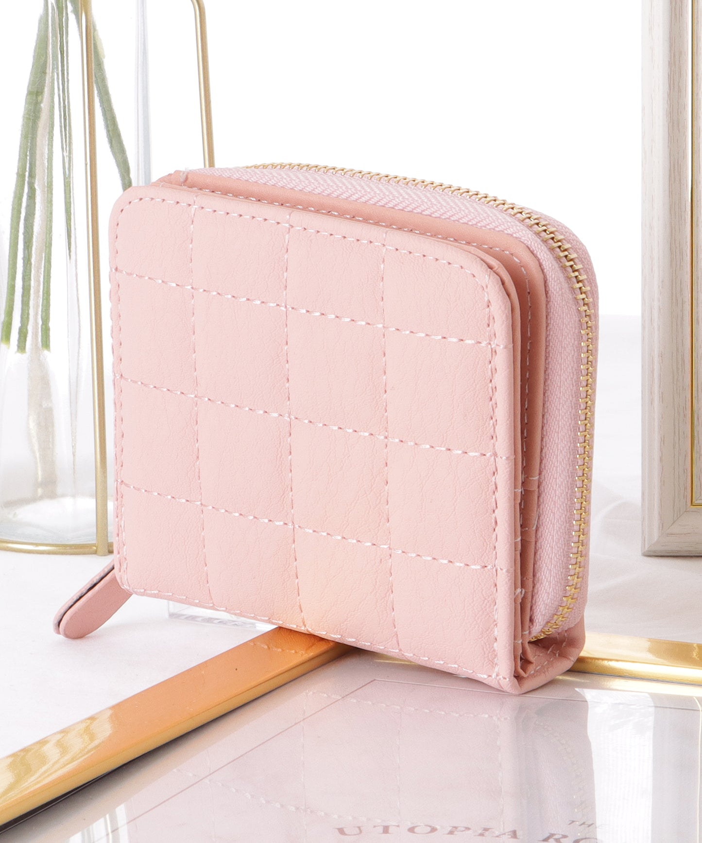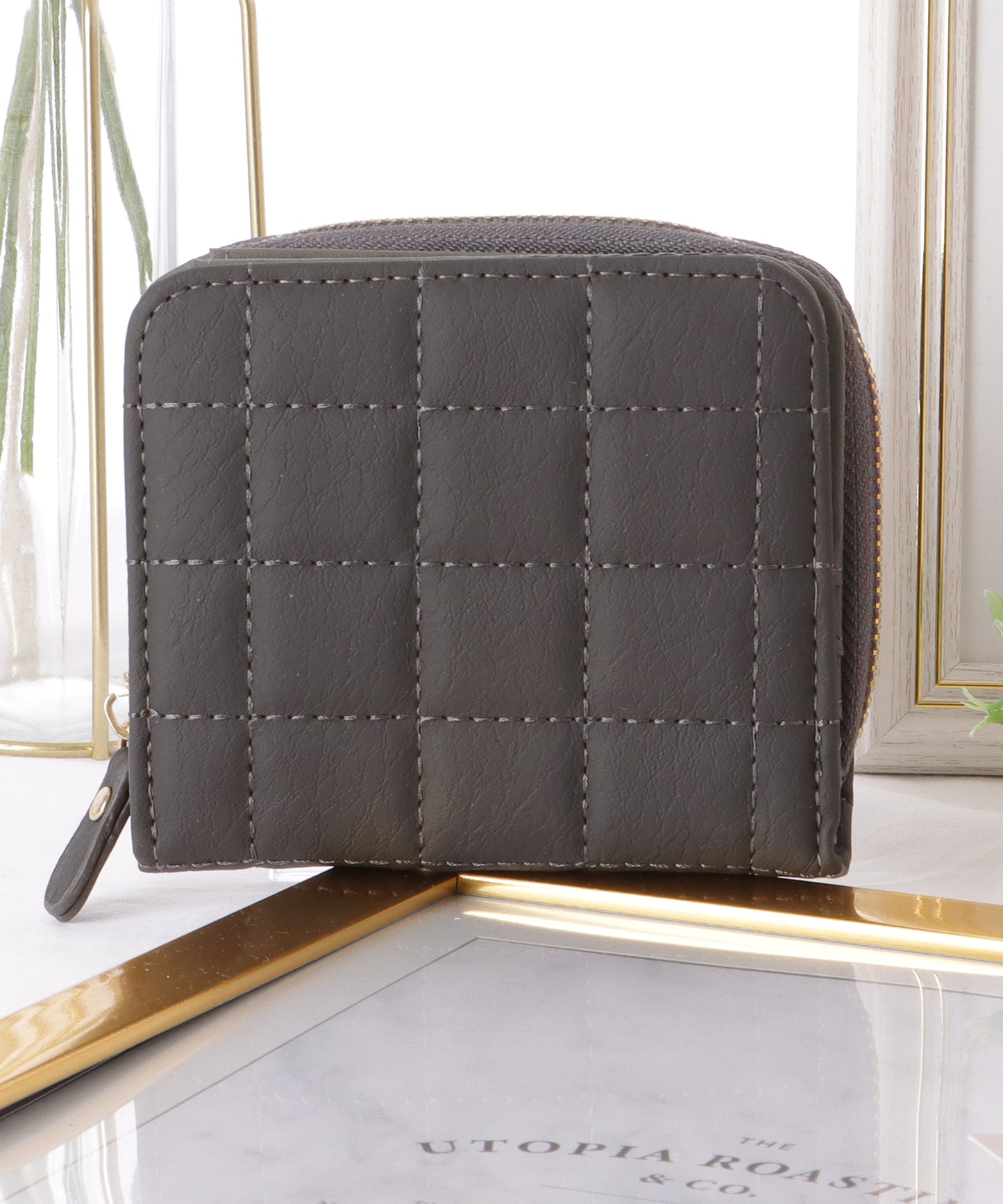 キルティング 二つ折り スクエア ファスナー ウォレット