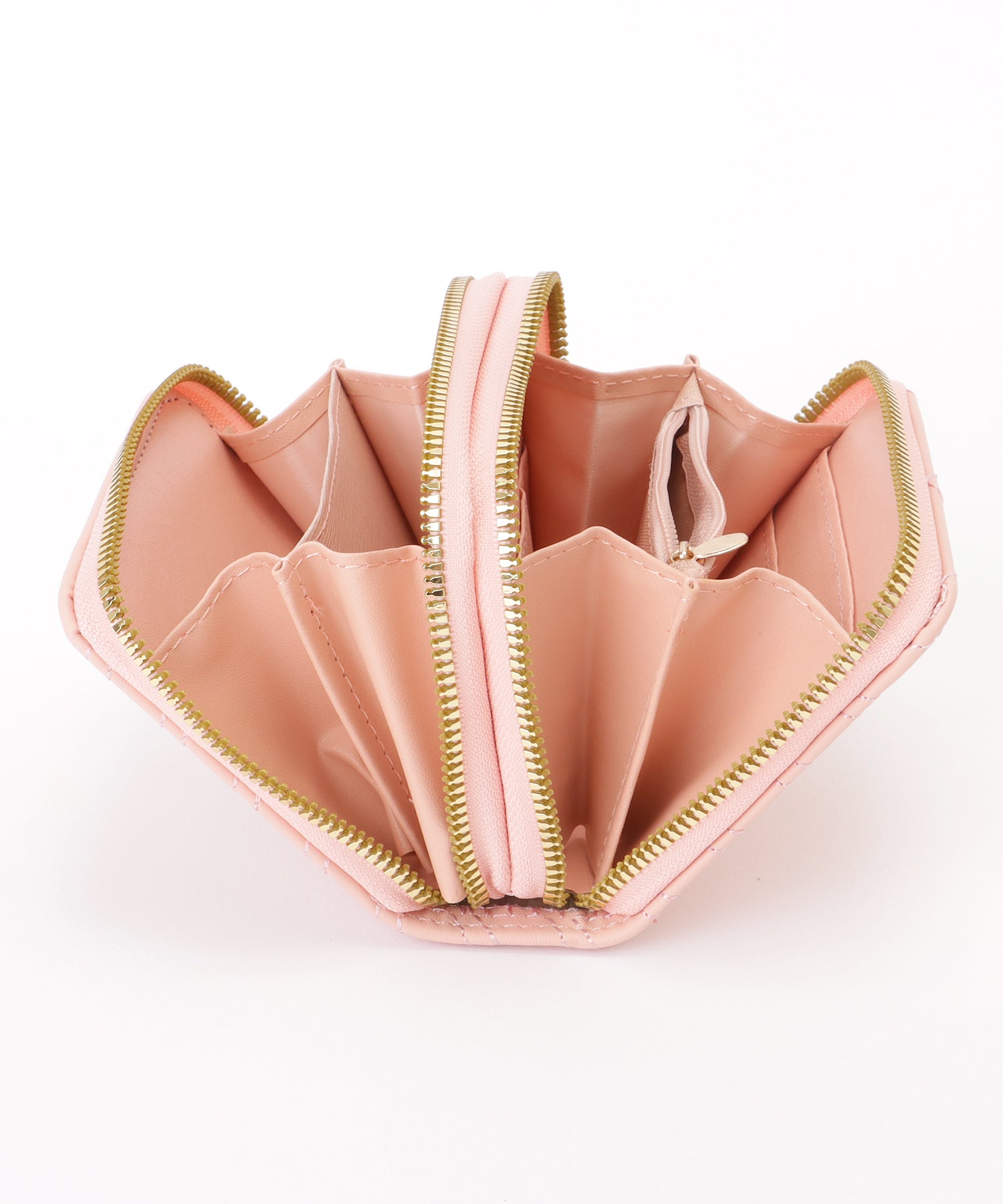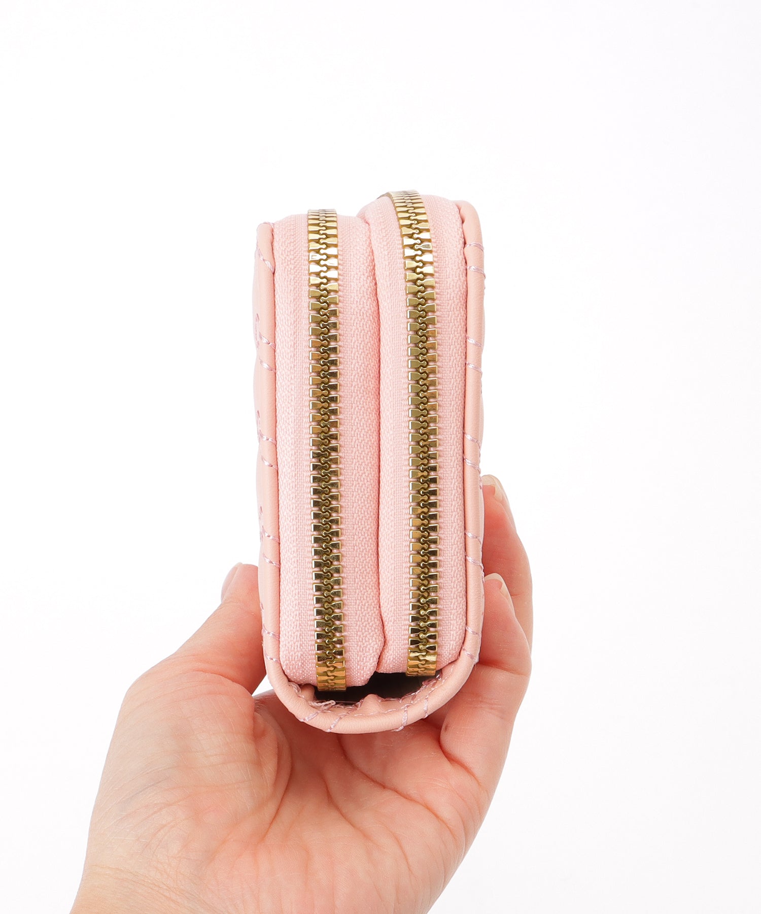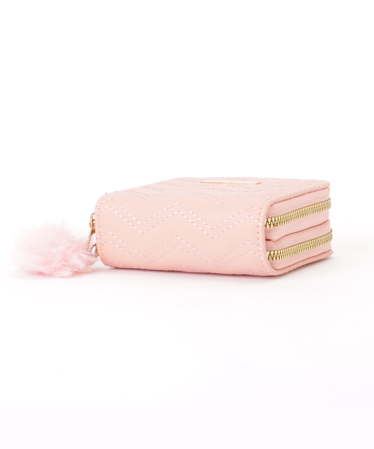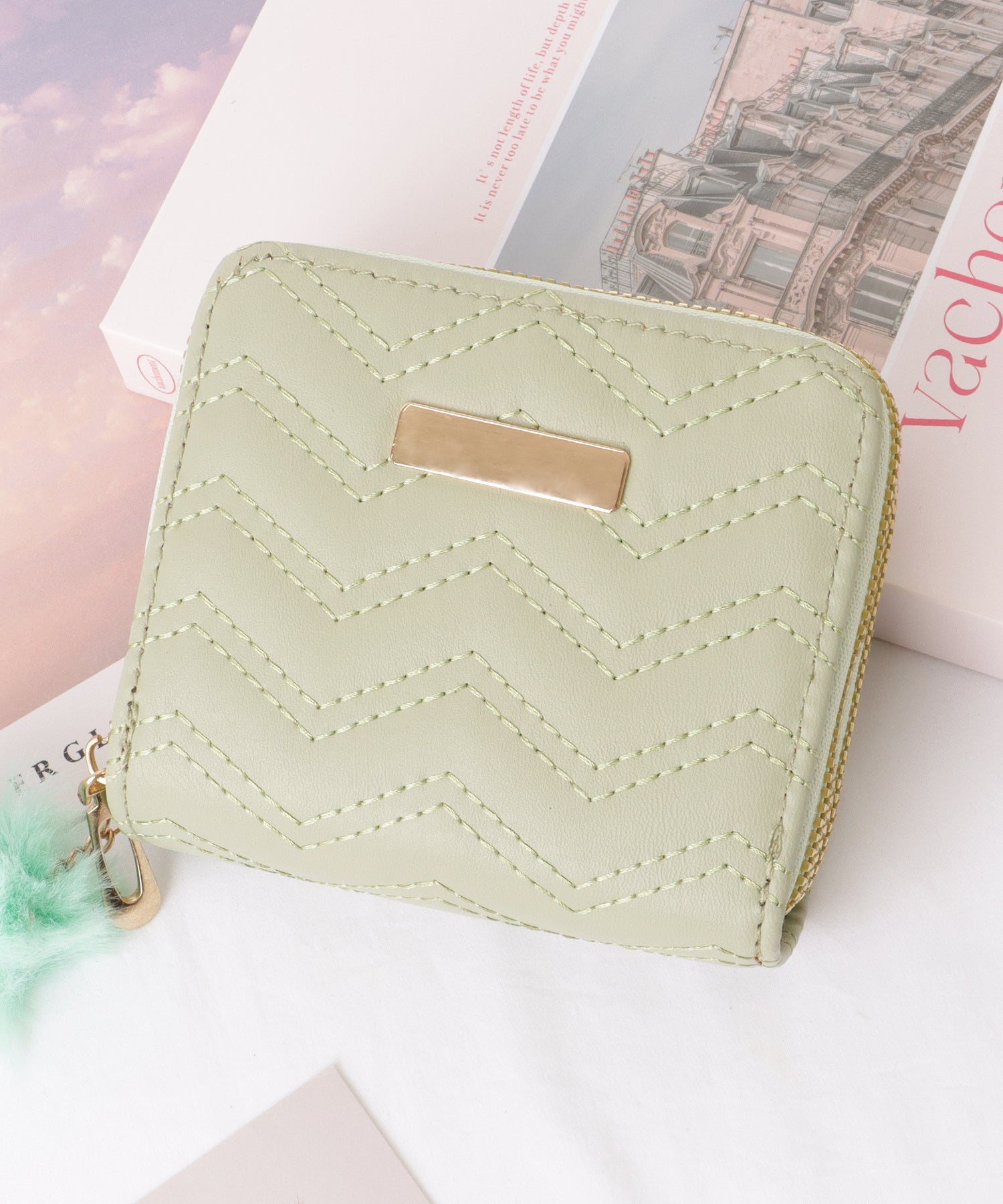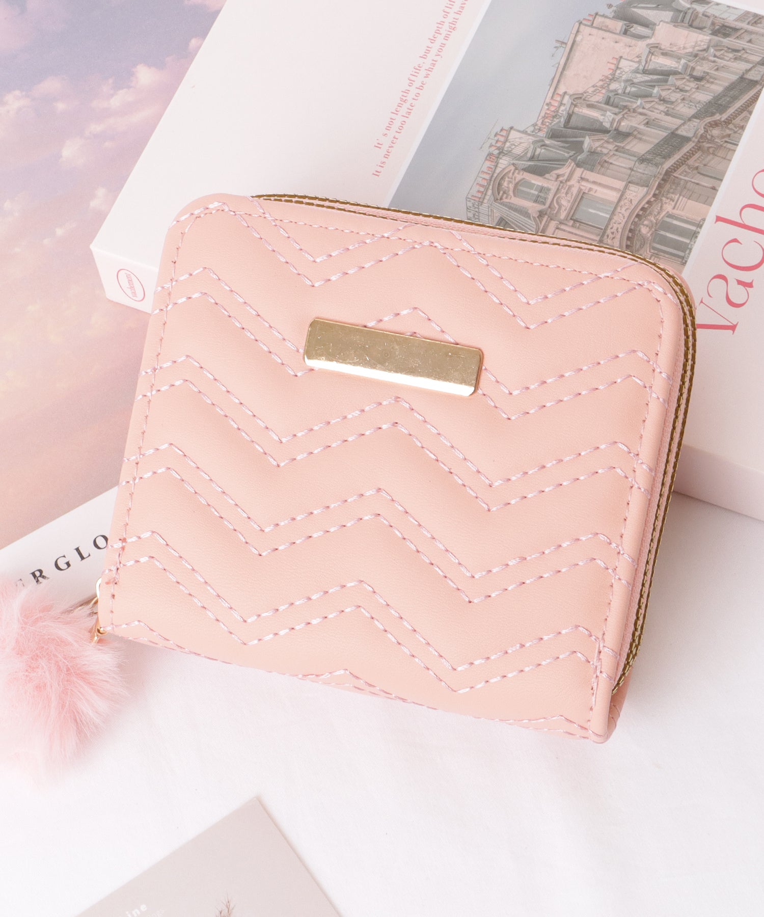 ファー チャーム付き ジグザグ ステッチ コンパクト ウォレット