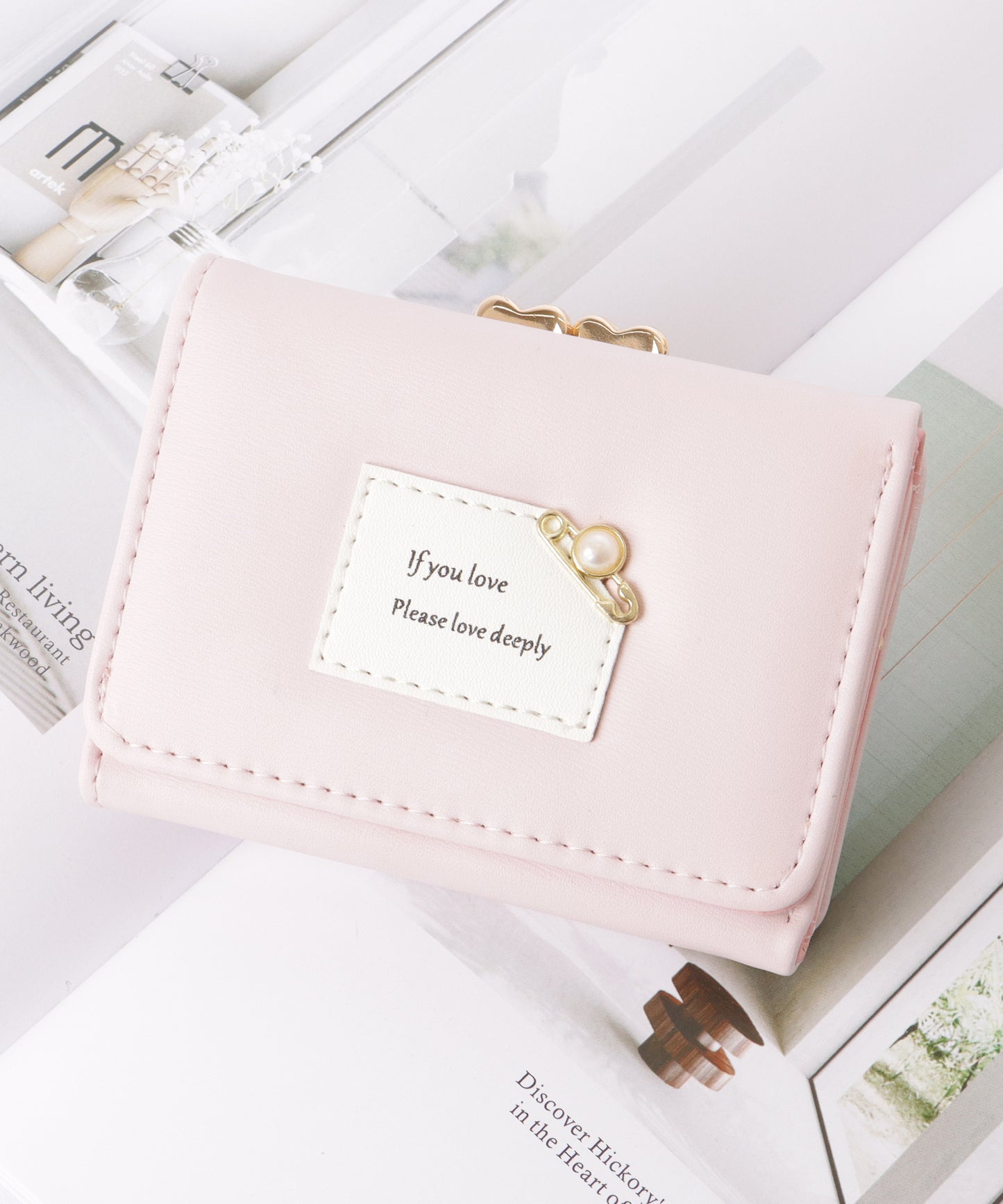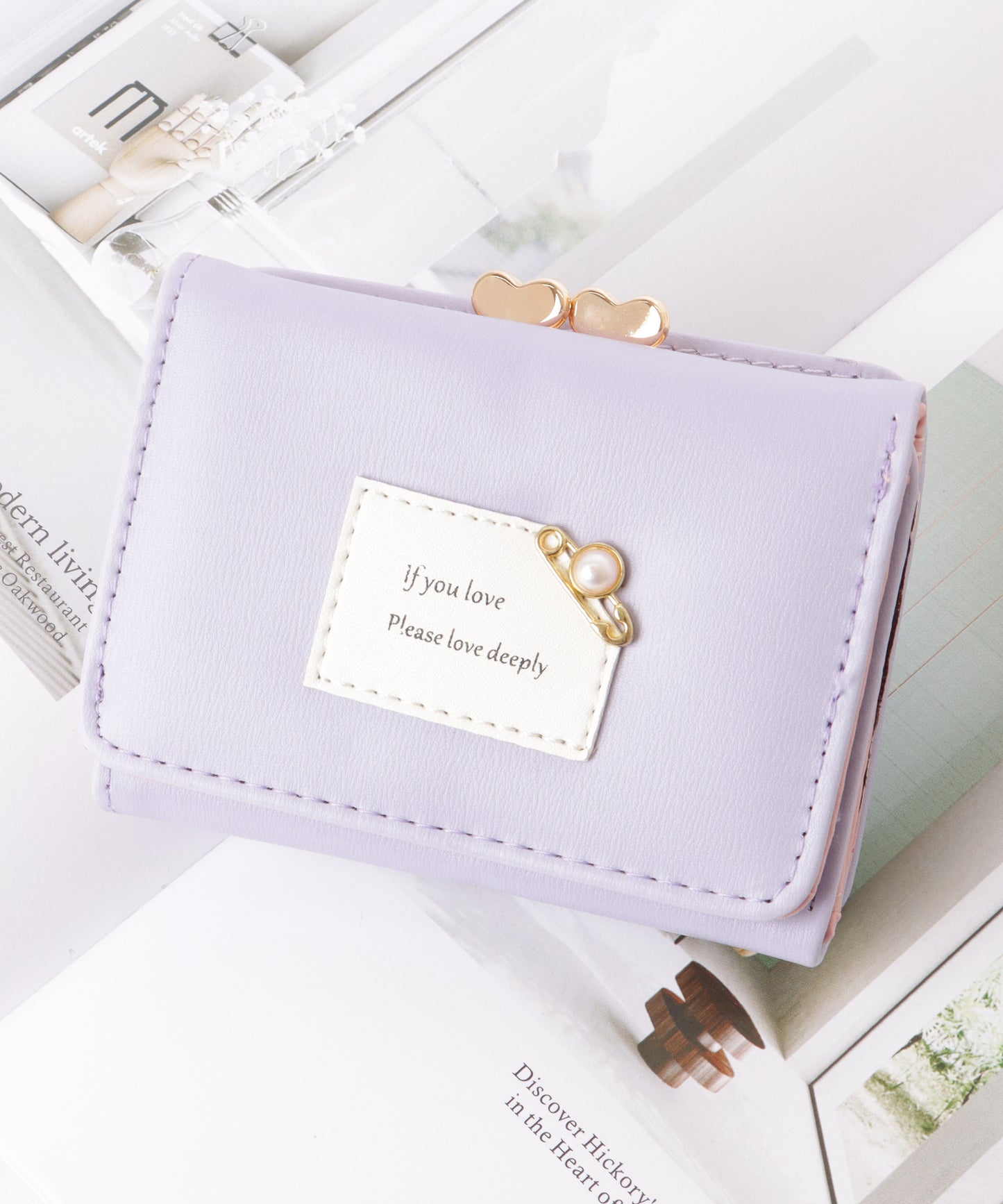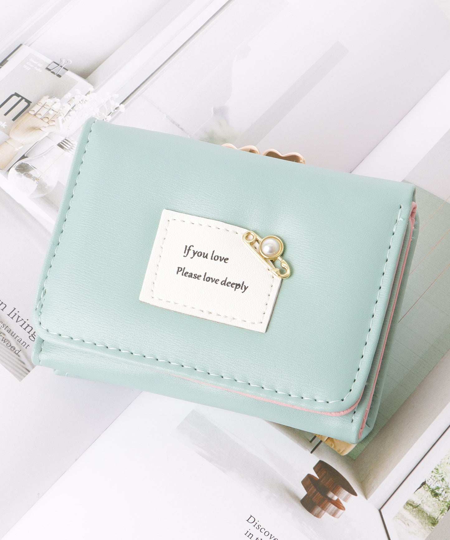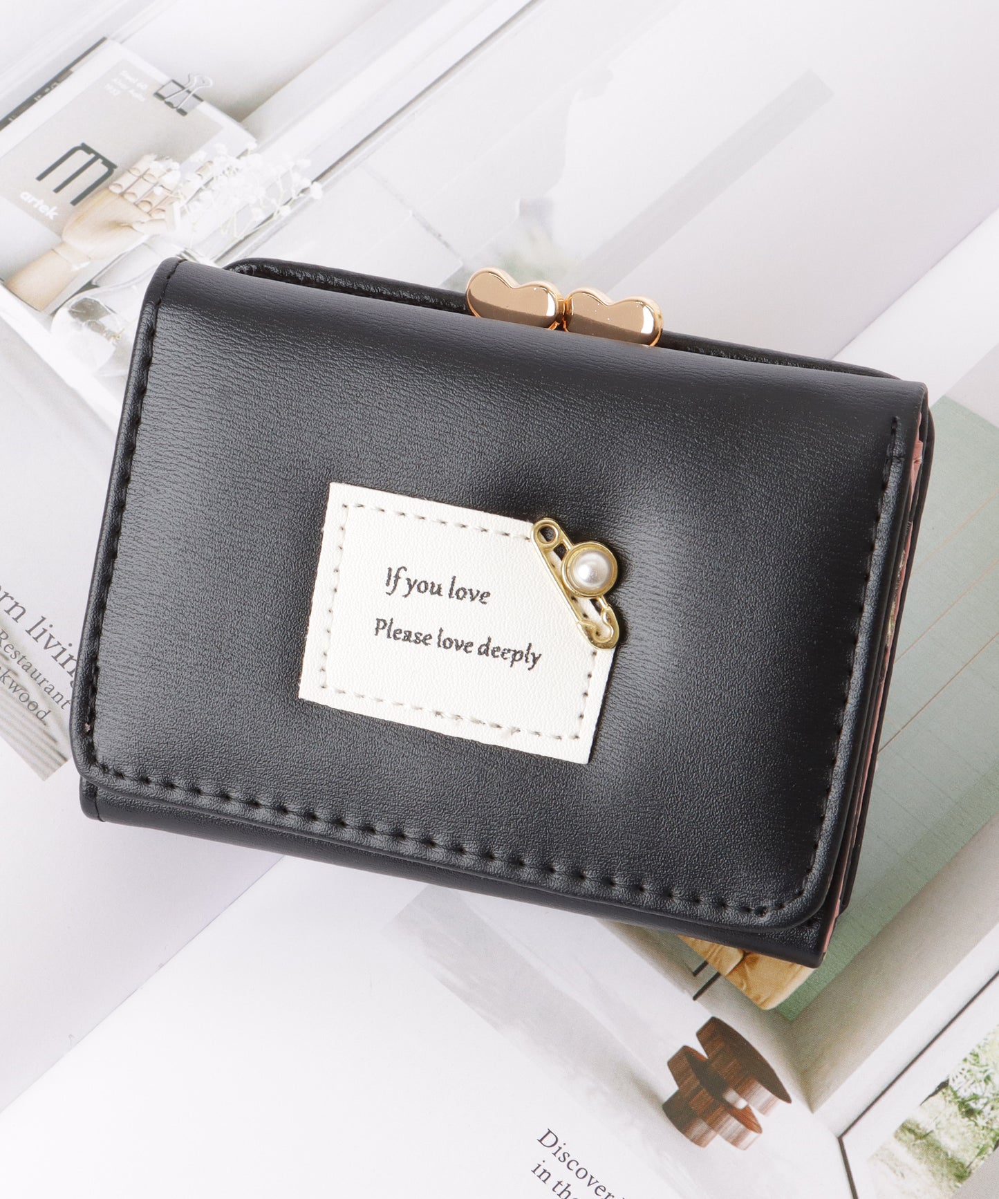 小さめバッグにも収まりの良い、コンパクトな三つ折り財布。