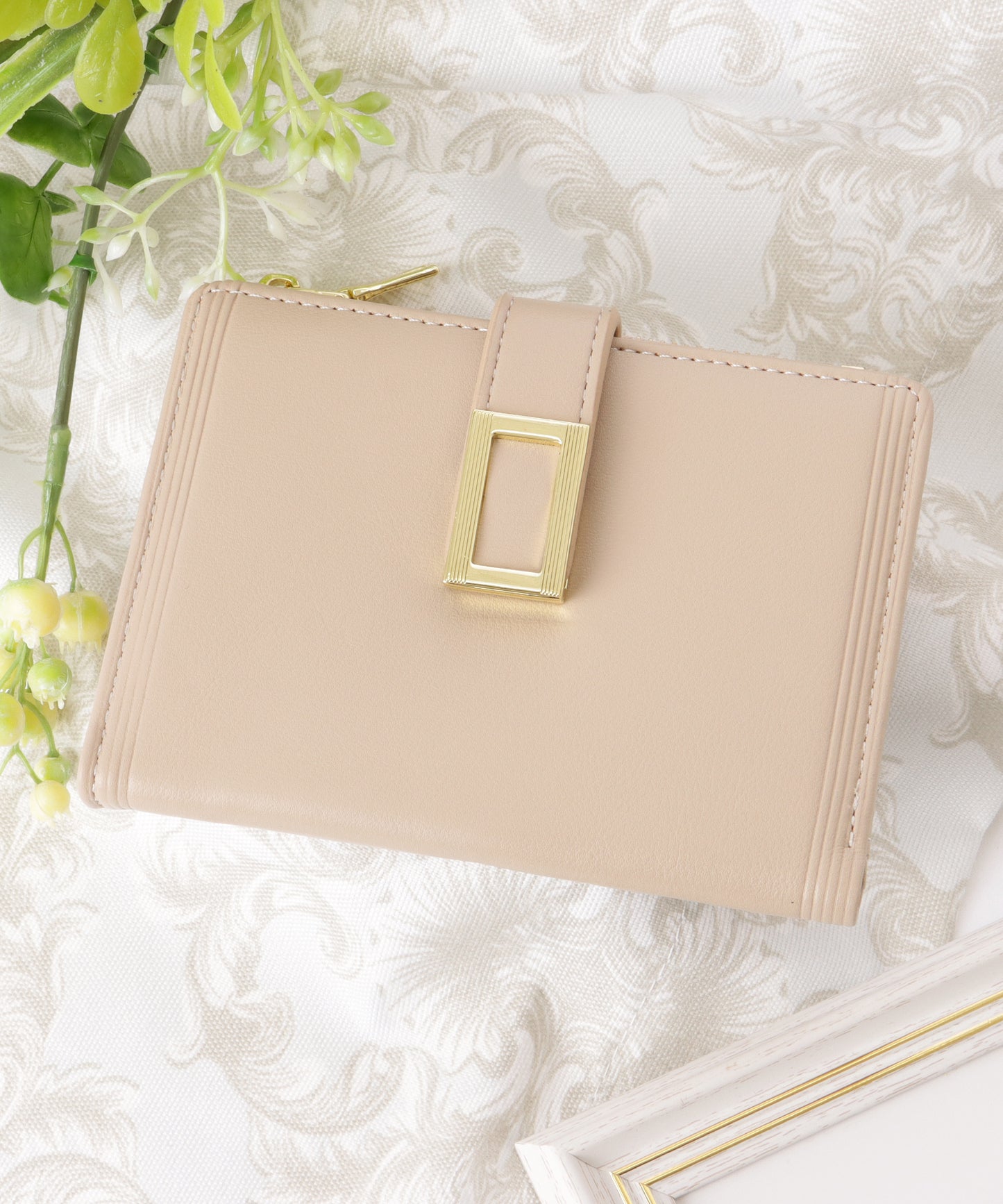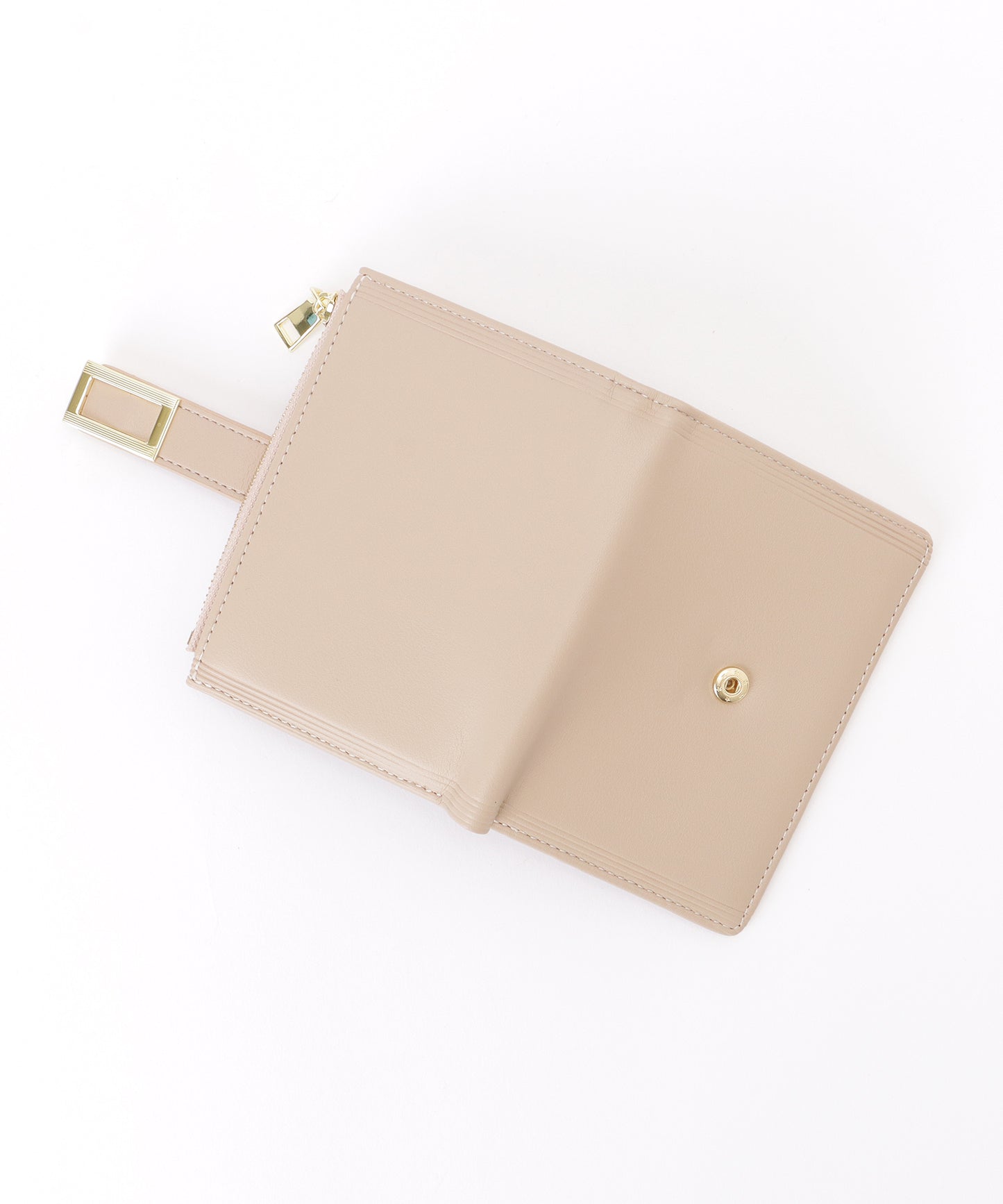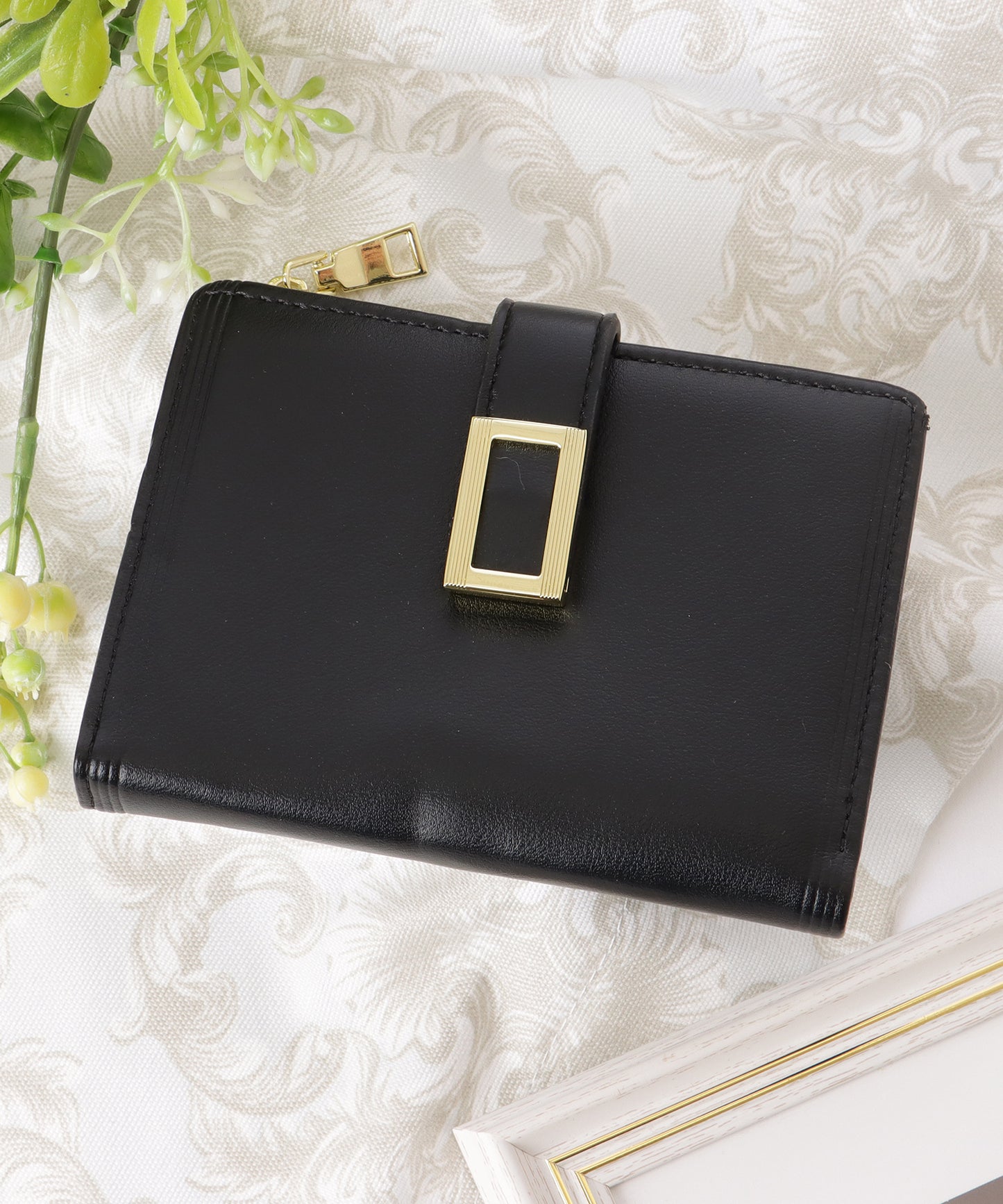 レザー調 ベルト付き 二つ折り スクエア ウォレット