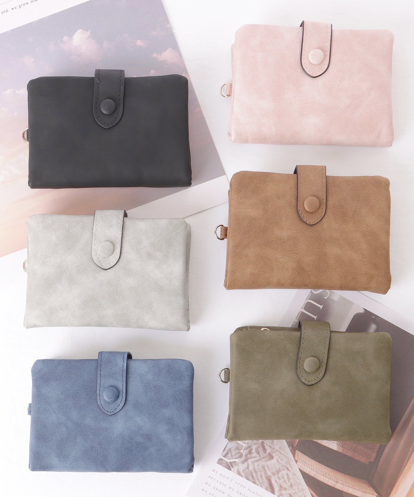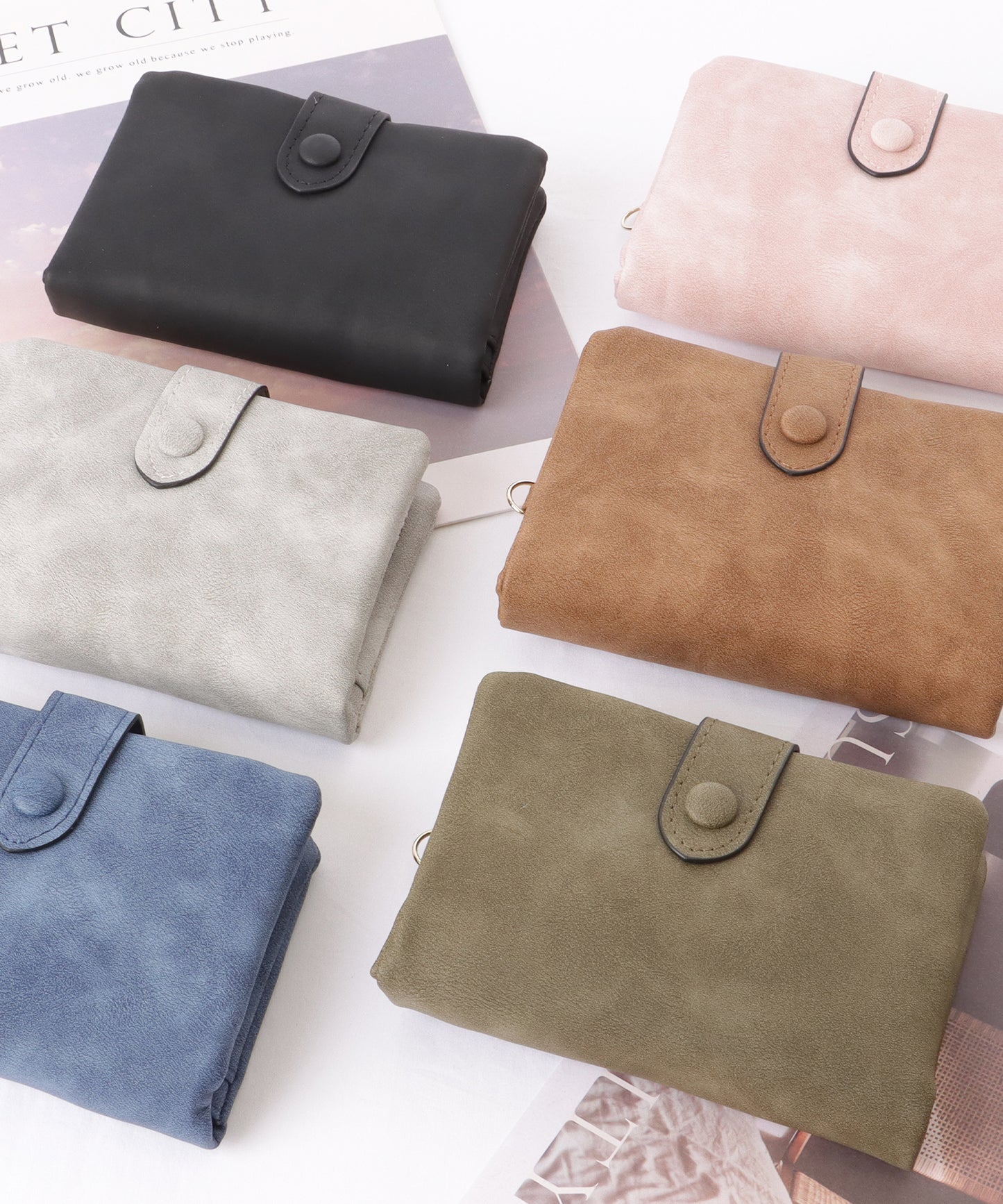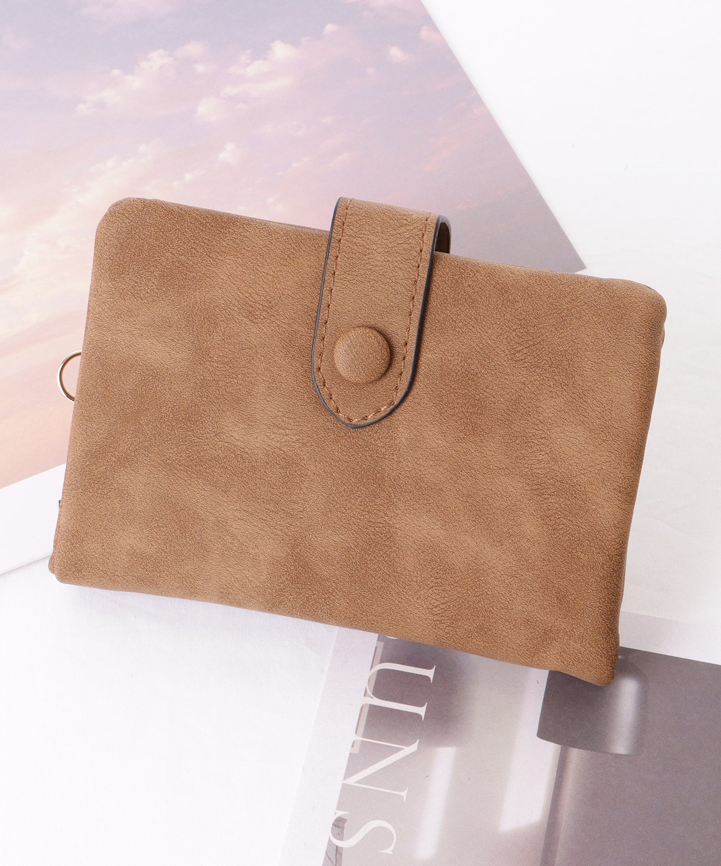 スエード調 ベルト付き 二つ折り ウォレット バッグ
